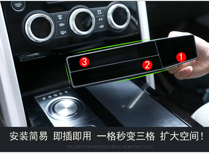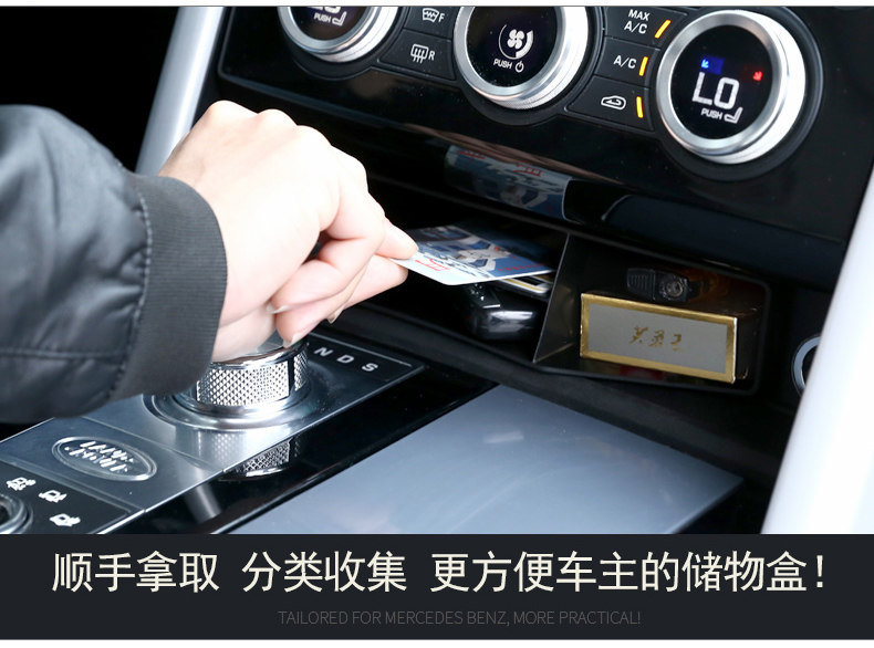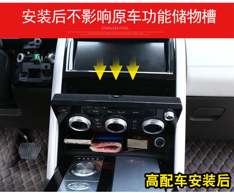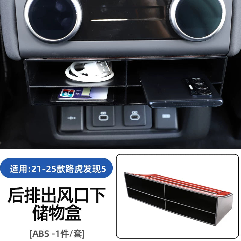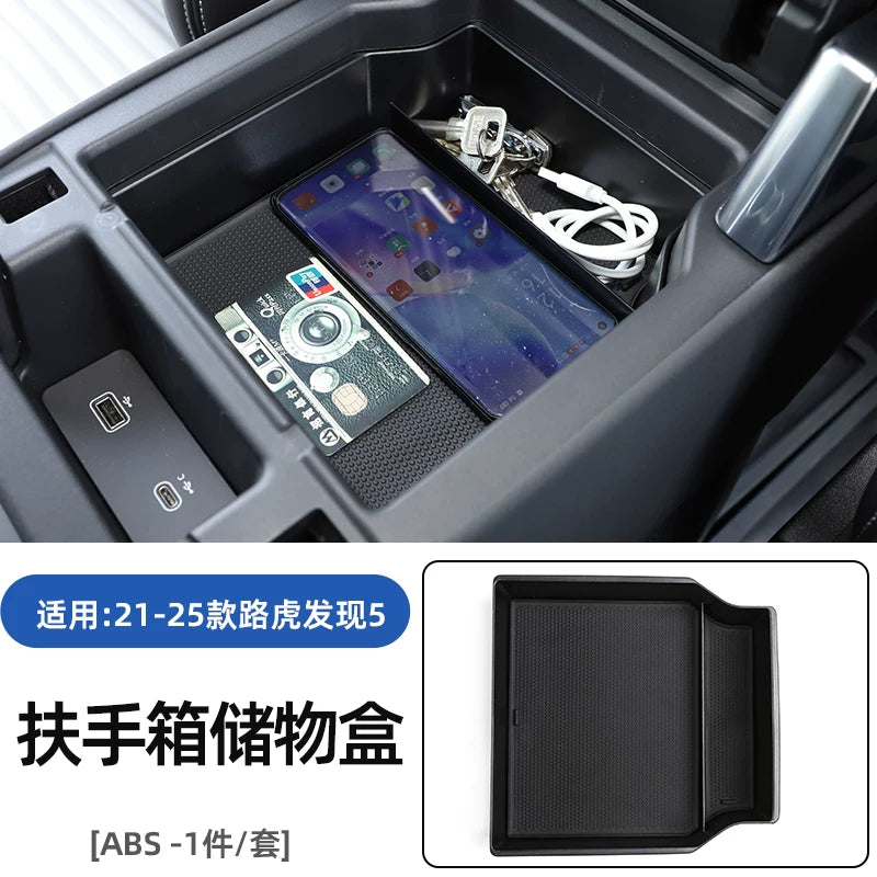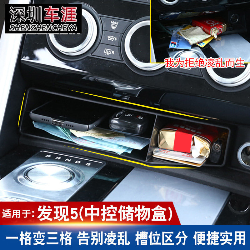 2017-2025-ci illərin Land Rover Discovery 5 modelləri üçün uyğun olan bu xüsusiyyət mərkəzi konsolda laylı saxlama qutusu və gizli saxlama üçün qoltuqaltı bölməsini əhatə edir.