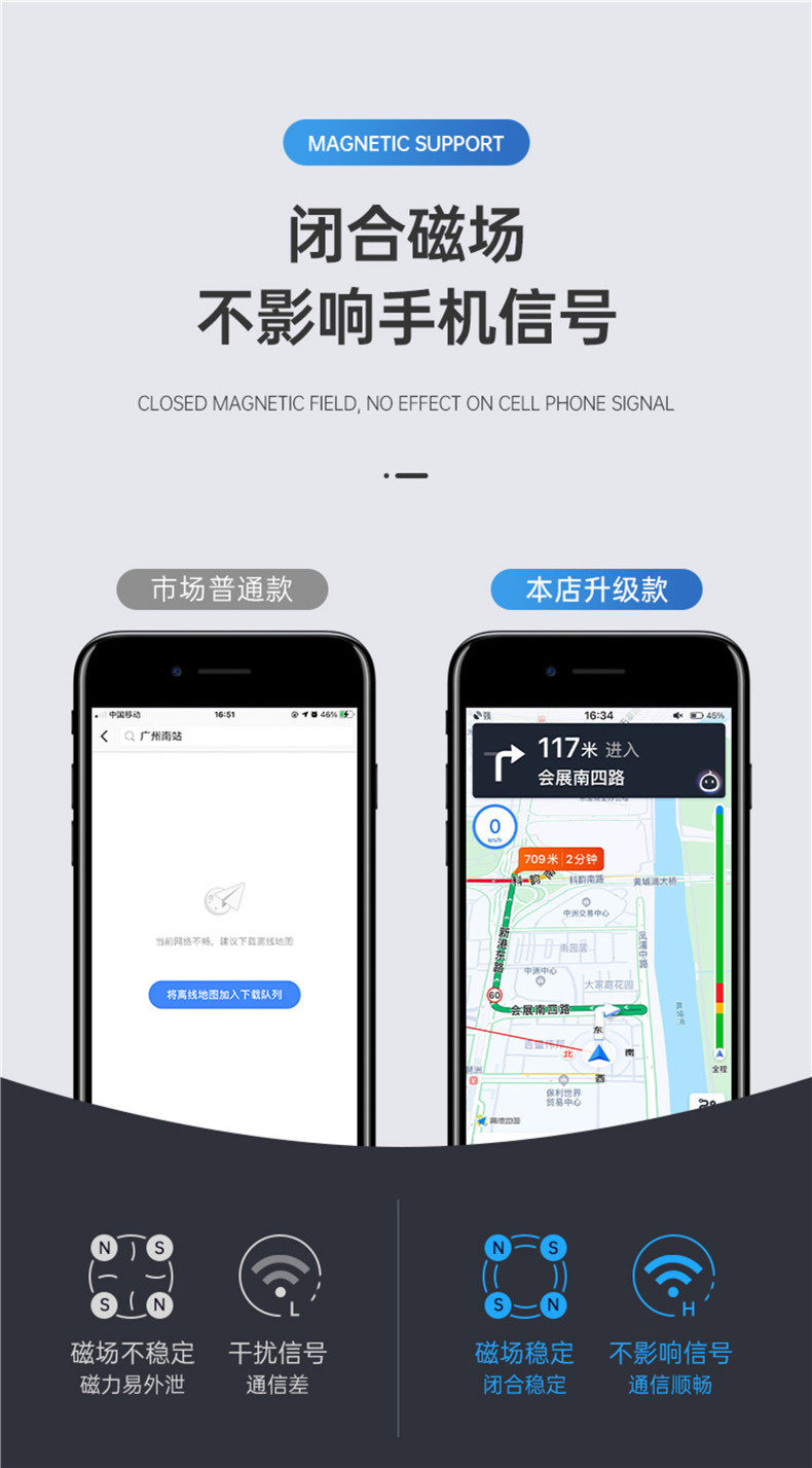 [ Strong Magnet phone mount ] 6pieces of N45 super strong magnets hold your cell phone stay steadily always even through the bump road. The car phone mount magnet makes more convenient for your driving, allow you easy to opera, listening music, navigating while driving.