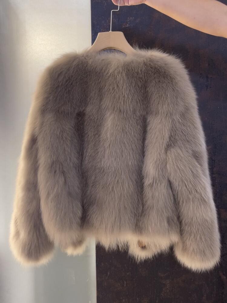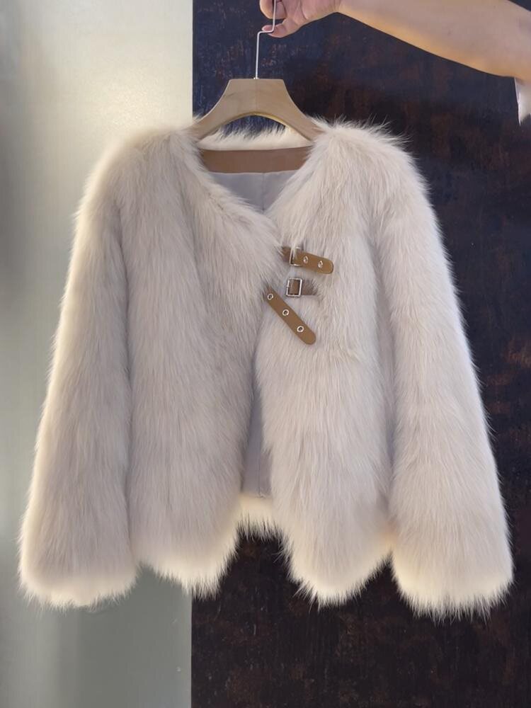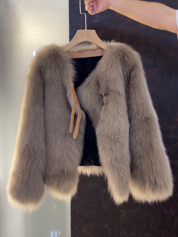 2025 Payız/Qış Yeni Stil Süni Tülkü Xəz Palto, Qısa, Yorğanlı, Parlaq, Koreya Üslubunda, Dəbli və Çoxfunksiyalı, Chanel Üslubunda Düyməli