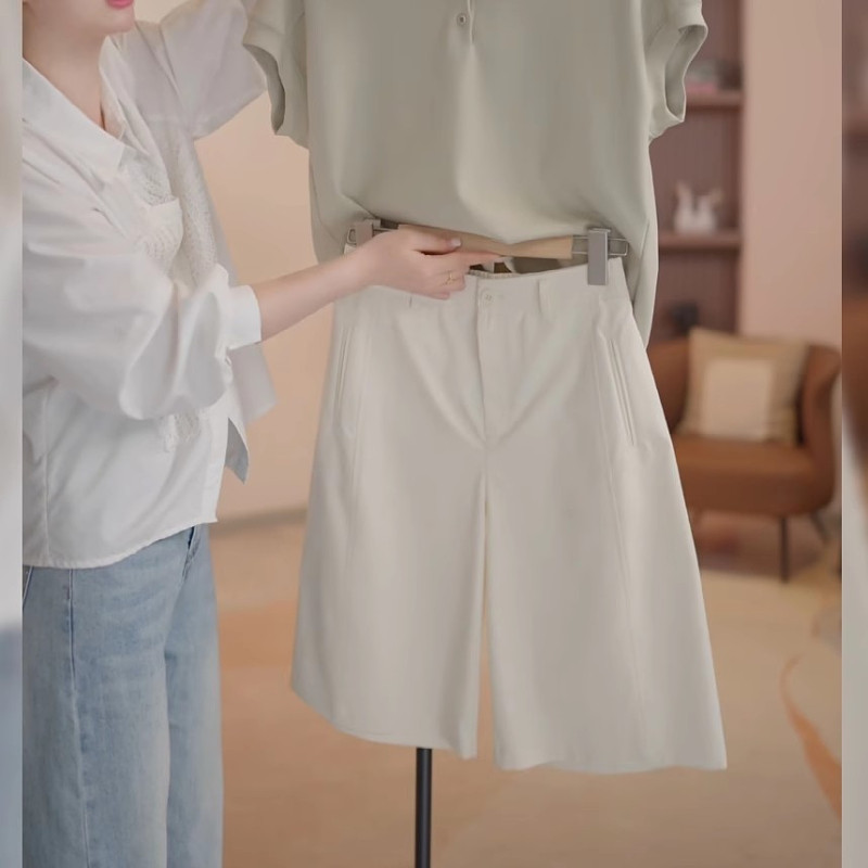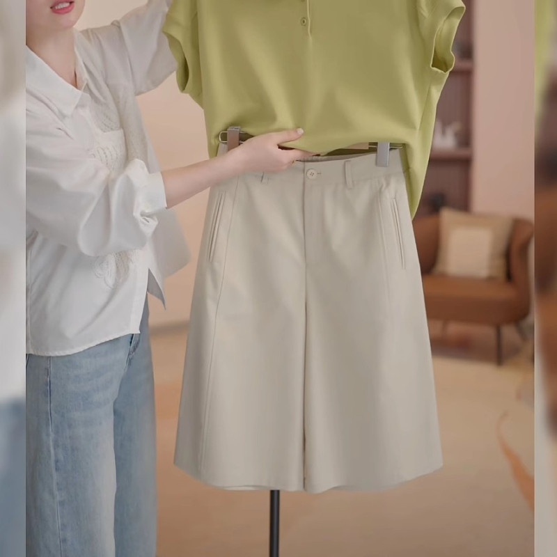 2026-cı ilin yayı üçün mükəmməl olan qadınlar üçün böyük ölçülü, yüksək belli, arıqladan qısa, enli şortlar. Bir az kök qadınlar üçün uyğun olan nazik model, ombaları gizlədir, gənc və gündəlik görünüş yaradır.