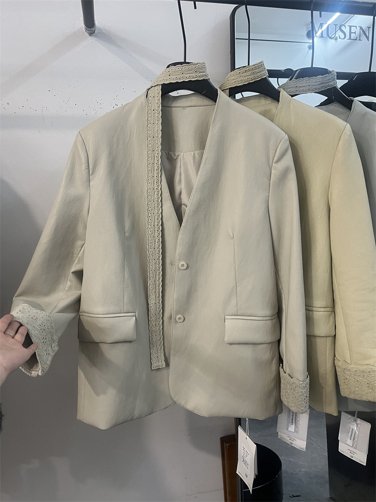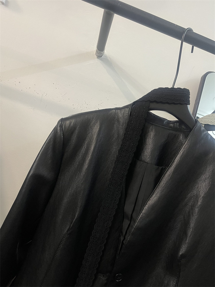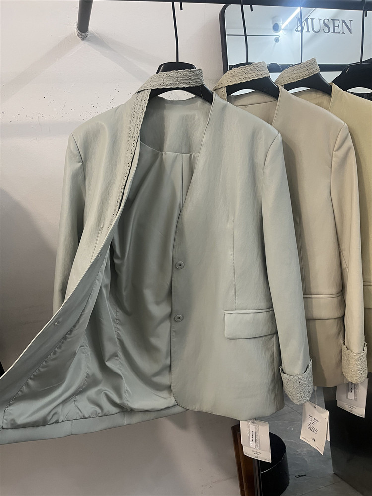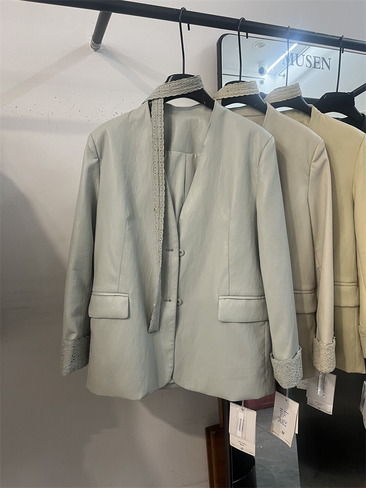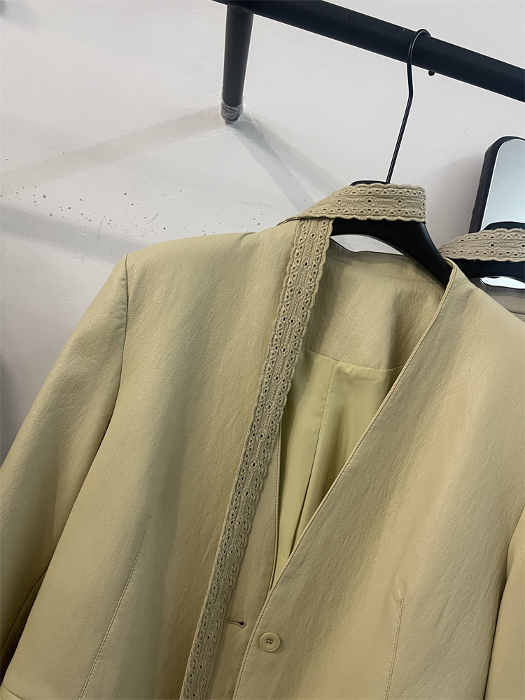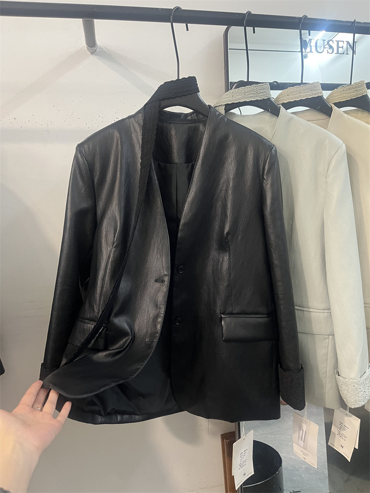 2026-cı ilin yazında trend olan, zərif və yüksək səviyyəli bir görünüş üçün axıcı V-yaxalı və yumşaq protein dərisinə malik qadınlar üçün yaxasız dəri kostyum.