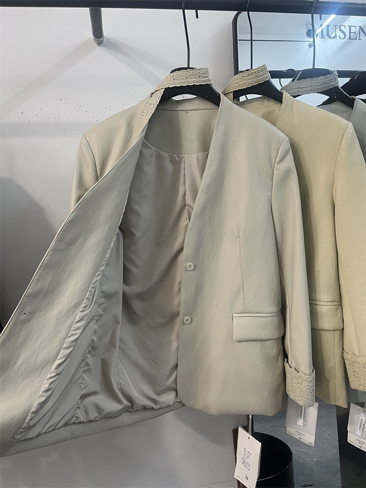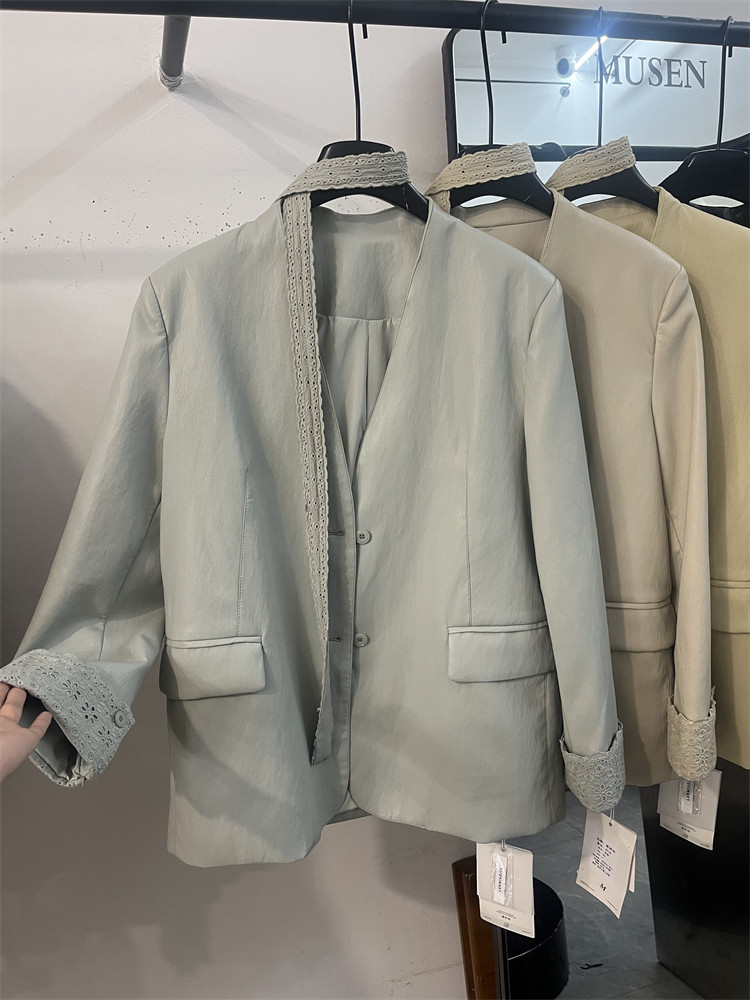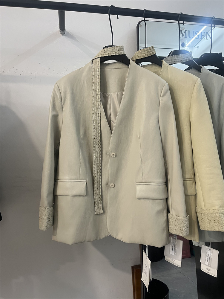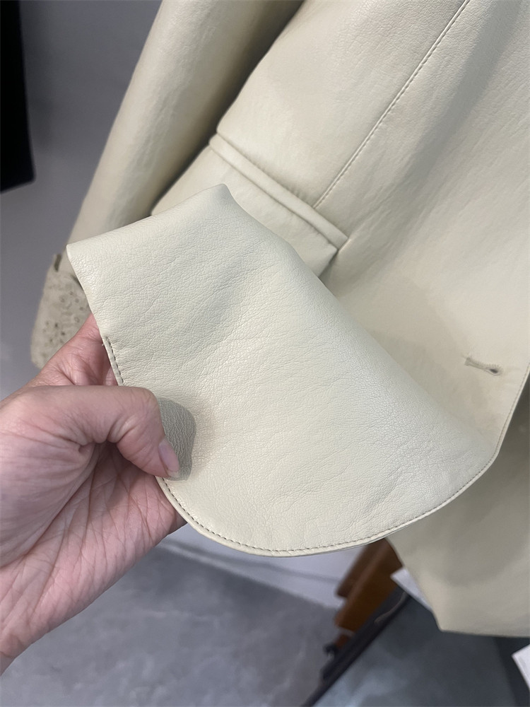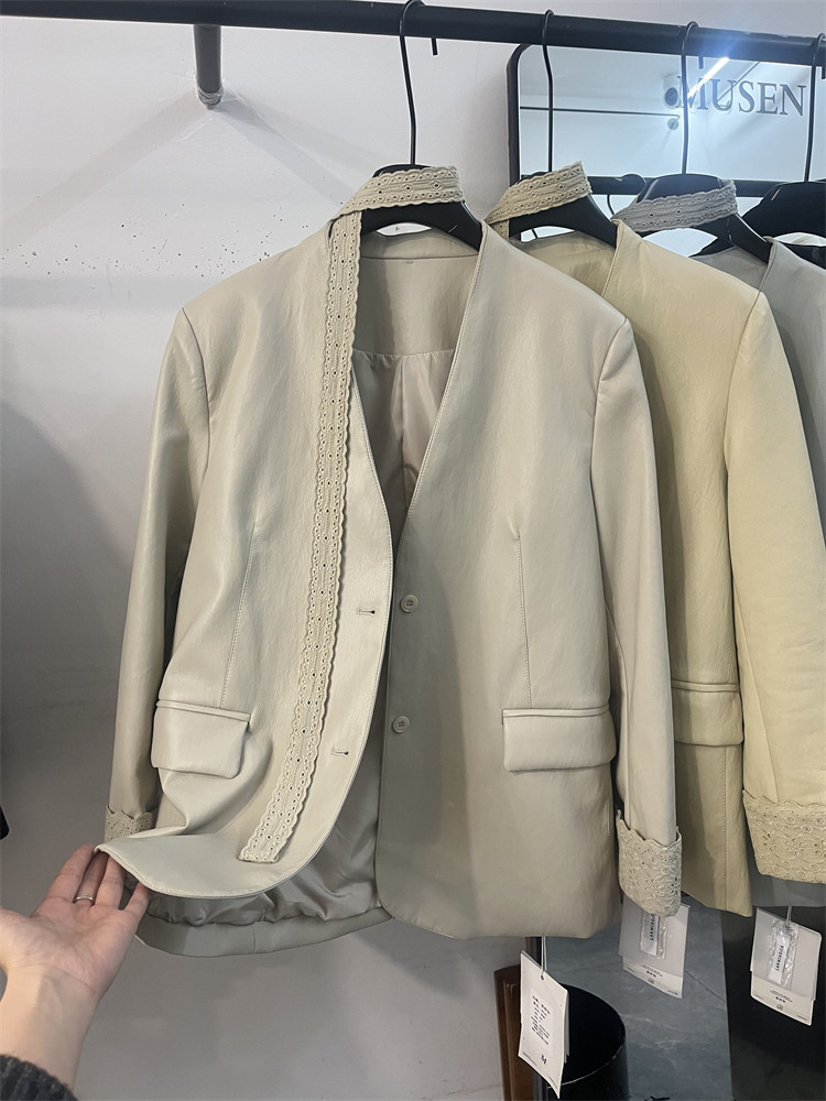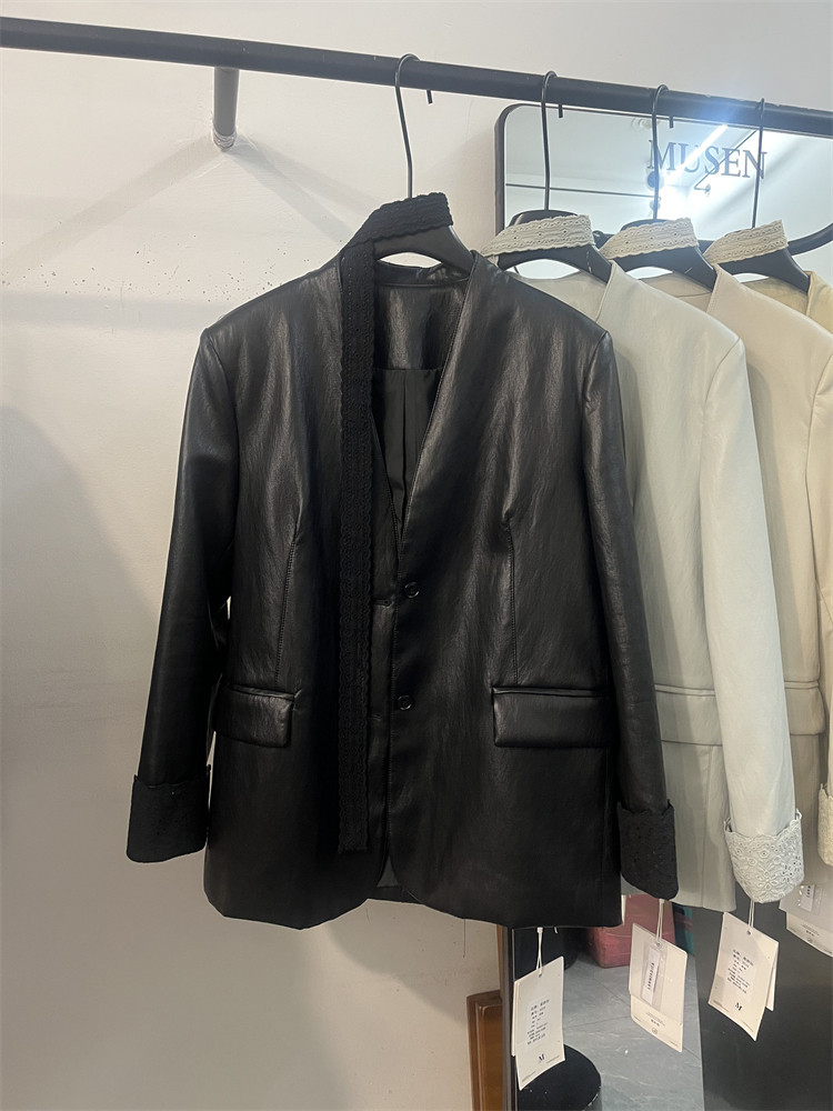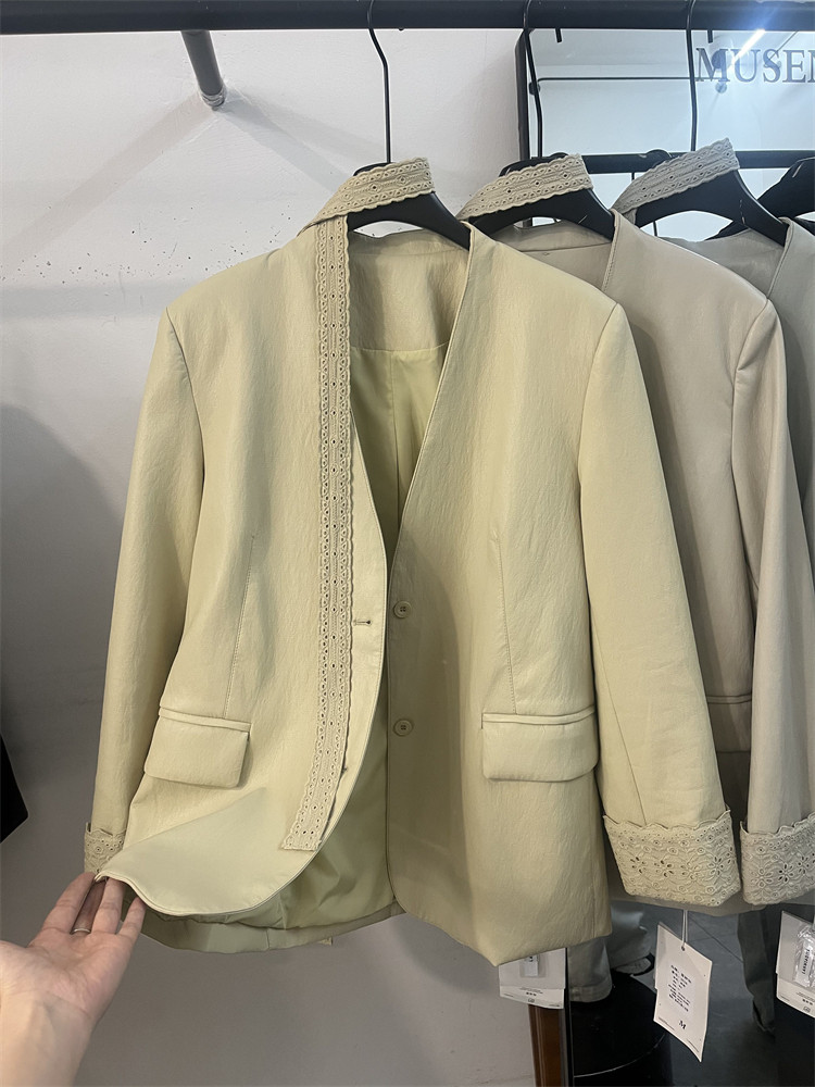 2026-cı ilin yazında trend olan, zərif və yüksək səviyyəli bir görünüş üçün axıcı V-yaxalı və yumşaq protein dərisinə malik qadınlar üçün yaxasız dəri kostyum.