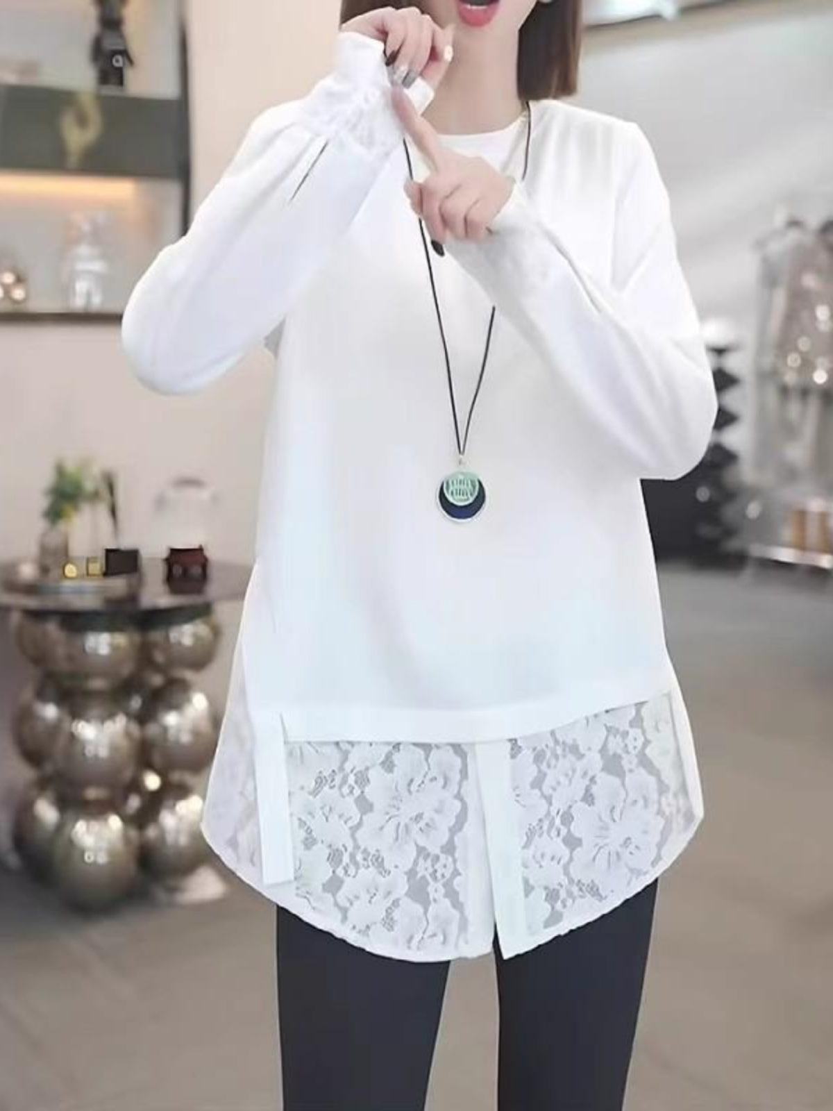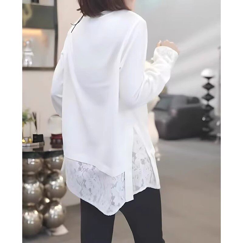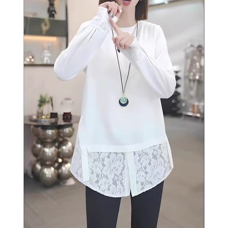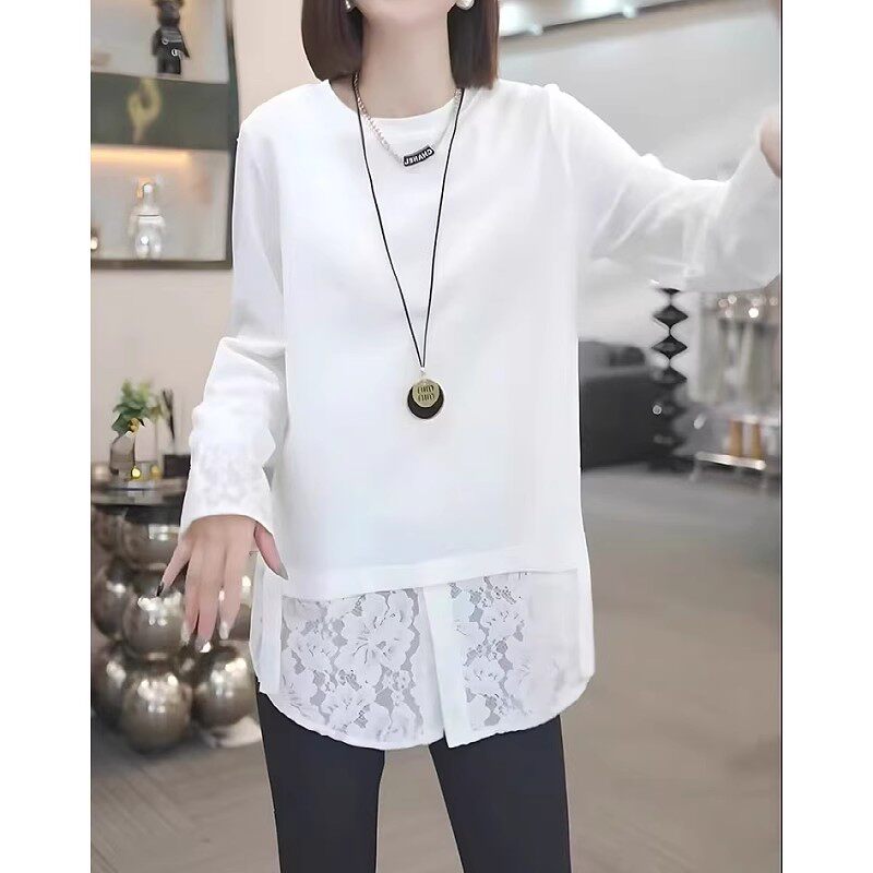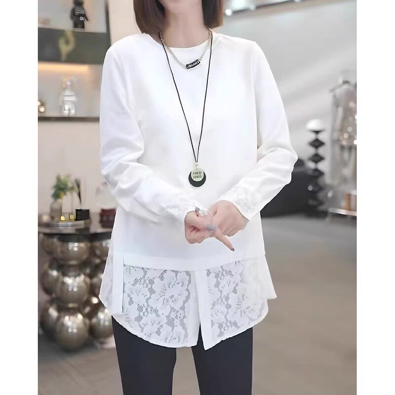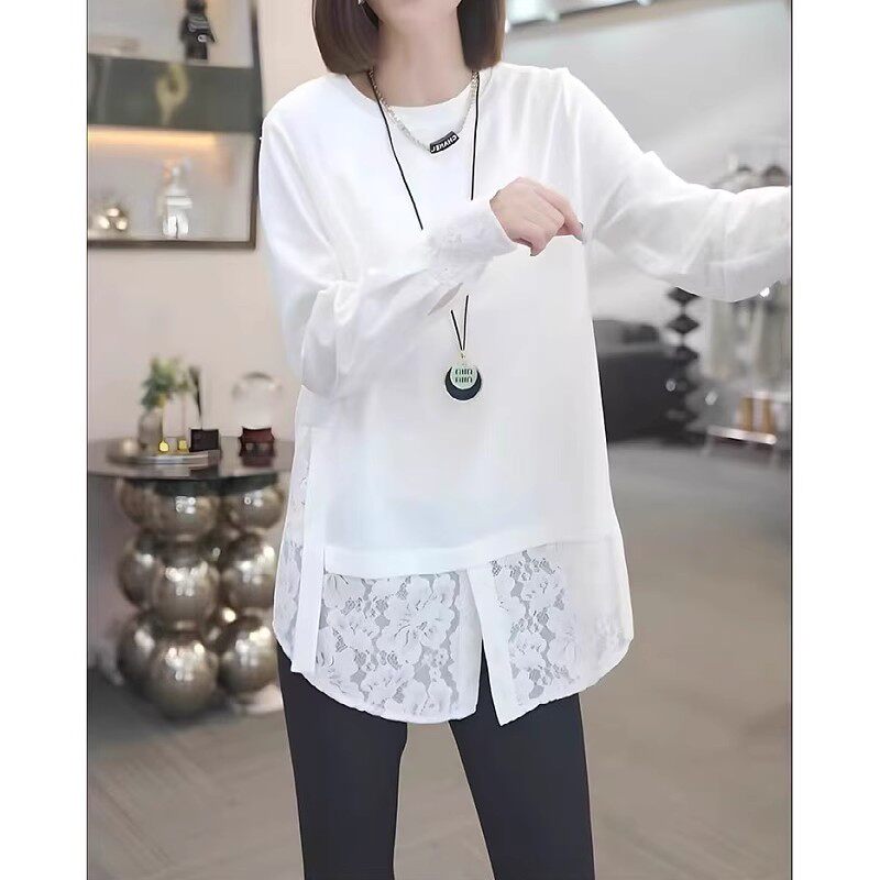 2026 Yaz Yeni Gəlişi, Saf Pambıqdan Yamaqla Bükülmüş Krujeva Uzunqollu Köynək, Böyük Ölçülü Qadınlar üçün, Qəşəng və Boş Üst Qat