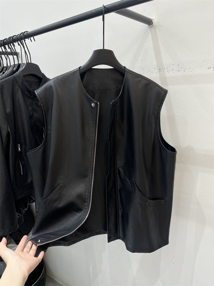 2026 Yaz Yeni Qadın Dəri Jilet, Boş Gündəlik Motosiklet Stilində, Yumşaq Zülal Dəri, Lüks Top