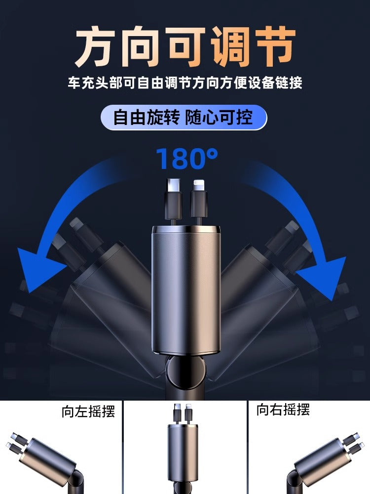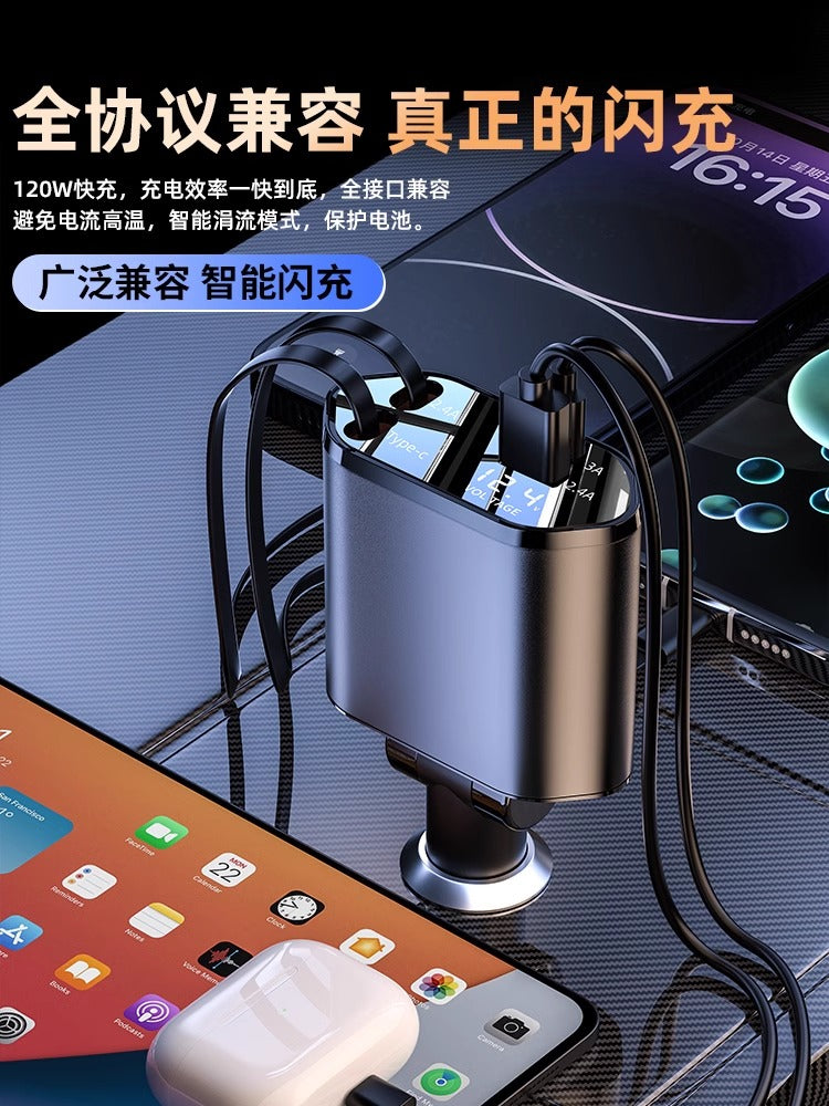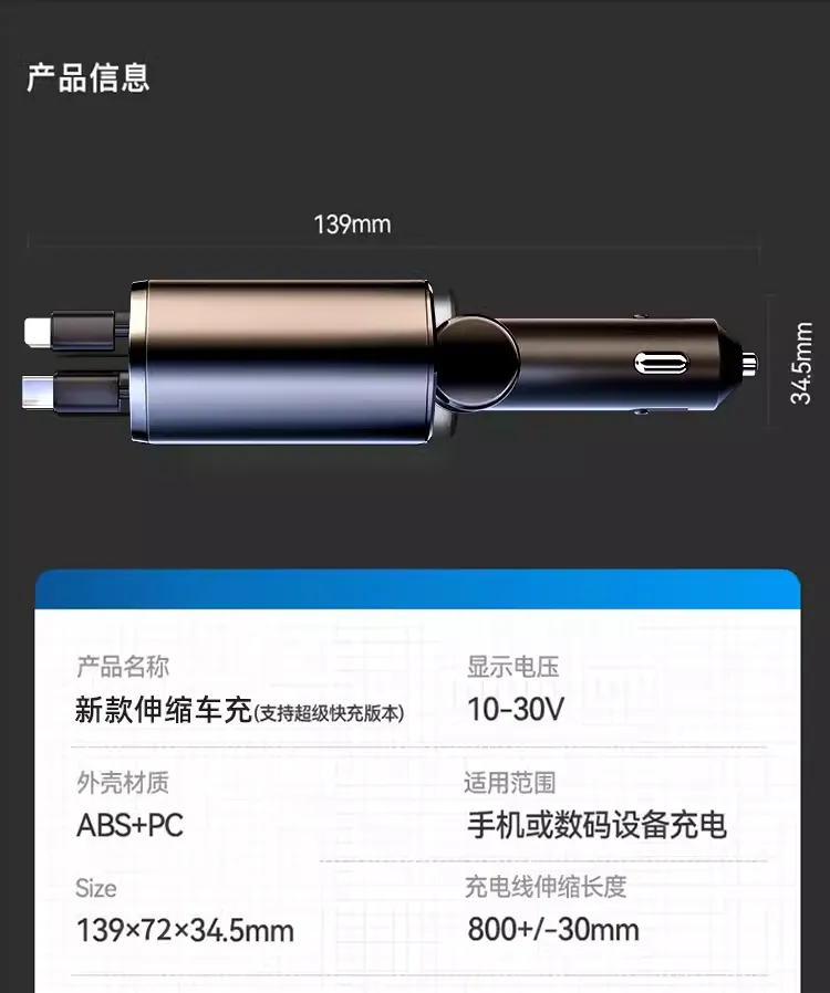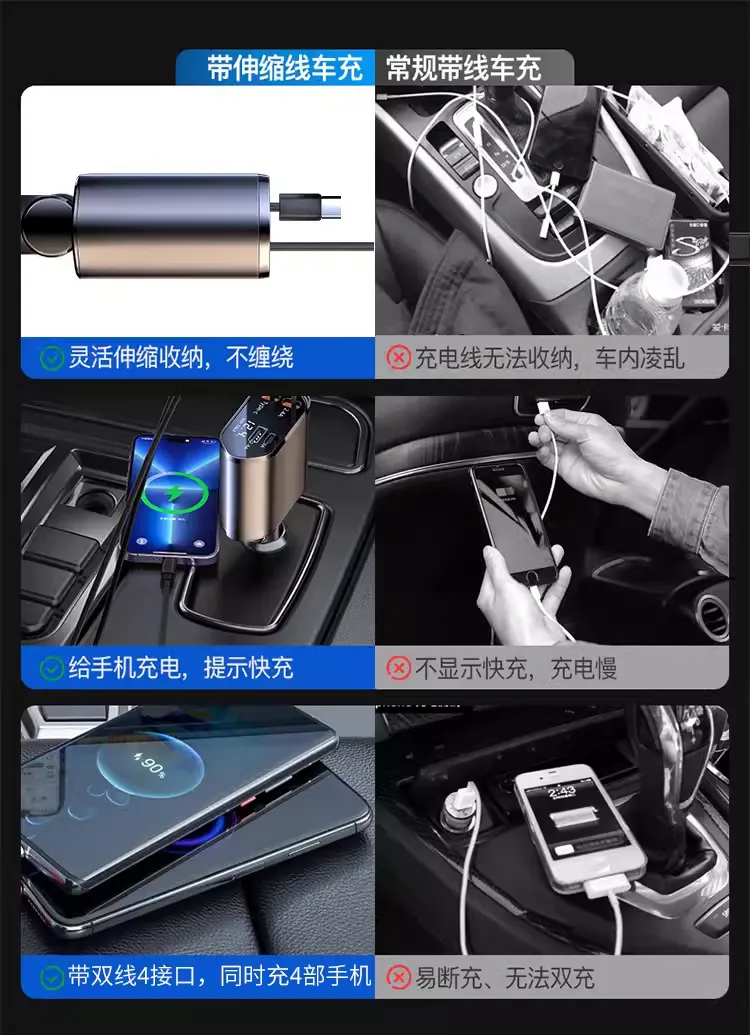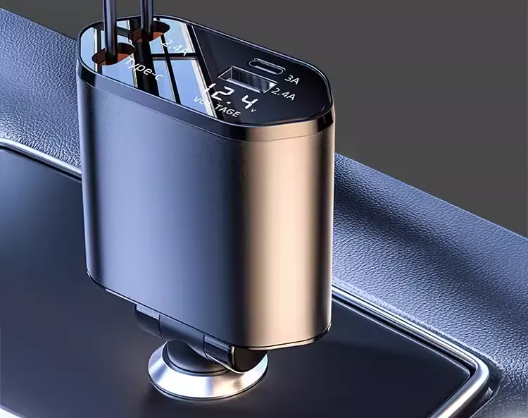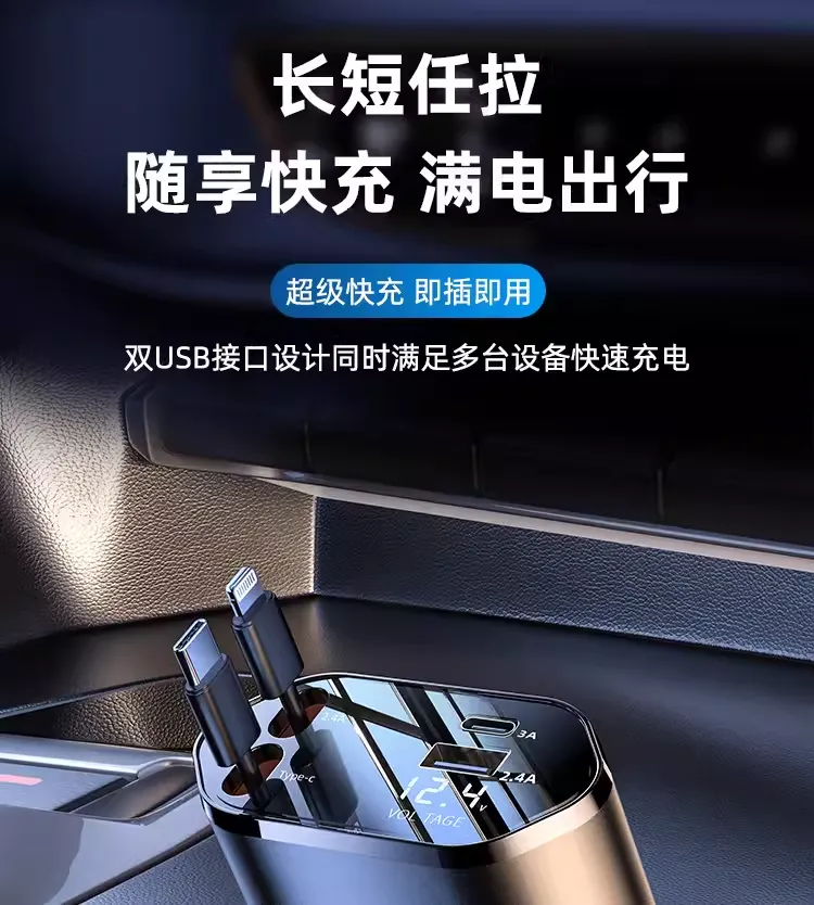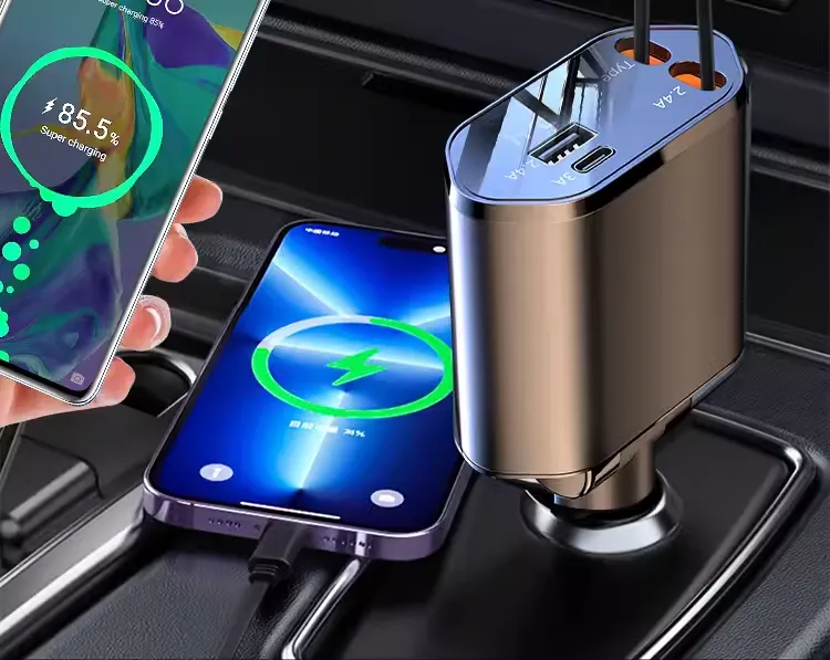 2026 New Car Charger Super Fast Charger Car Cigarette Lighter Adapter Flash Charging Retractable Cable for Mobile Phones