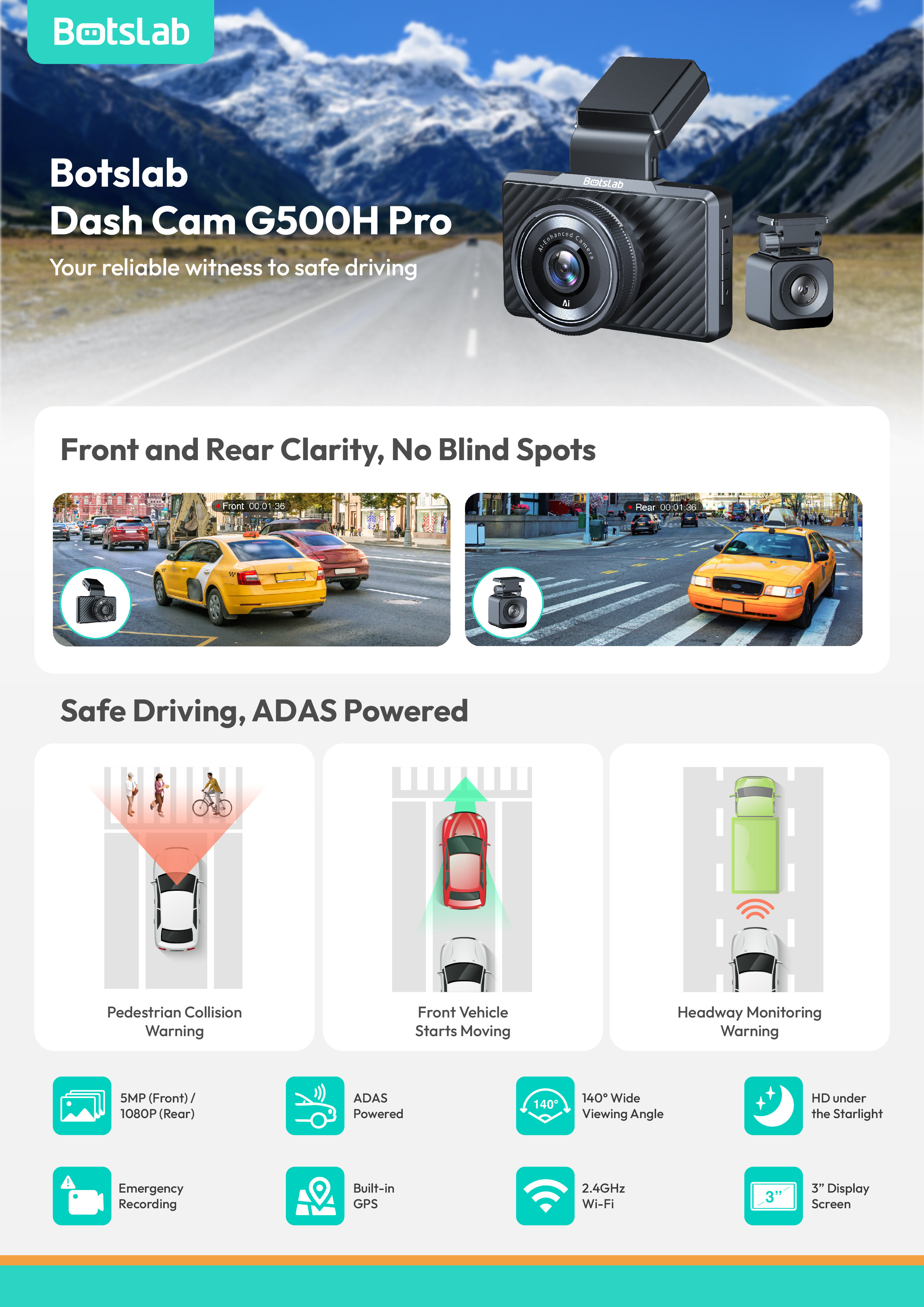 360 DVR G500H Pro-nun xarici versiyası sürücü yorğunluğu barədə xəbərdarlıq və quraşdırılmış GPS izləmə sisteminə malikdir.