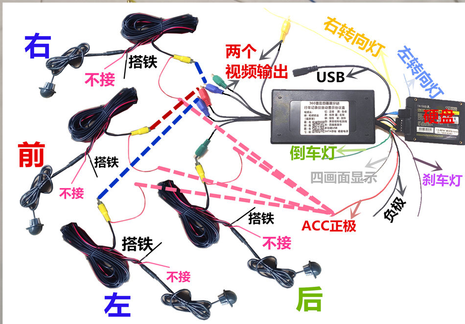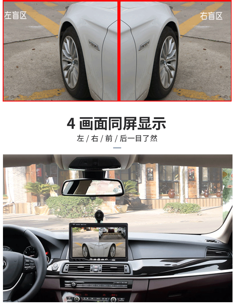 The 360° panoramic drive camera captures video from four angles simultaneously with the original car's left and right blind spot cameras, a reversing camera, and a high-definition night vision system.