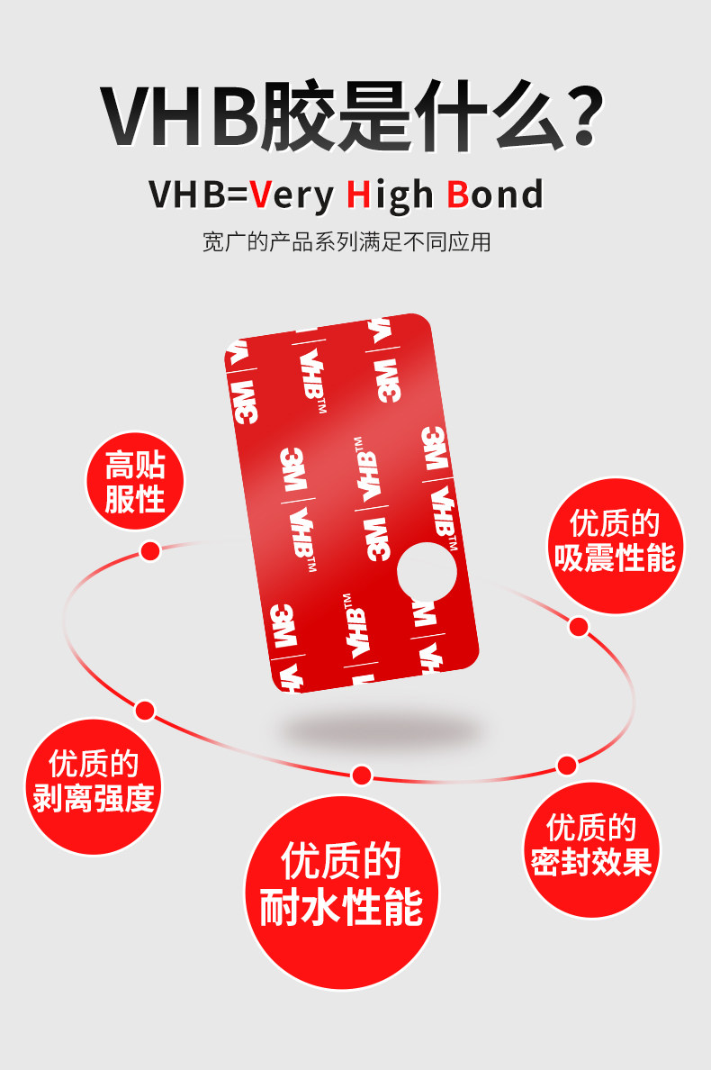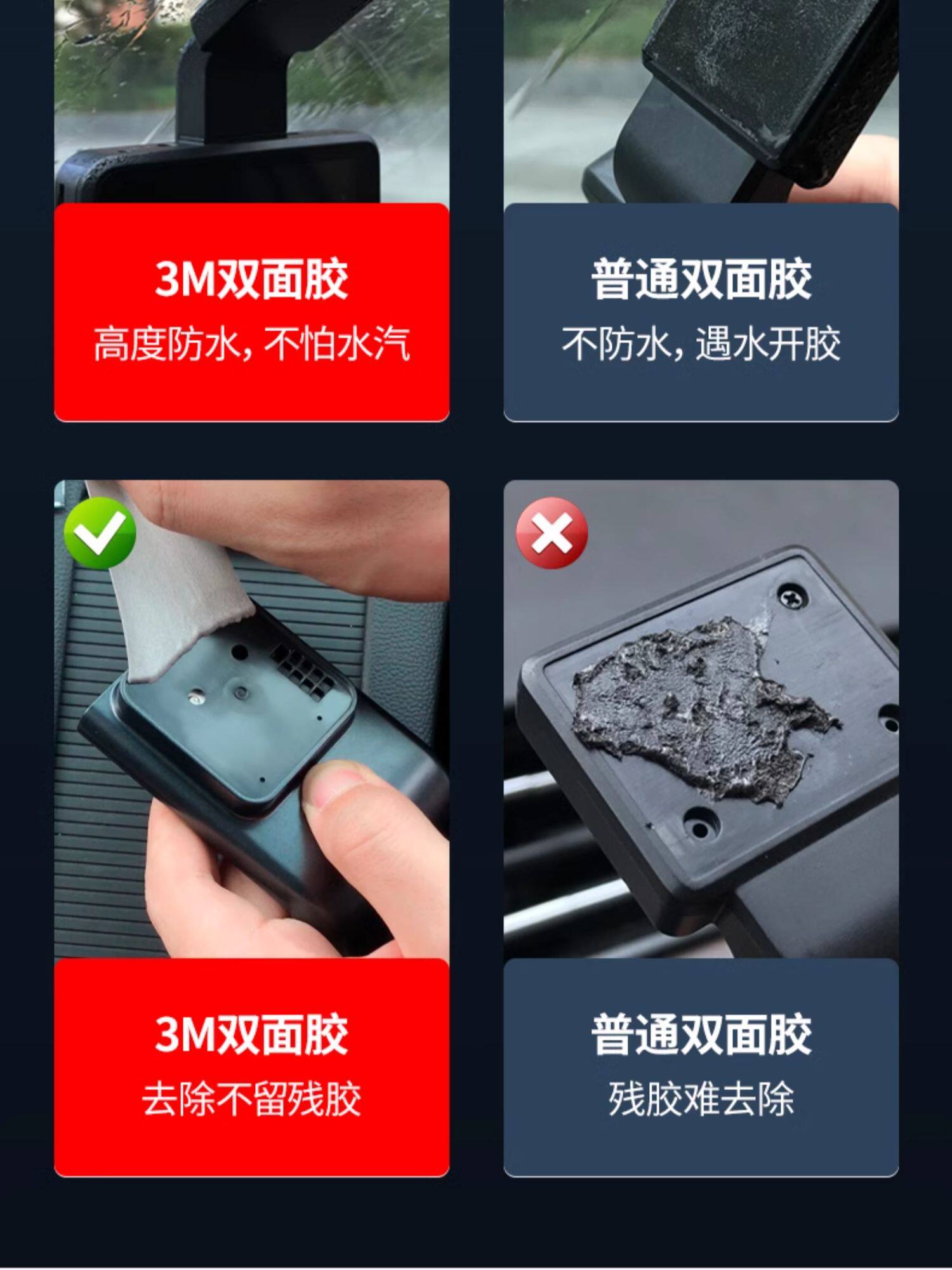 3M dashboard mounting adhesive patch, double-sided adhesive for automotive, high viscosity VHB residue-free, high temperature resistant backing.