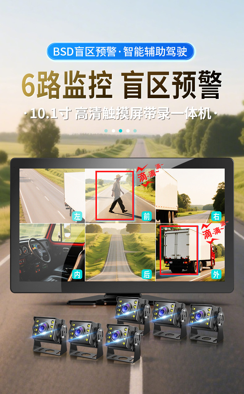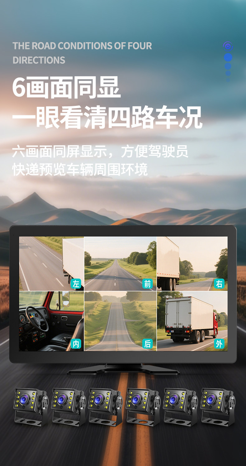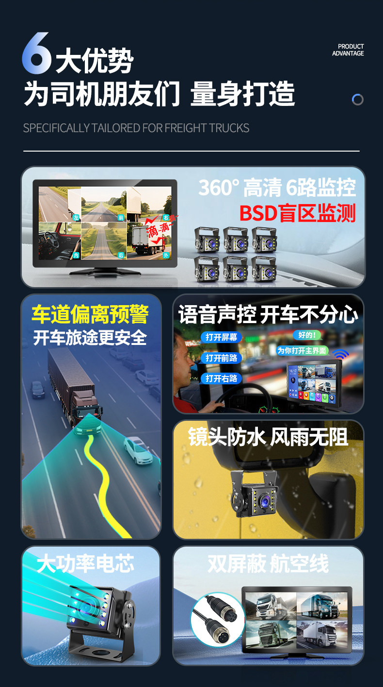 The 456-way truck dash cam combines high-definition night vision, blind spot warning, 1080P reversing camera and other functions.