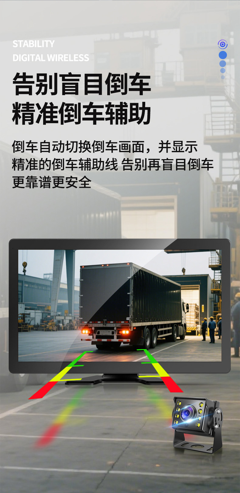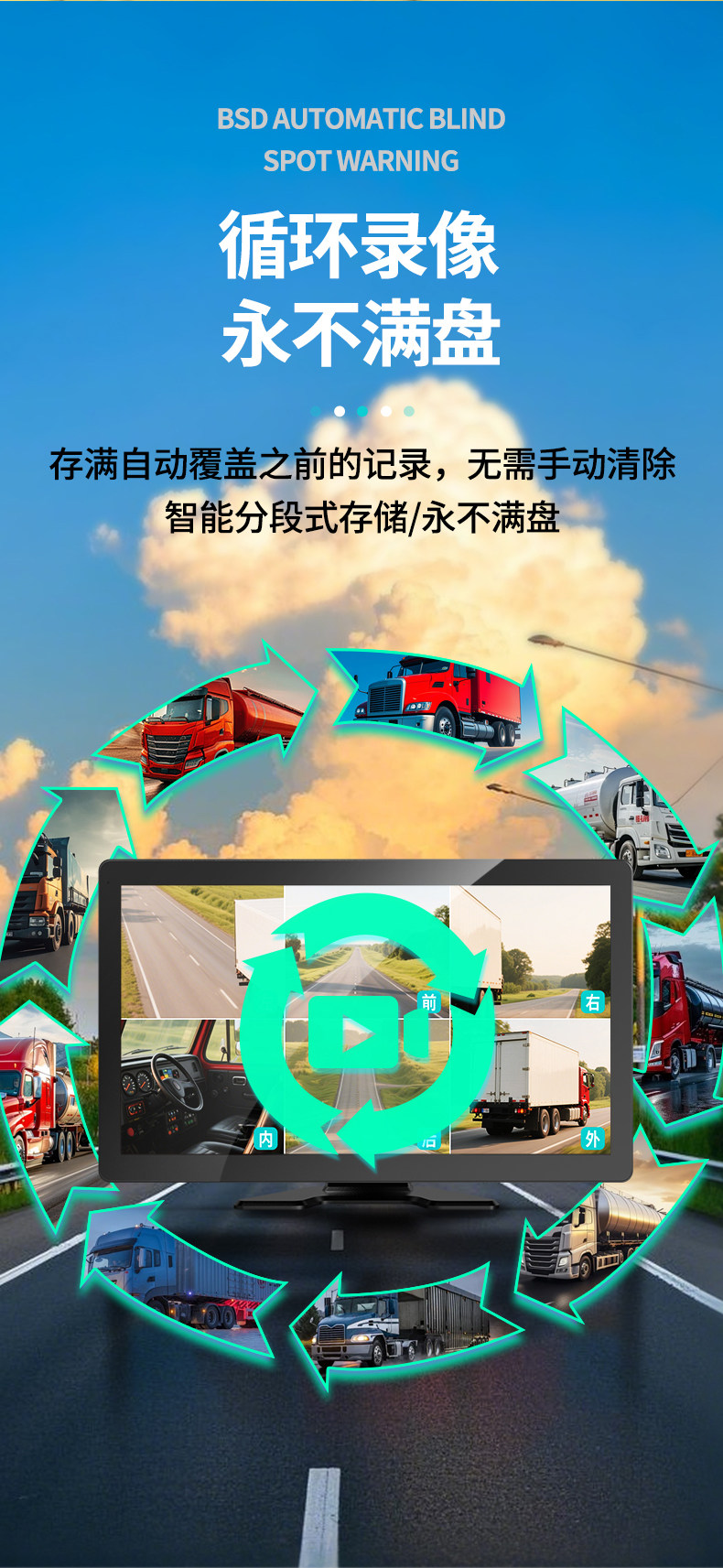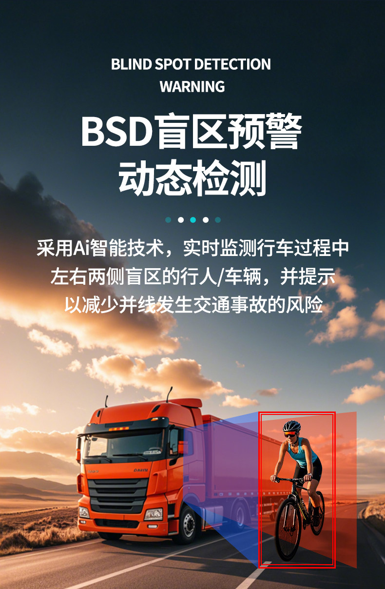 The 456-way truck dash cam combines high-definition night vision, blind spot warning, 1080P reversing camera and other functions.
