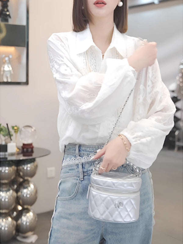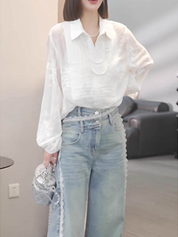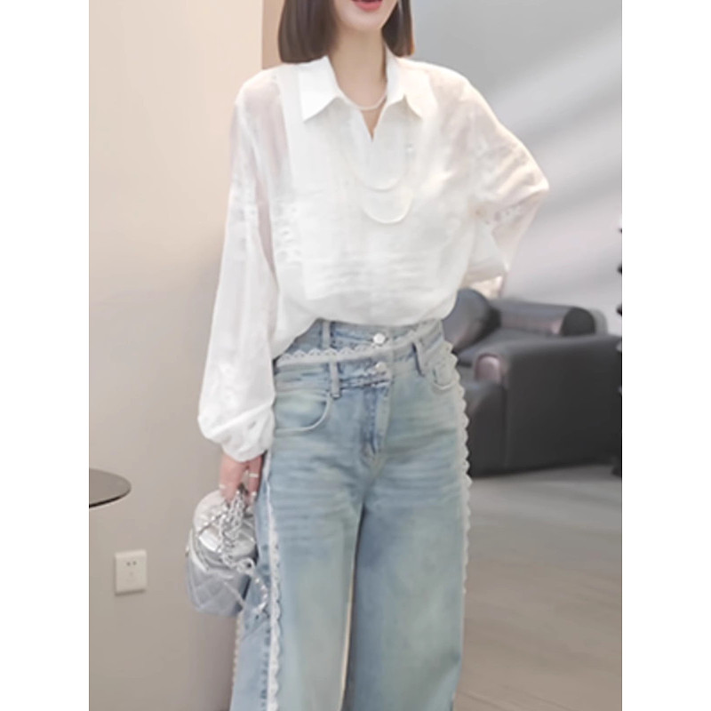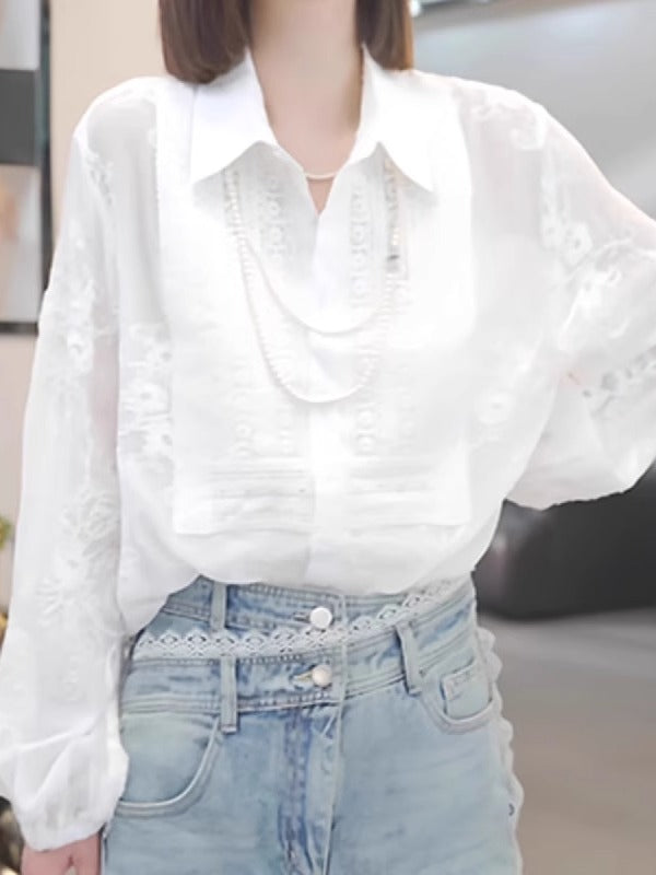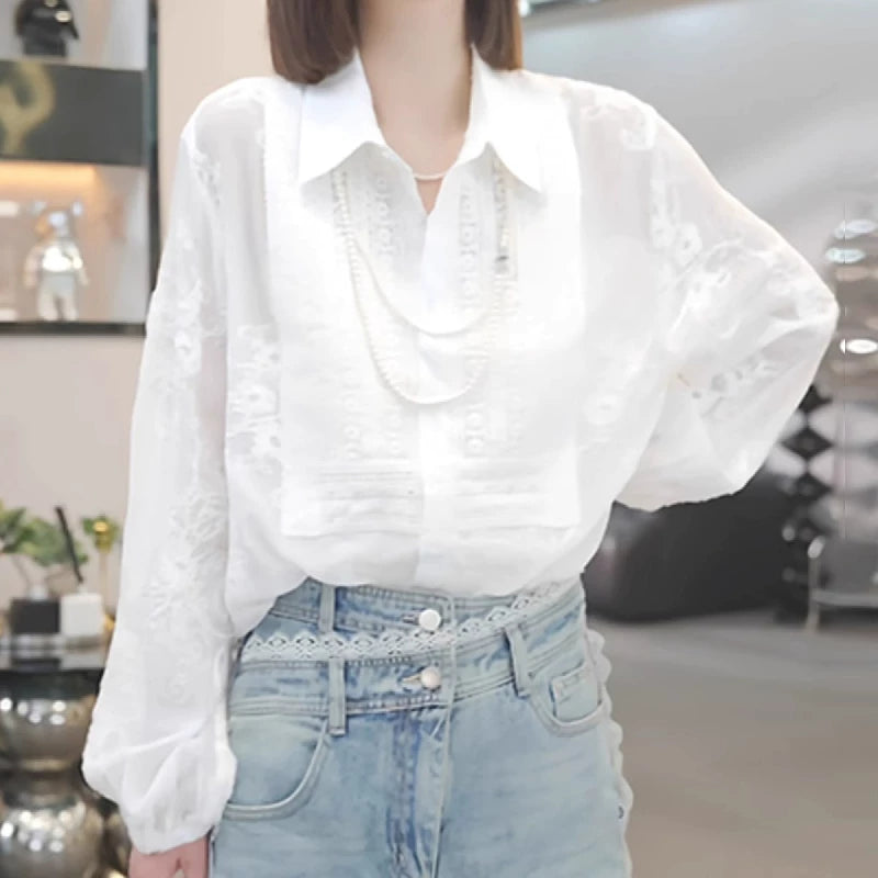 Ağ köynək topu, böyük ölçülü qadın geyimləri, 2026 yaz yeni stili, dəbli və gənclik üçün bluzka, yüksək səviyyəli köynək.