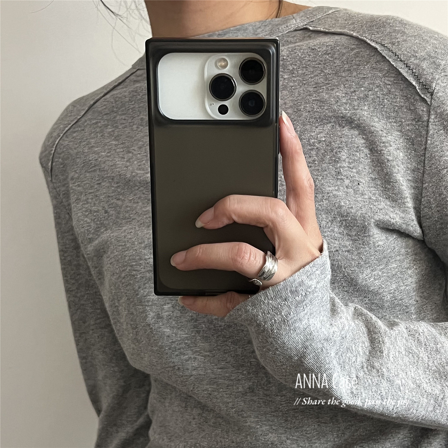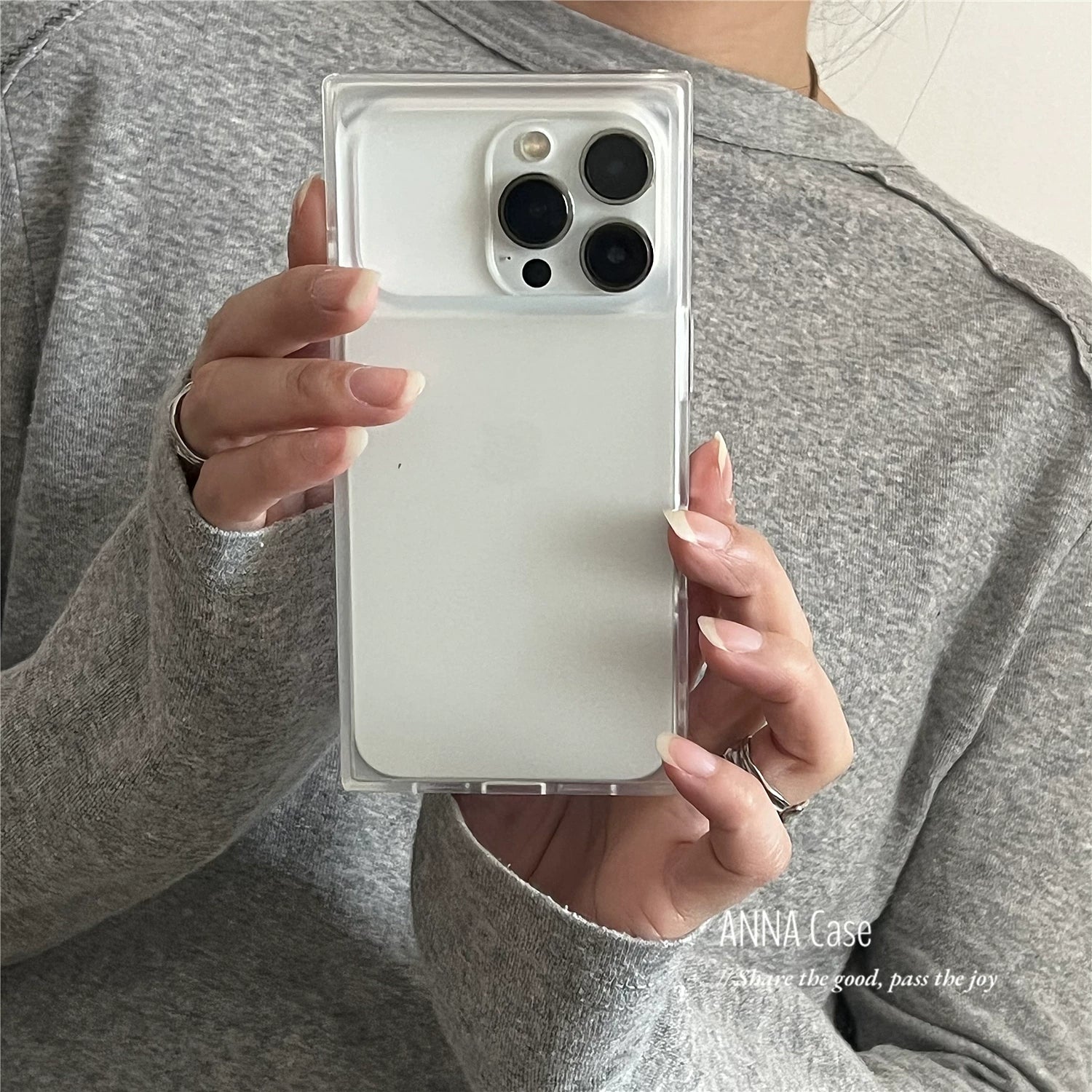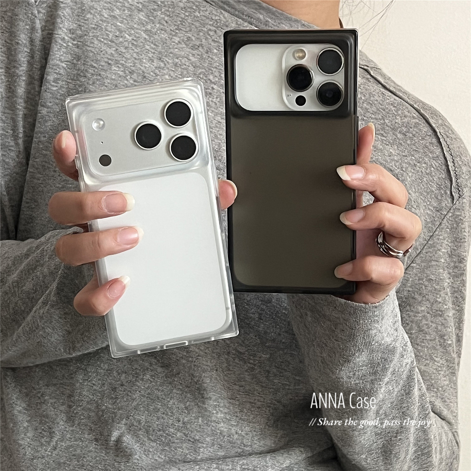 ANNACASE Premium Minimalist Şəffaf Qara və Ağ Buzlu Kvadrat Telefon Çantası, Apple 17 Yeni Model, 15 Pro Tam Örtük, Kişilər və Qadınlar üçün 16 Pro Max Düşməyə Qarşı Qoruyucu Çanta.