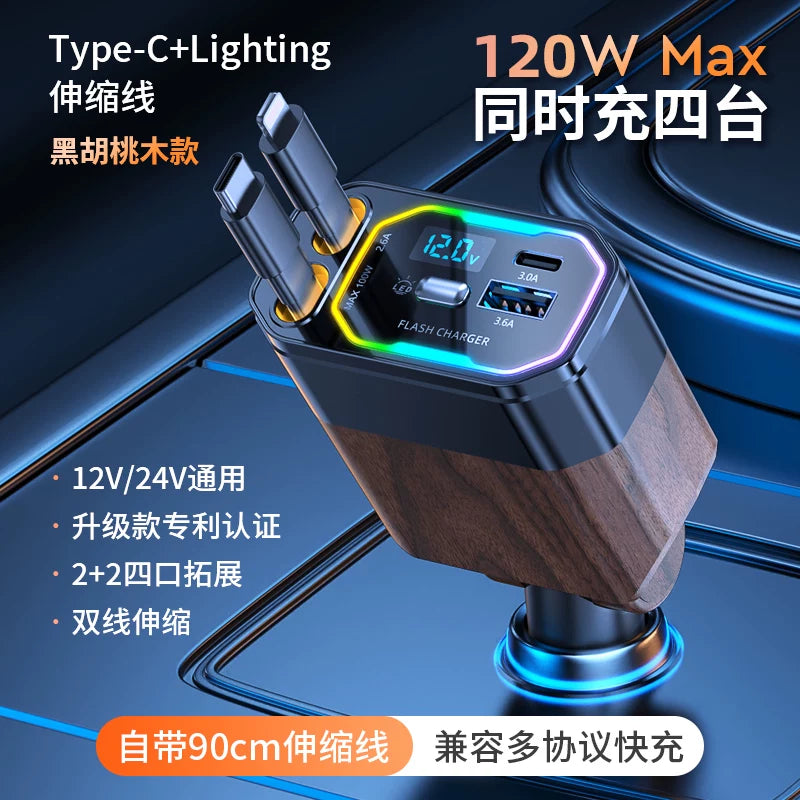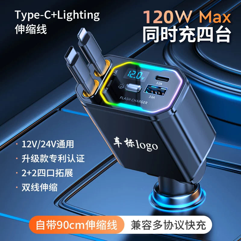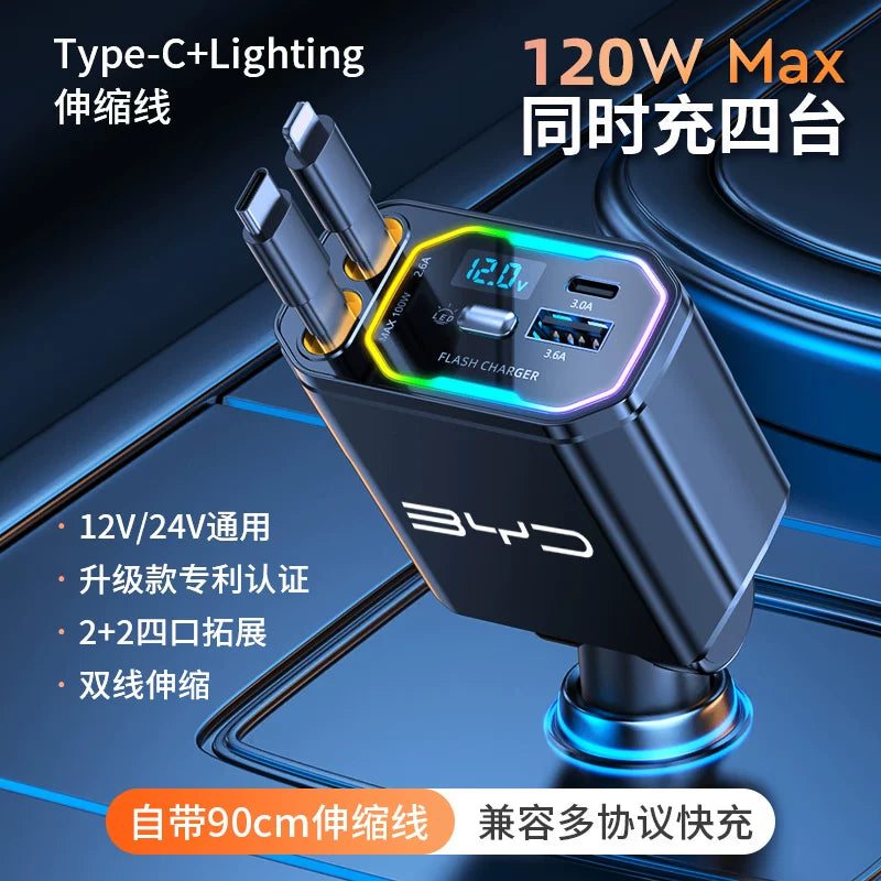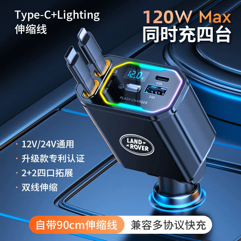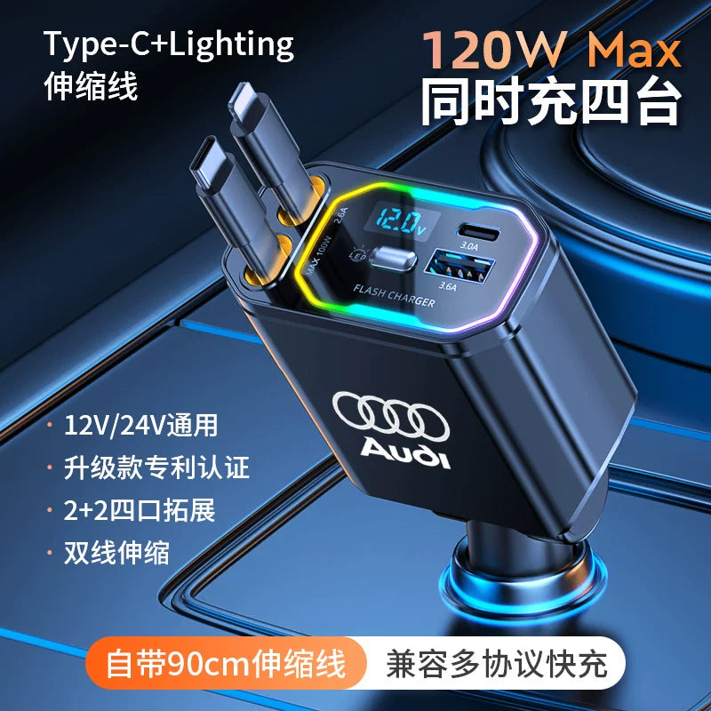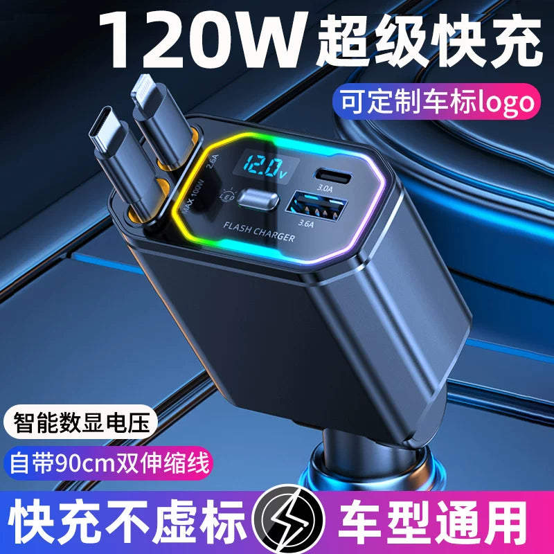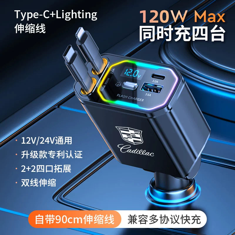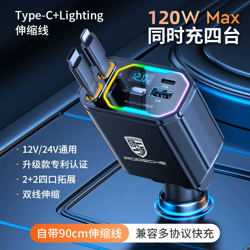 Apple Avtomobil Siqaret Çakmak Adapteri üçün 1-dən 3-ə qədər bağlayıcı ilə Alman 120W Super Sürətli Avtomobil Şarj Kabeli