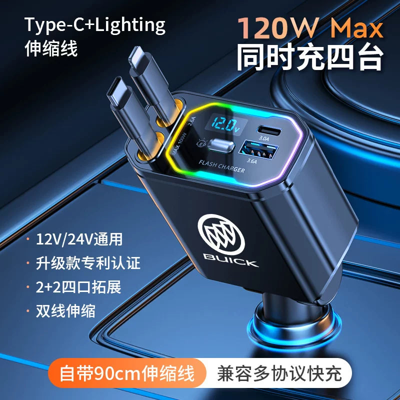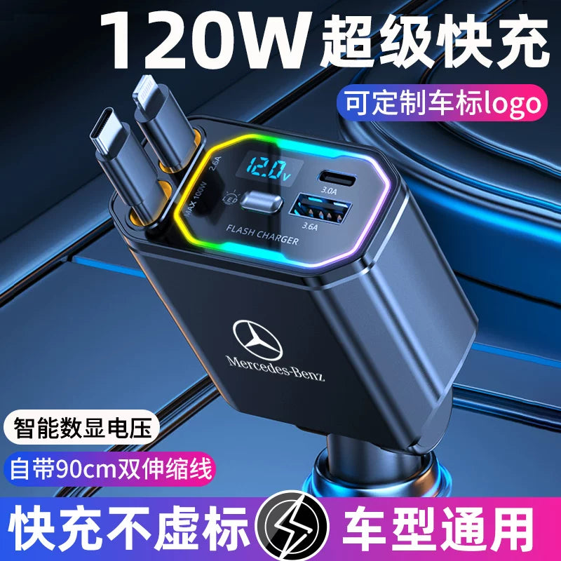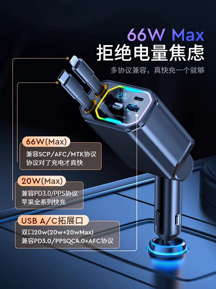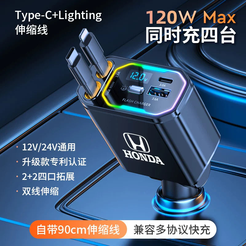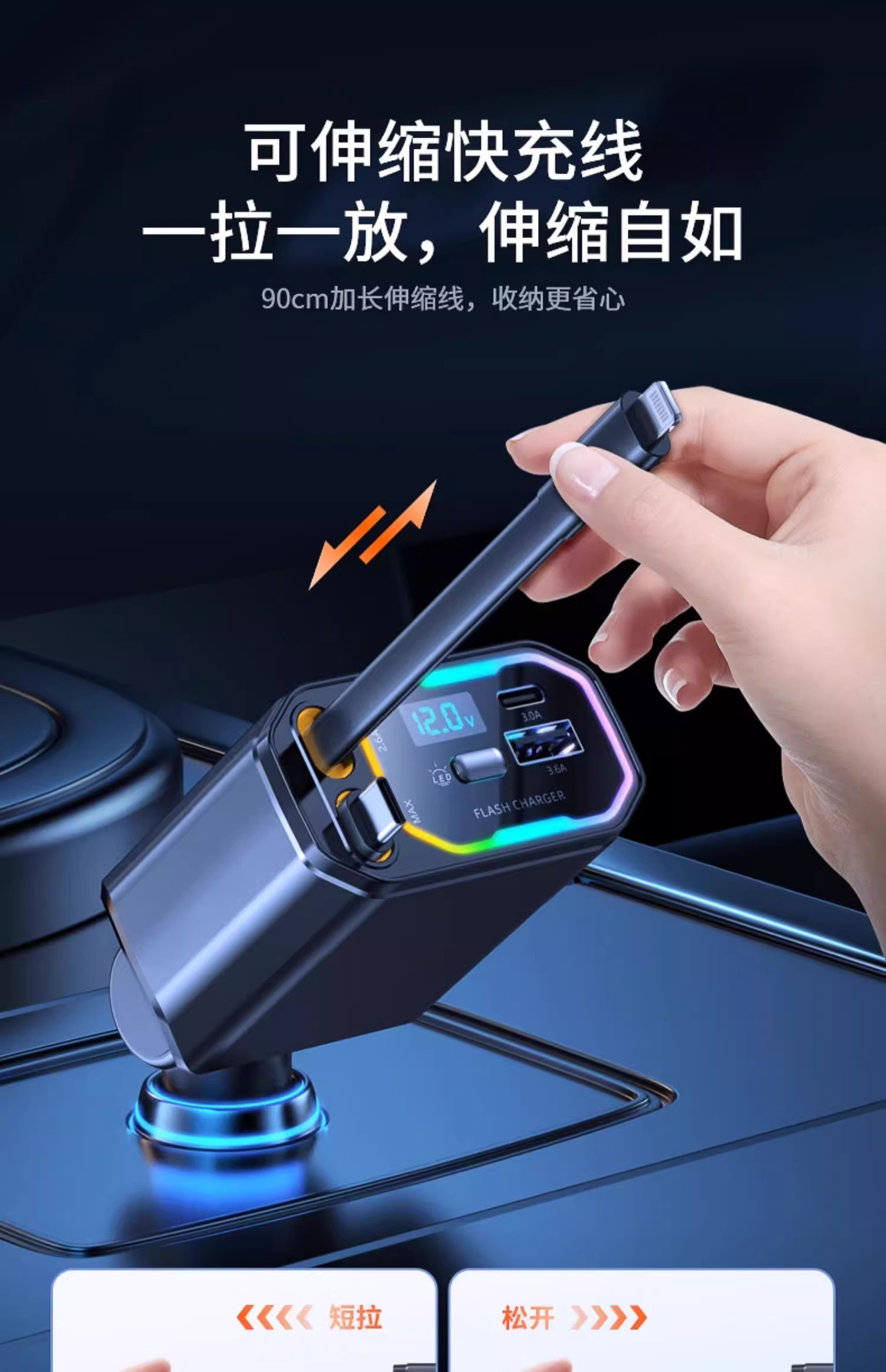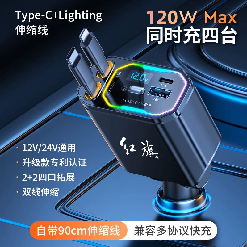 Apple Avtomobil Siqaret Çakmak Adapteri üçün 1-dən 3-ə qədər bağlayıcı ilə Alman 120W Super Sürətli Avtomobil Şarj Kabeli