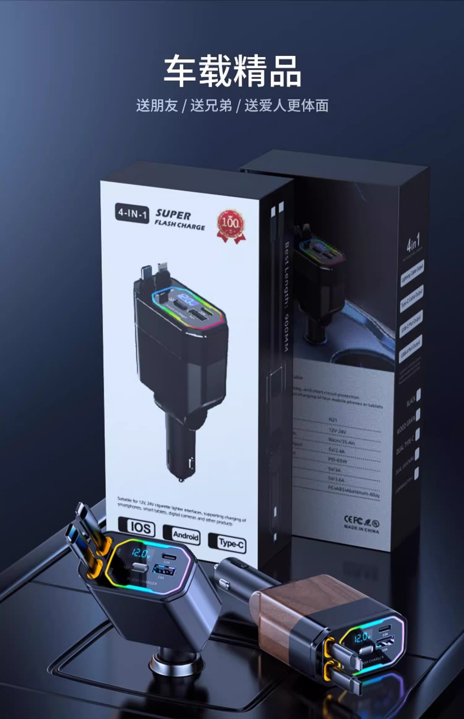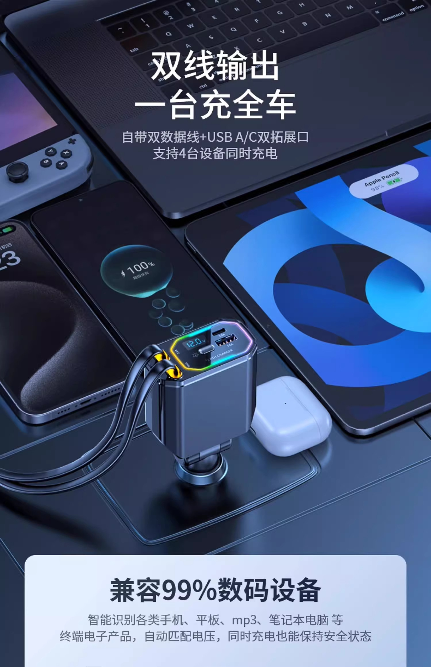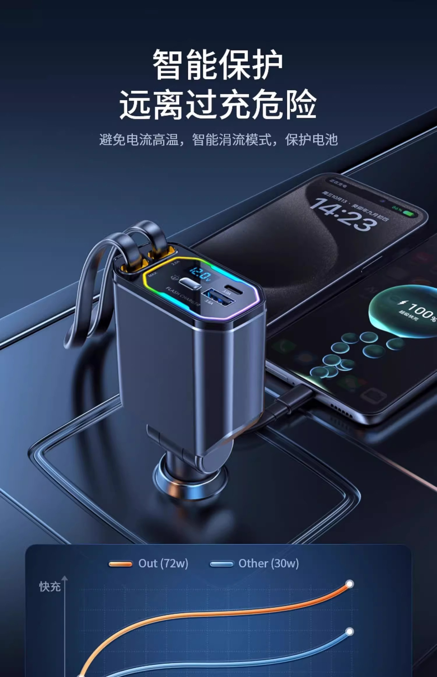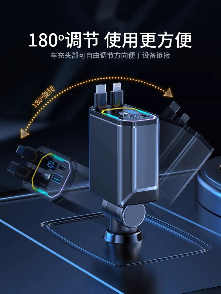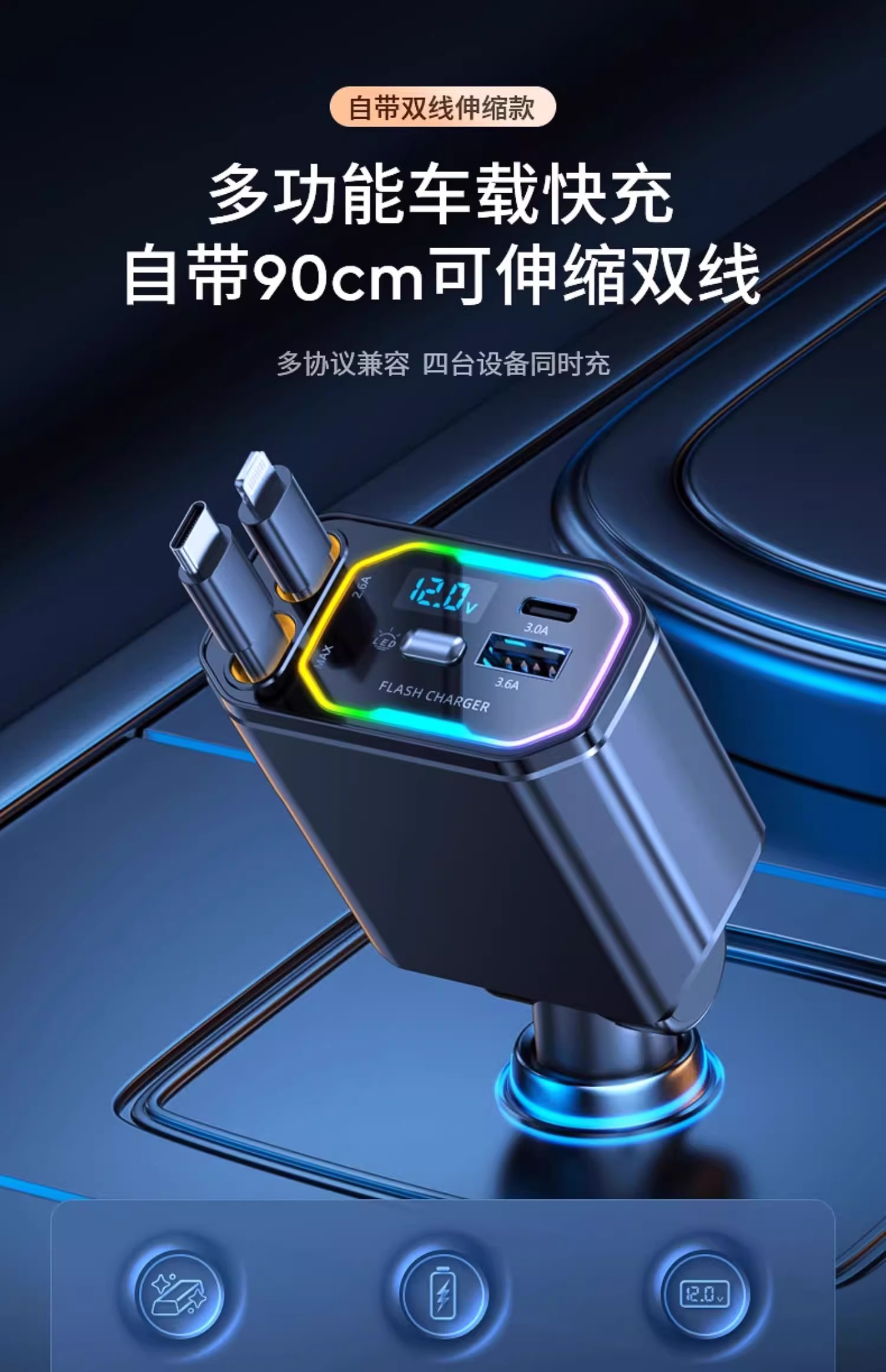 Apple Avtomobil Siqaret Çakmak Adapteri üçün 1-dən 3-ə qədər bağlayıcı ilə Alman 120W Super Sürətli Avtomobil Şarj Kabeli