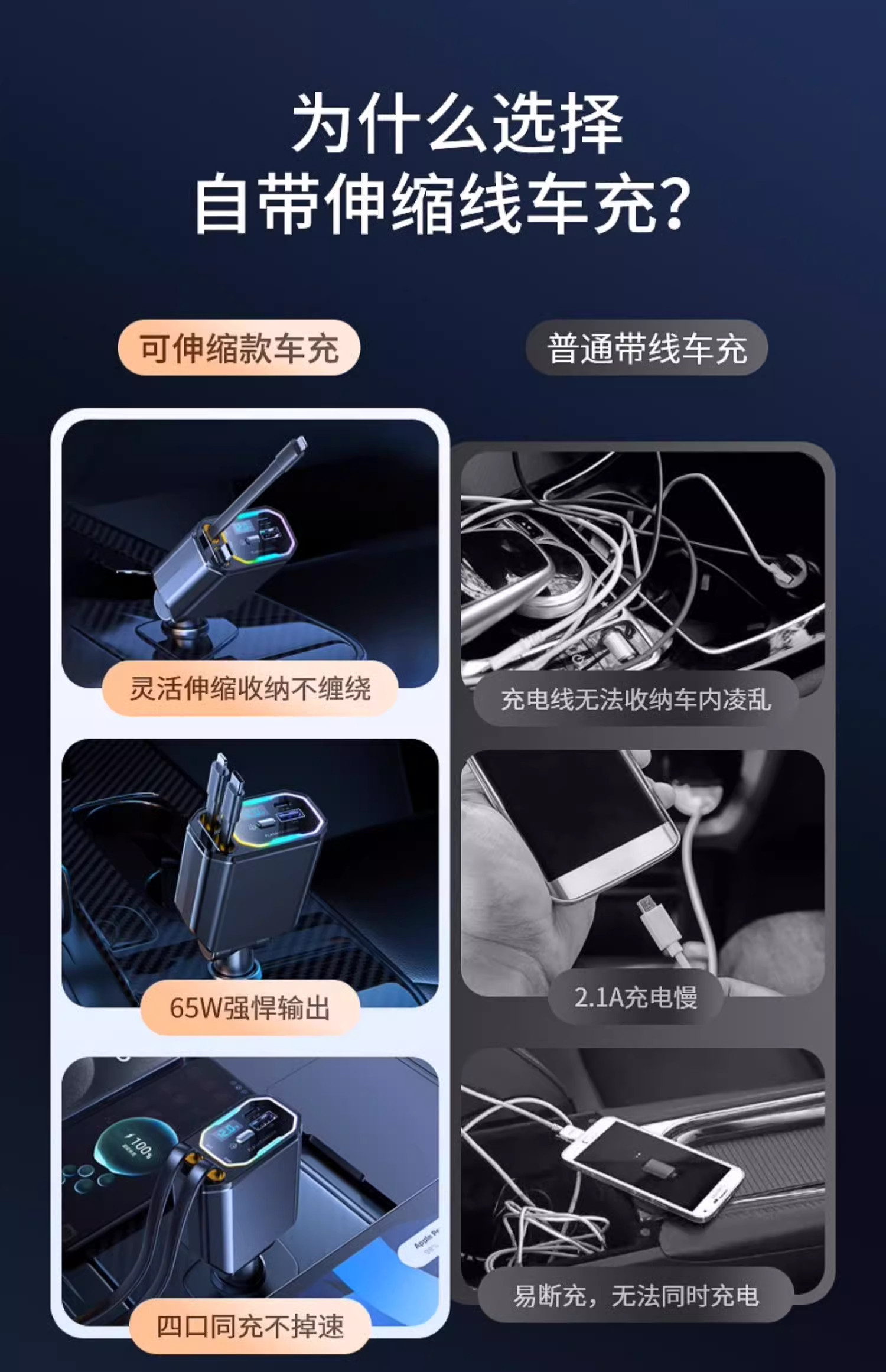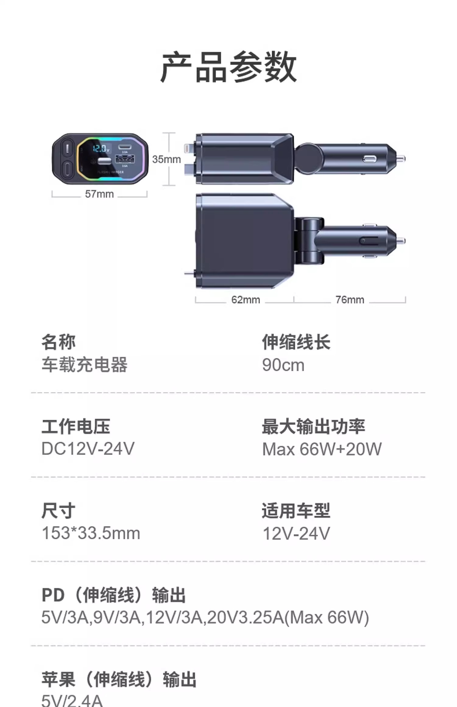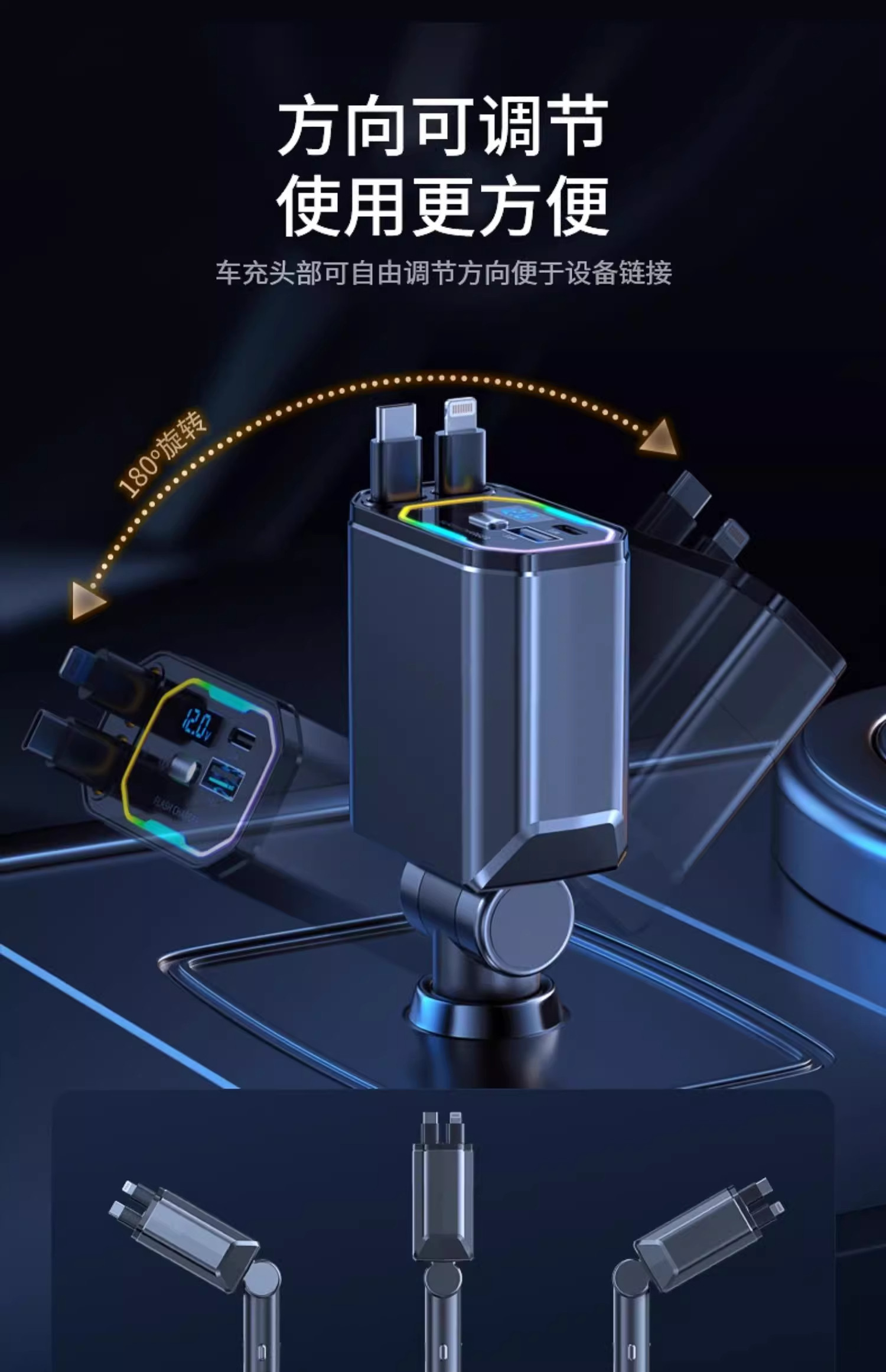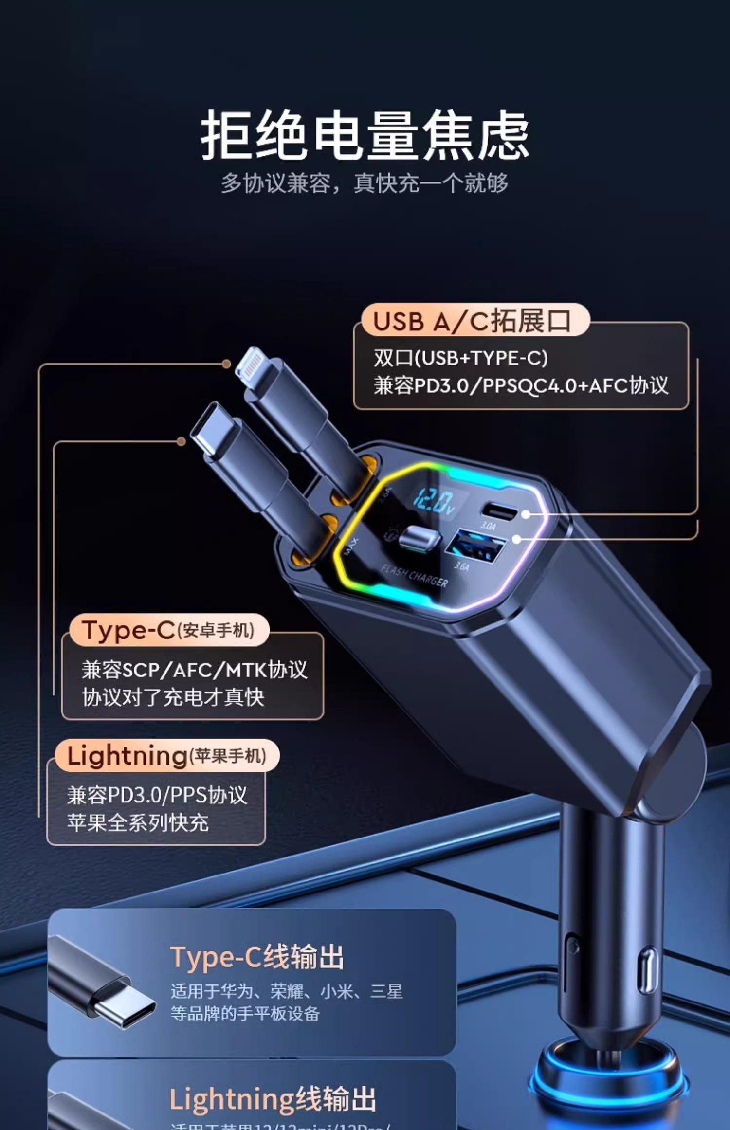 Apple Avtomobil Siqaret Çakmak Adapteri üçün 1-dən 3-ə qədər bağlayıcı ilə Alman 120W Super Sürətli Avtomobil Şarj Kabeli
