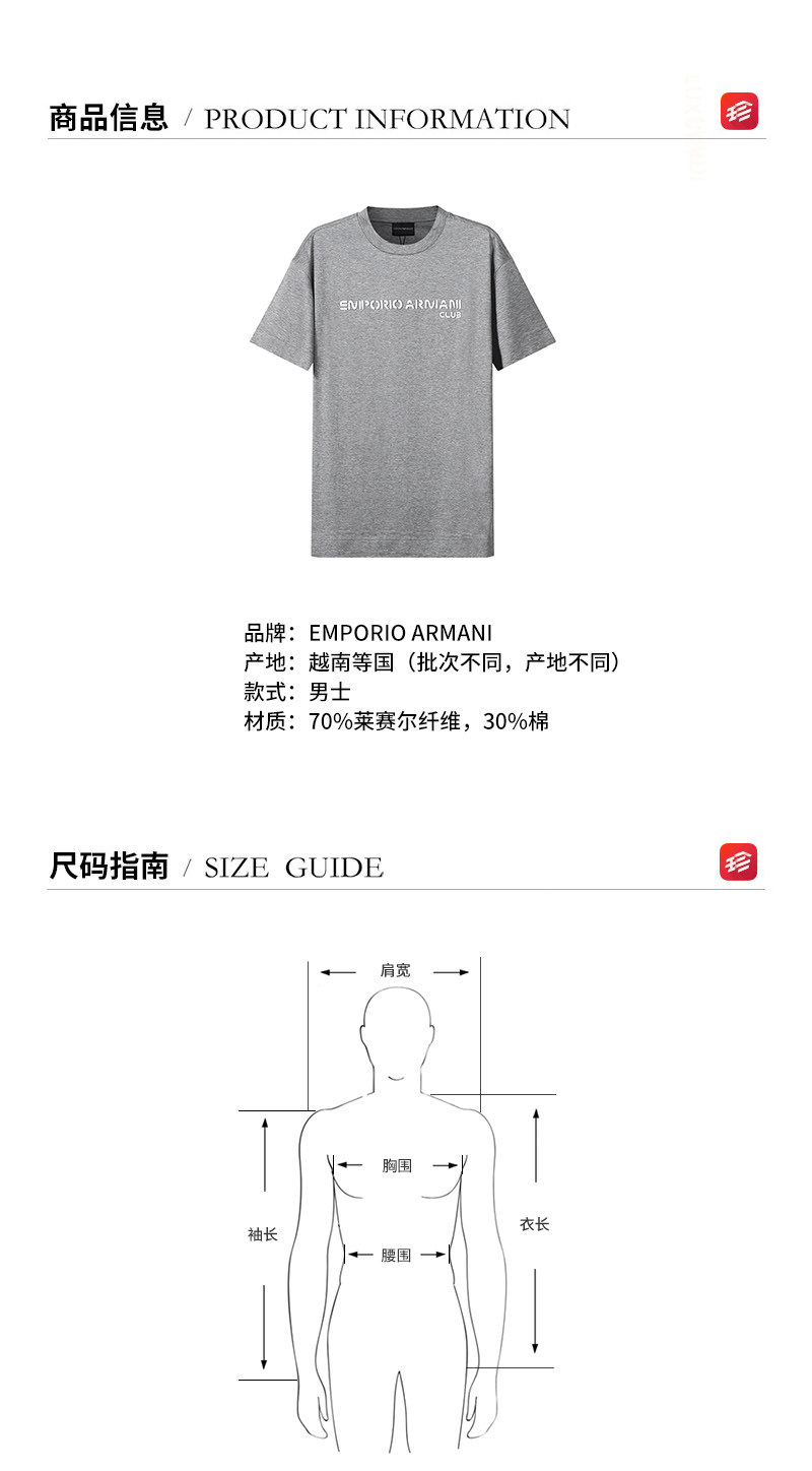 Armani EA Men's Lyocell Fiber Crew Neck Short Sleeve T-Shirt 3L1TCE 1JUVZ