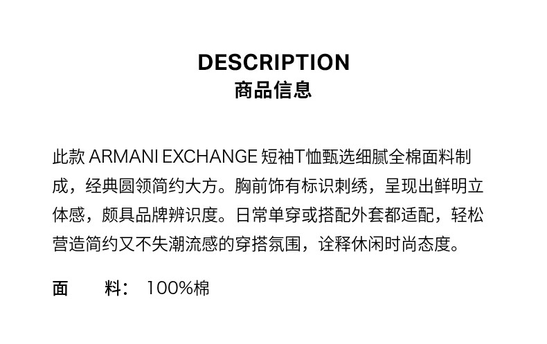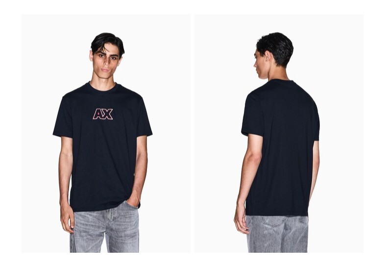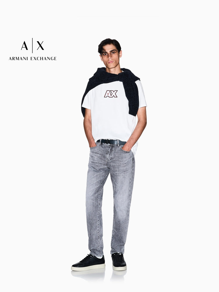 ARMANI EXCHANGE / Armani Qış Yeni Kişilər üçün Təmiz Pambıqdan Yaxalıqlı Qısa Qollu Naxışlı Futbolka Rəsmi