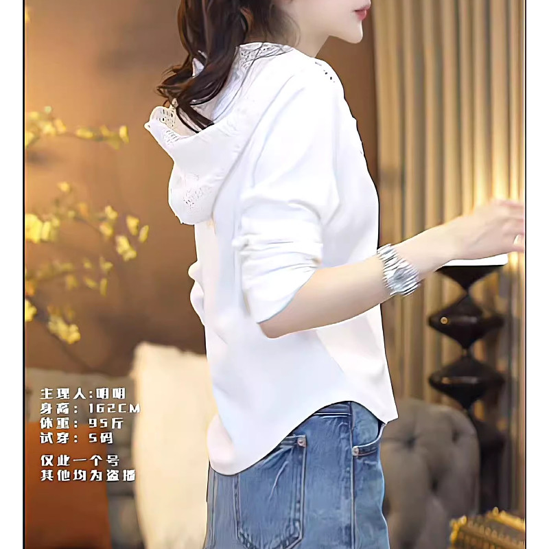 Artıq bədən quruluşuna malik qadınlar üçün şık və şık təmiz pambıq krujeva kapşonlu futbolka, yaz, arıqlama və gənc görünüş üçün mükəmməldir, əsas üst qat.