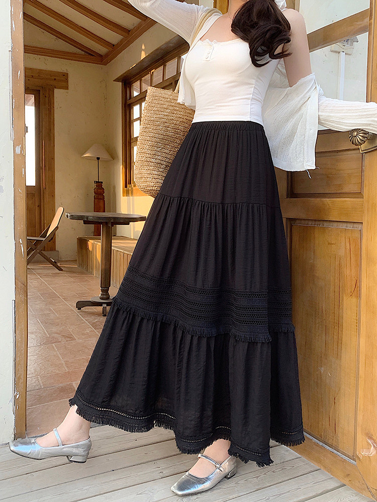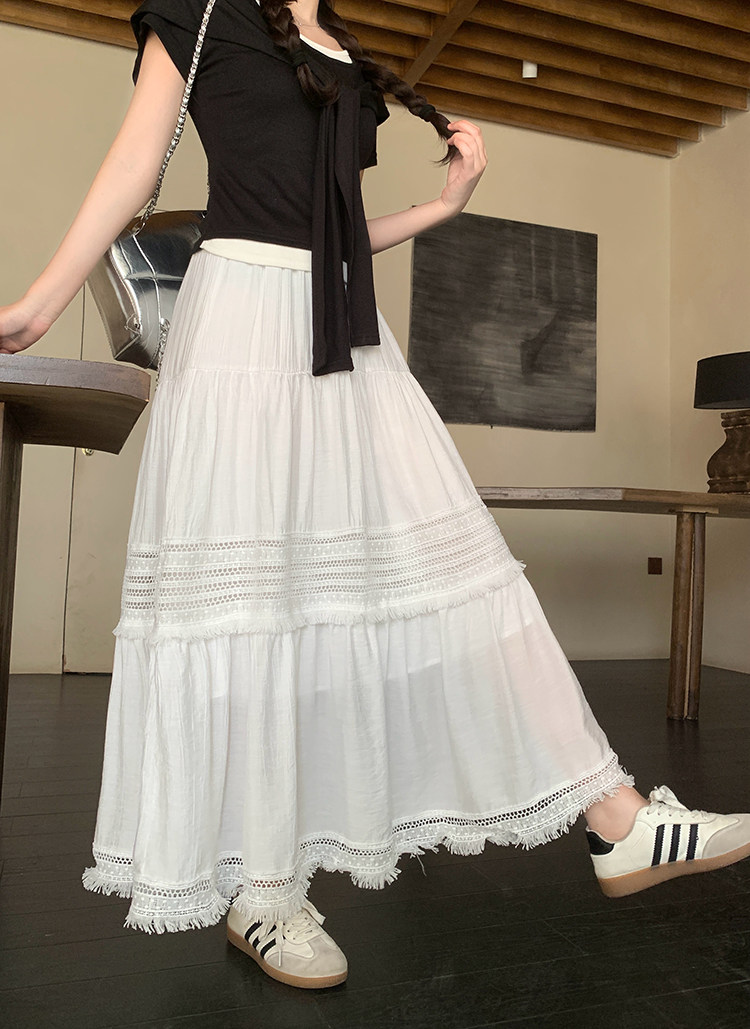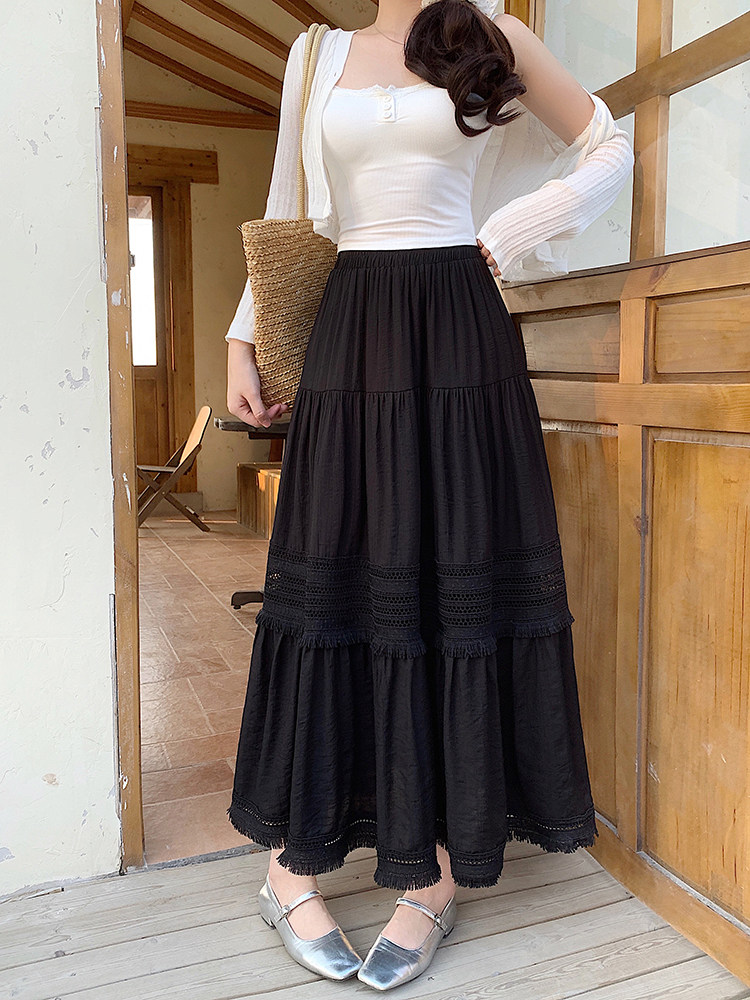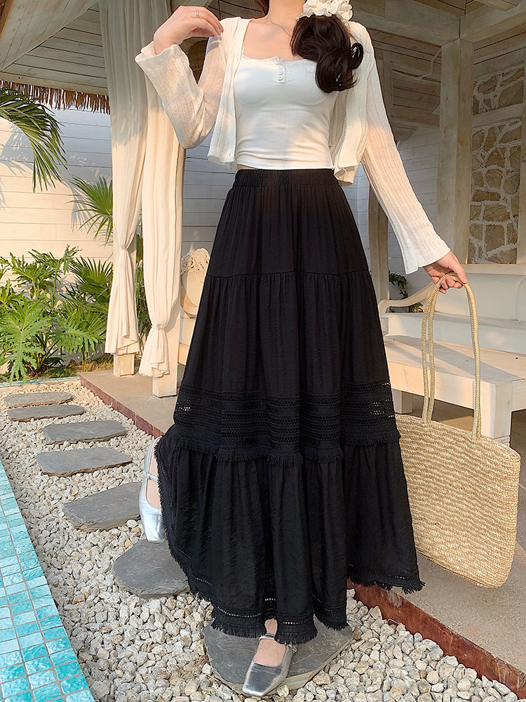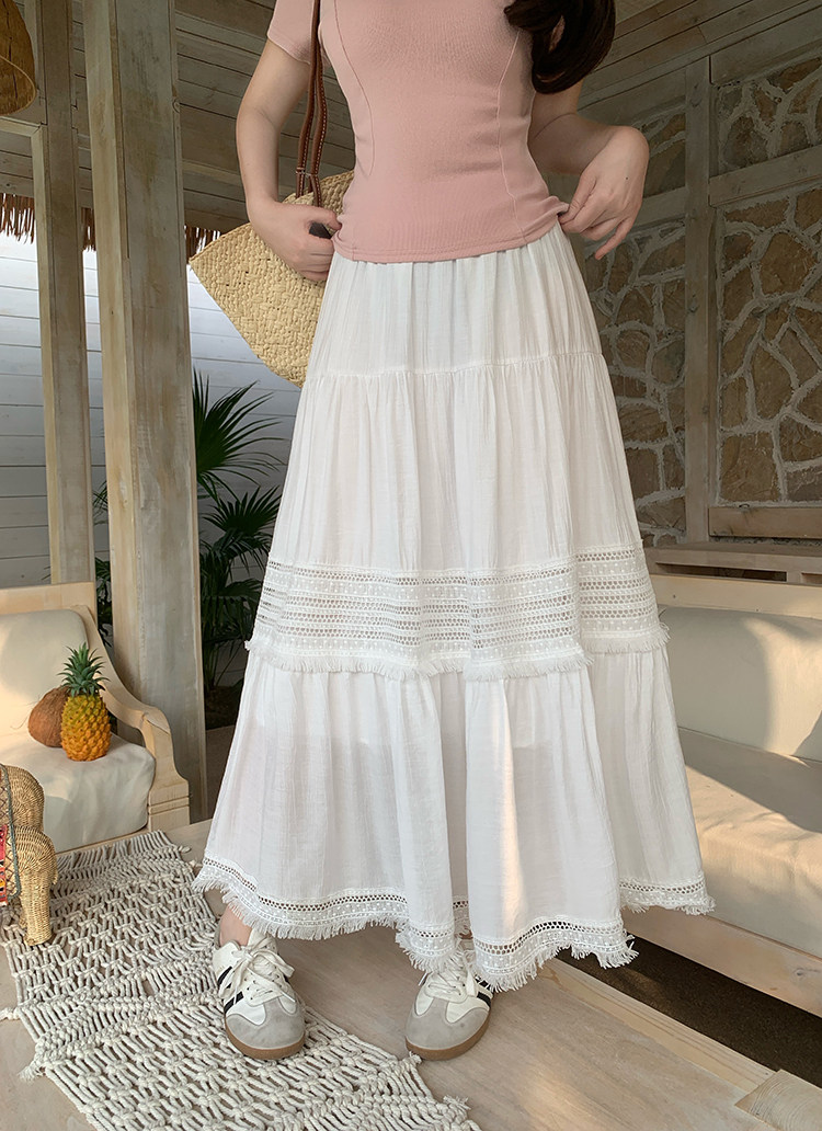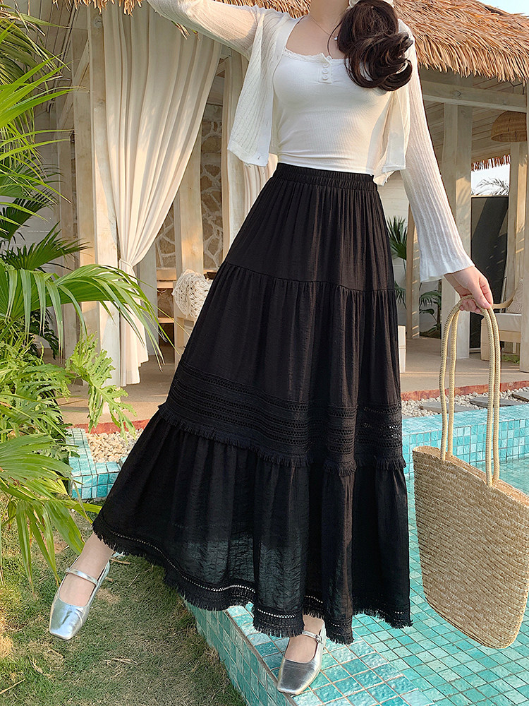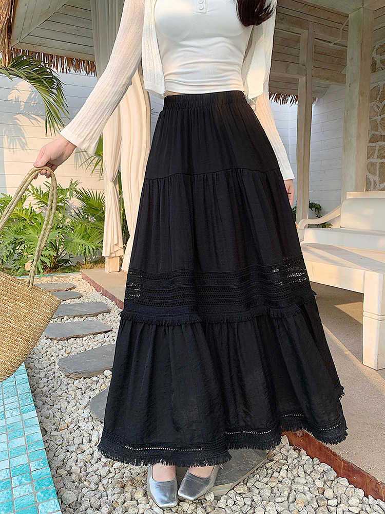 Artıq ölçülü qadınlar üçün yüksək belli, püsküllü A-xəttli ətək, yeni yay stili, artıq ölçülü qadınlar üçün gözəl və arıqladıcıdır.