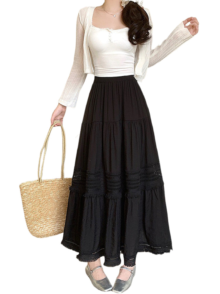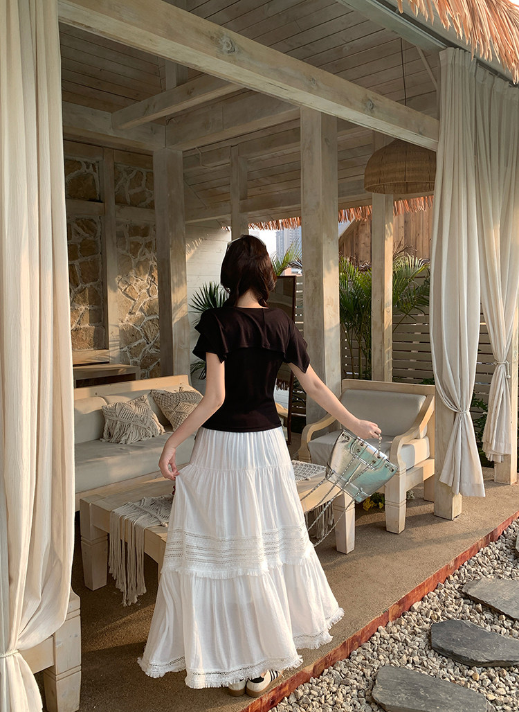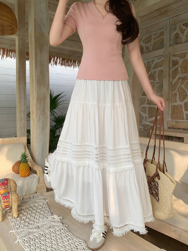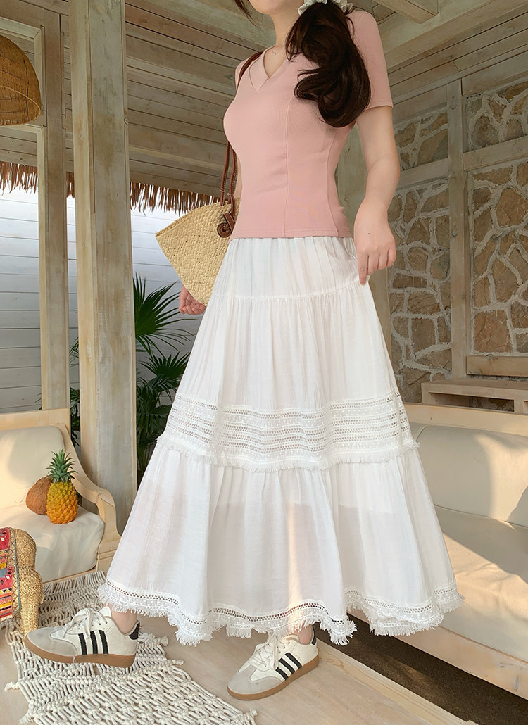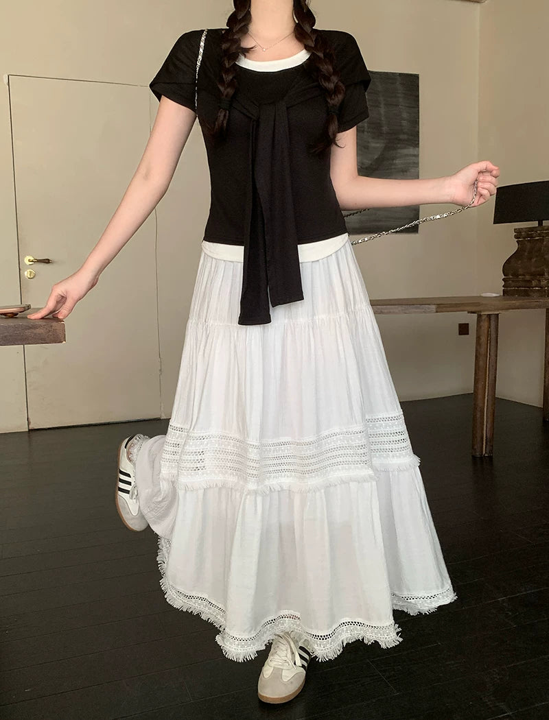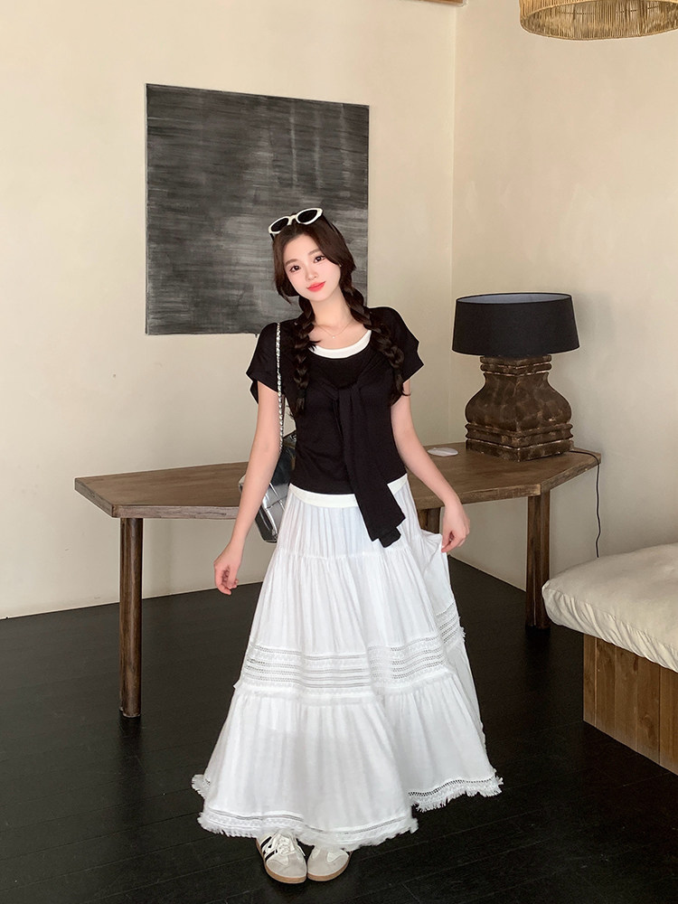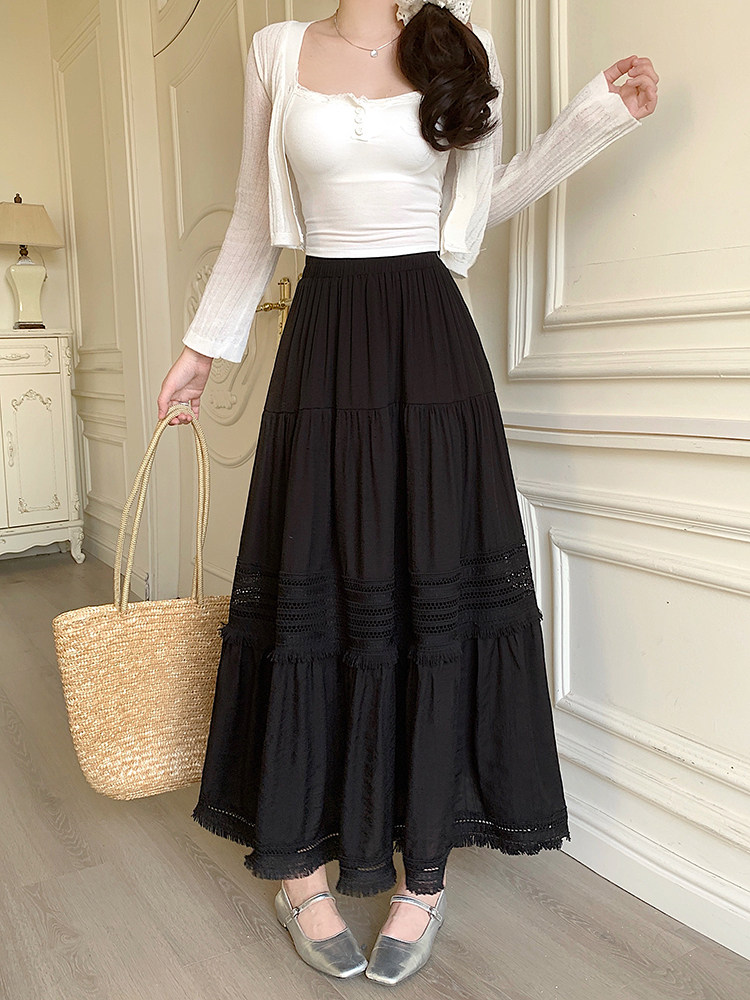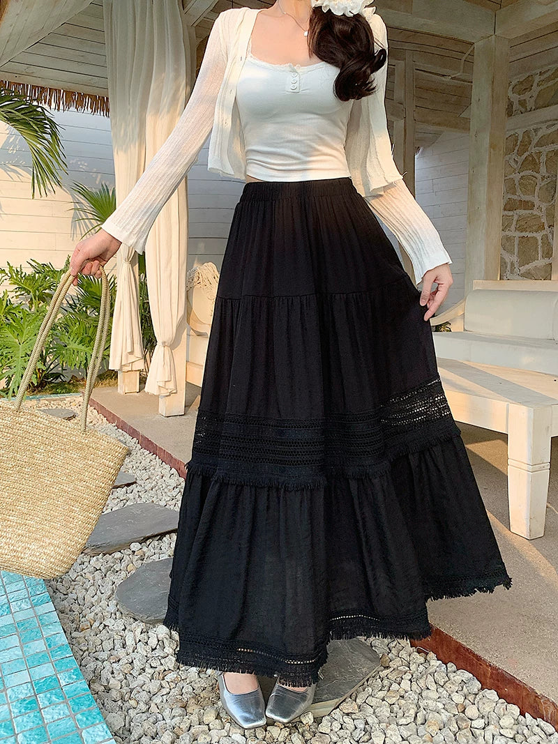 Artıq ölçülü qadınlar üçün yüksək belli, püsküllü A-xəttli ətək, yeni yay stili, artıq ölçülü qadınlar üçün gözəl və arıqladıcıdır.