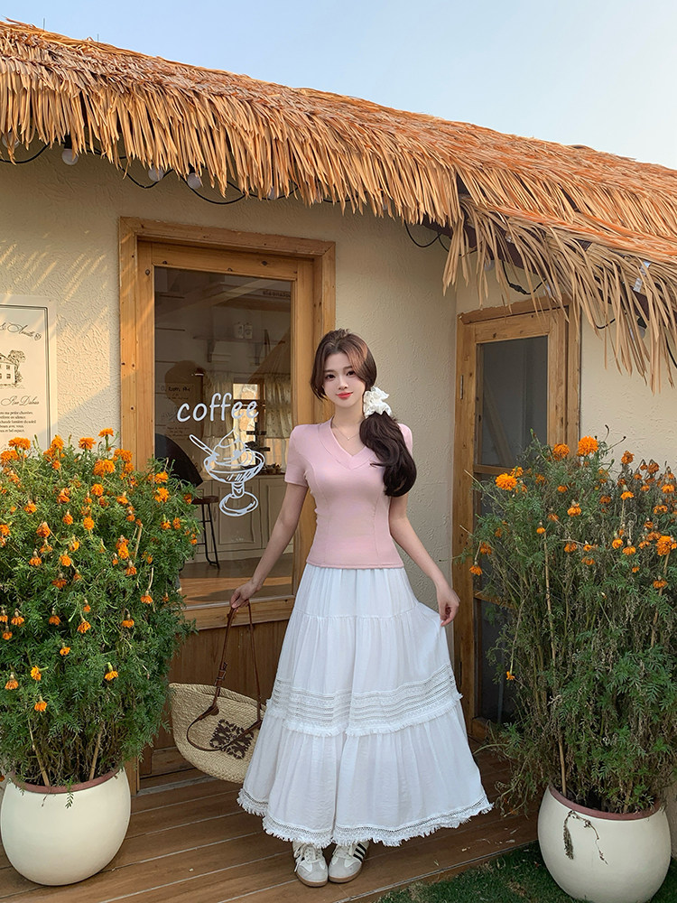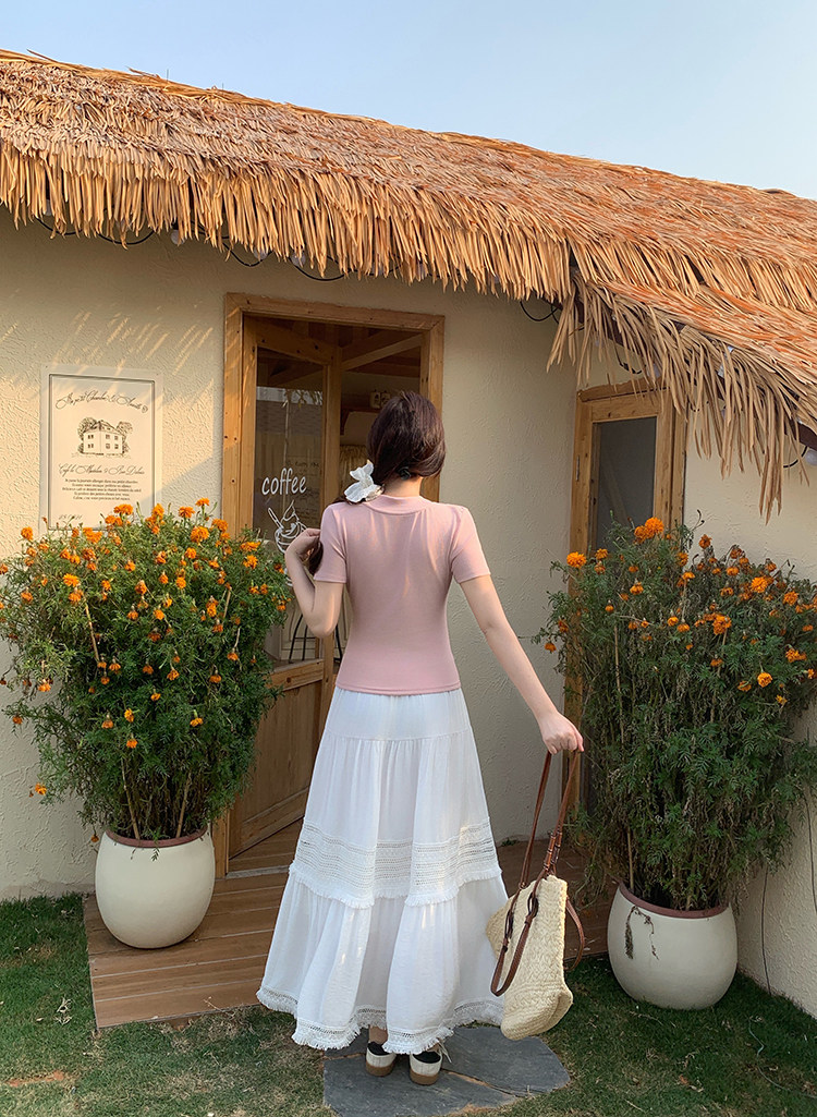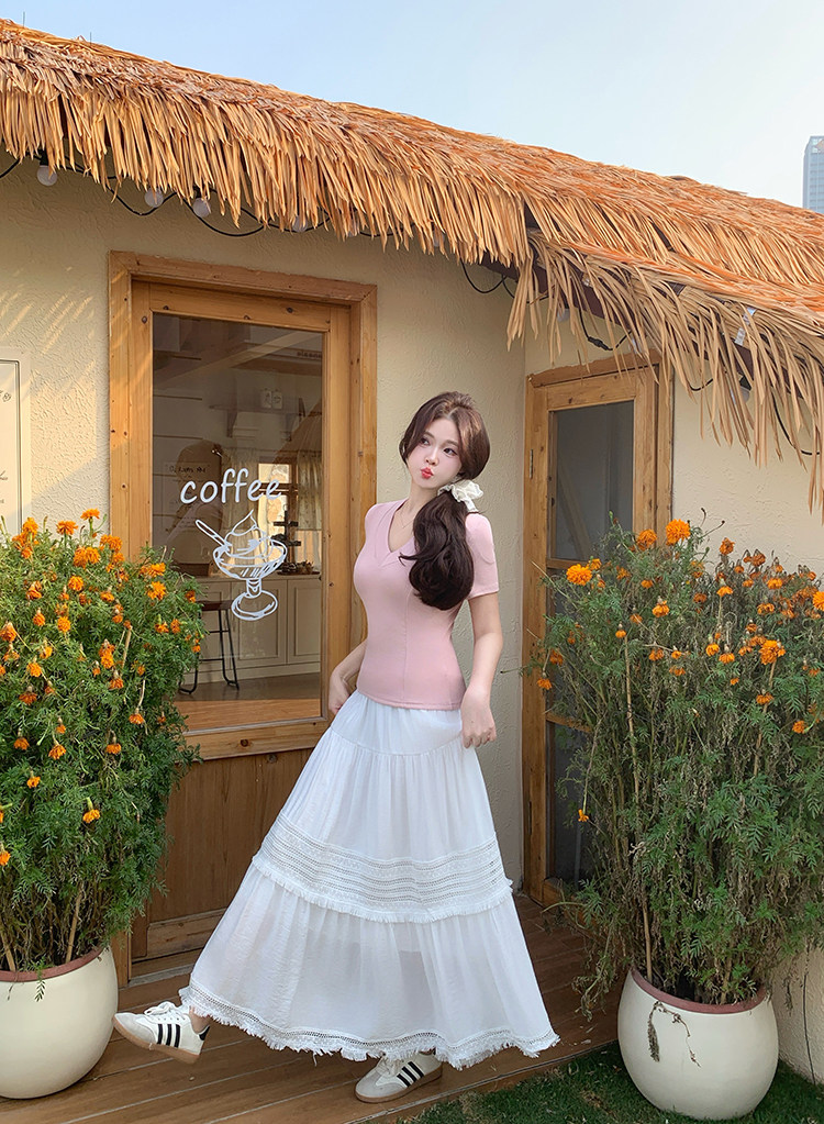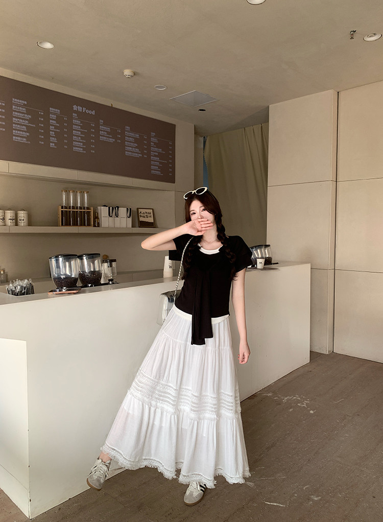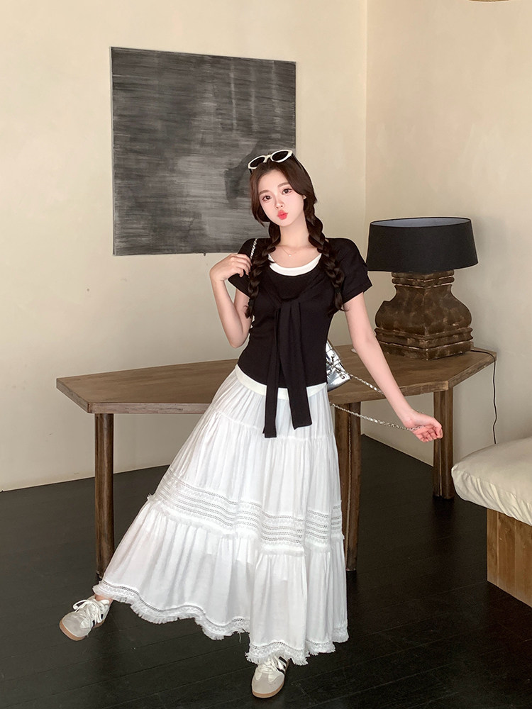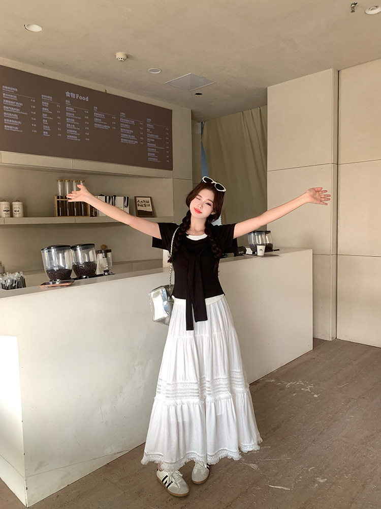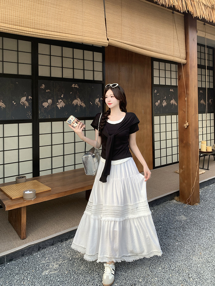 Artıq ölçülü qadınlar üçün yüksək belli, püsküllü A-xəttli ətək, yeni yay stili, artıq ölçülü qadınlar üçün gözəl və arıqladıcıdır.