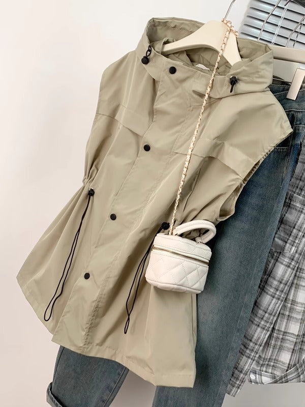 Avropa üslubunda qadın başlıqlı iş geyimi jileti, yeni stil, böyük ölçü, şık dizayn, incə bel, jilet top.