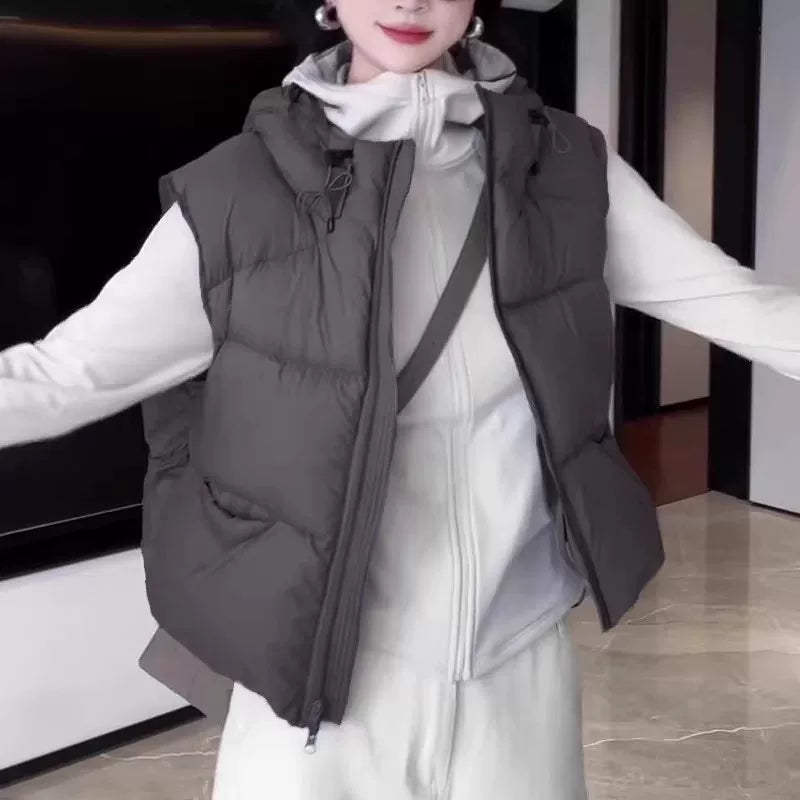 Avropa üslubunda qadınlar üçün qısa pambıq jilet, 2026-cı ilin payız və qış yeni model, böyük ölçü, üst geyim jileti, çiyin çantası, gödəkçə.