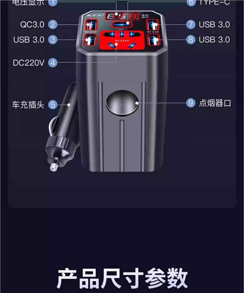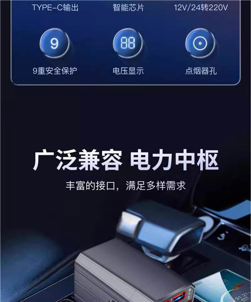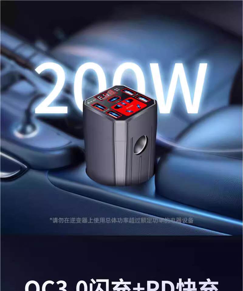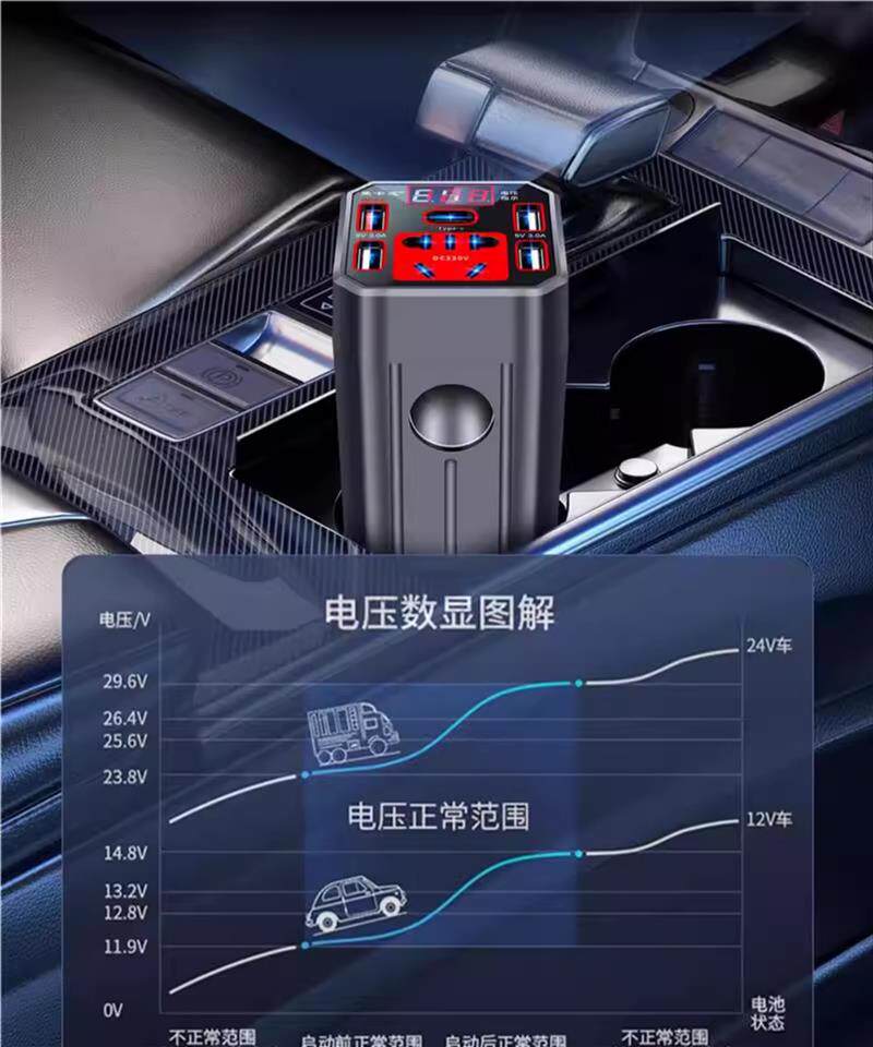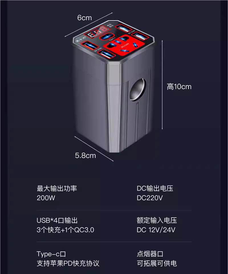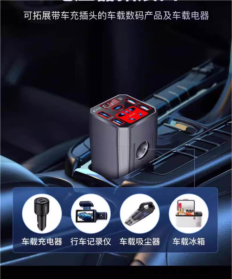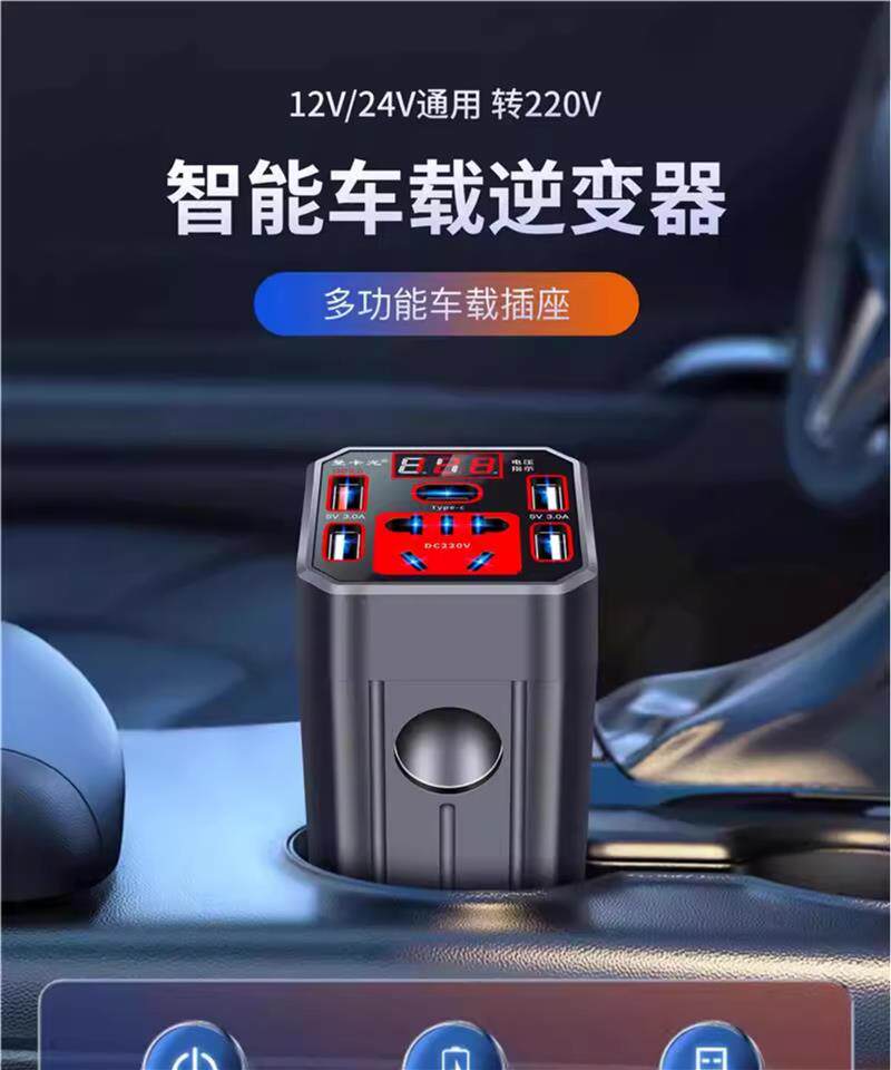 Car inverter 12V/24V universal to 220V car power converter, truck multi-purpose mobile phone charging socket