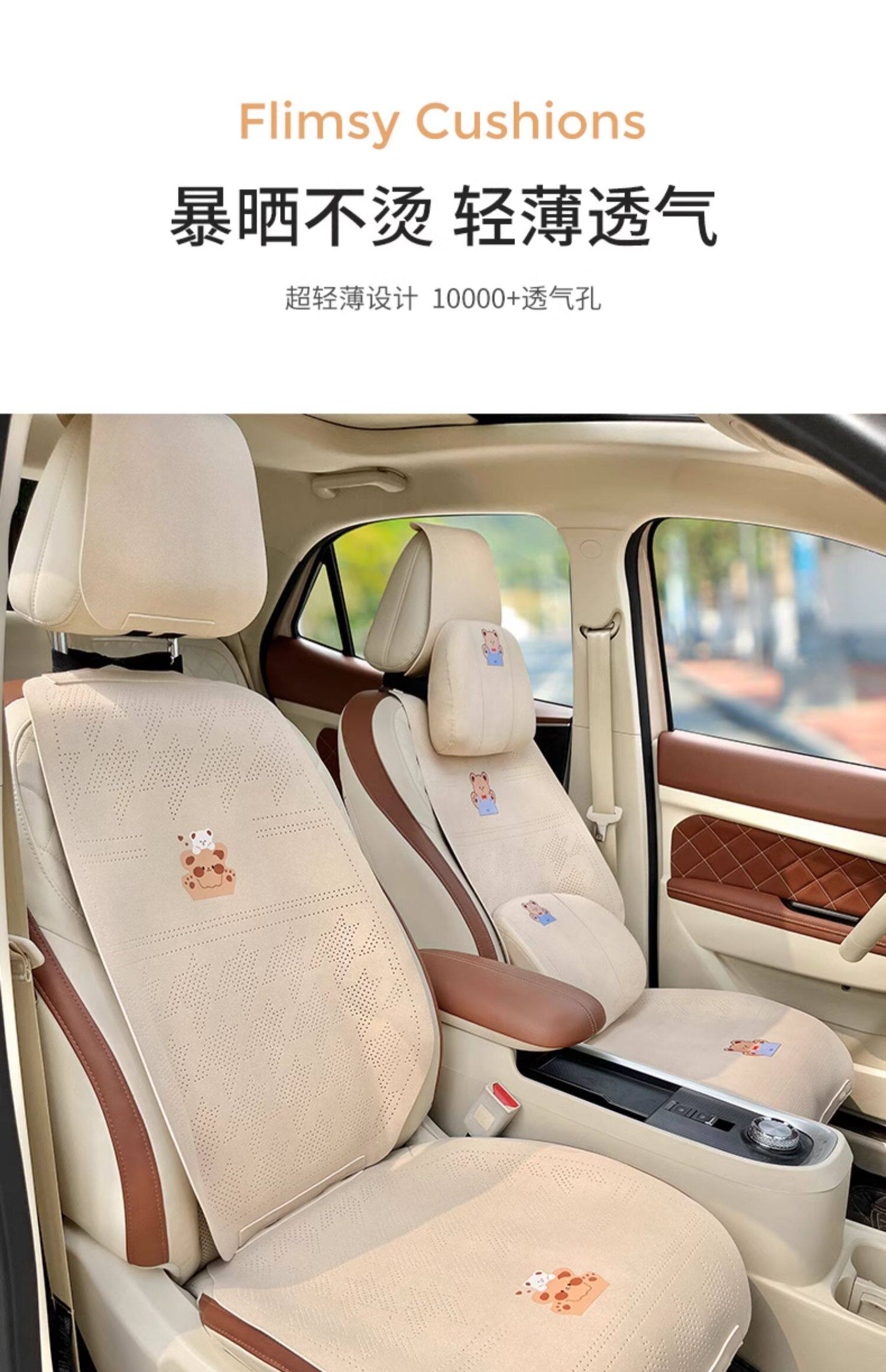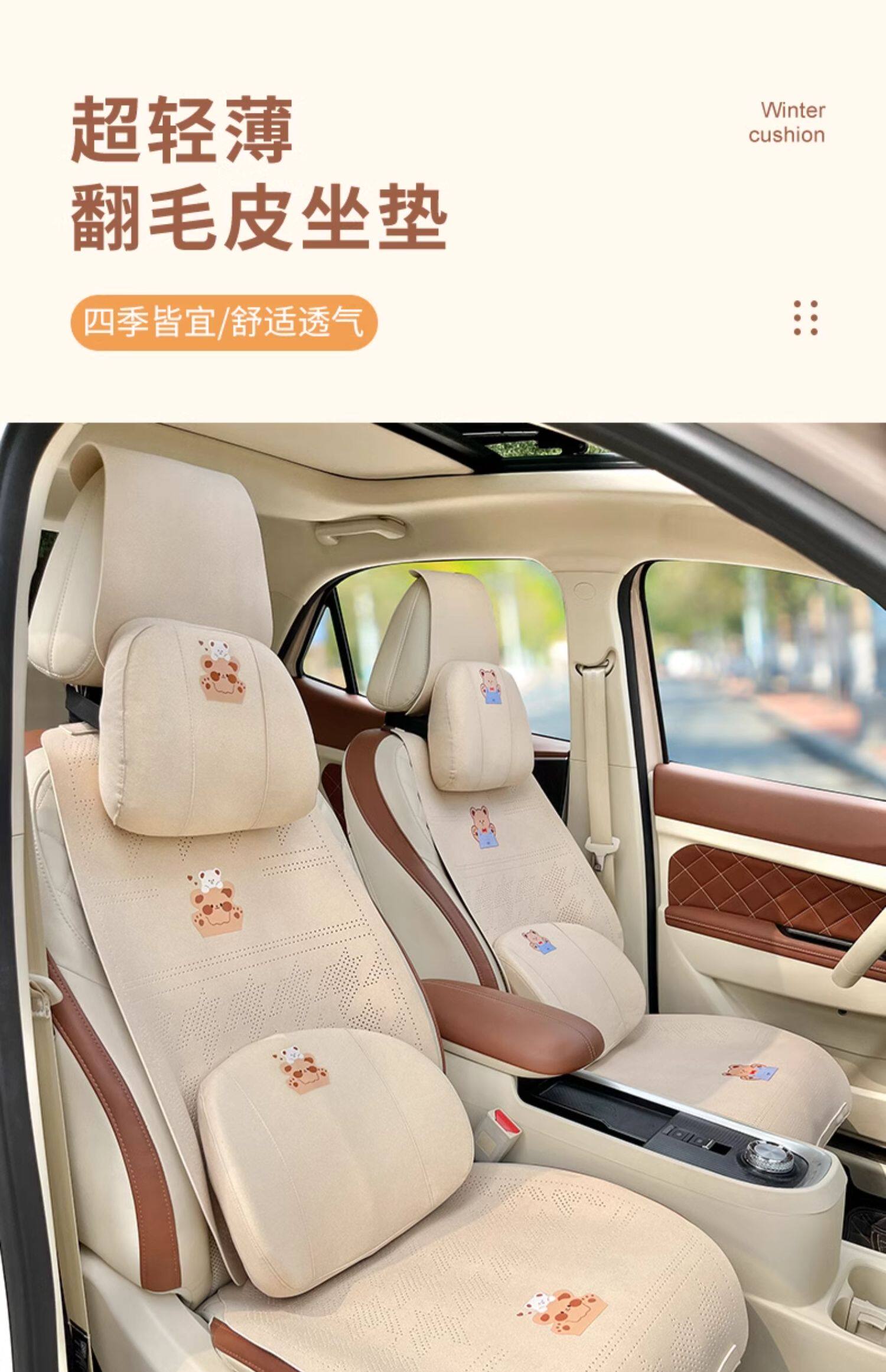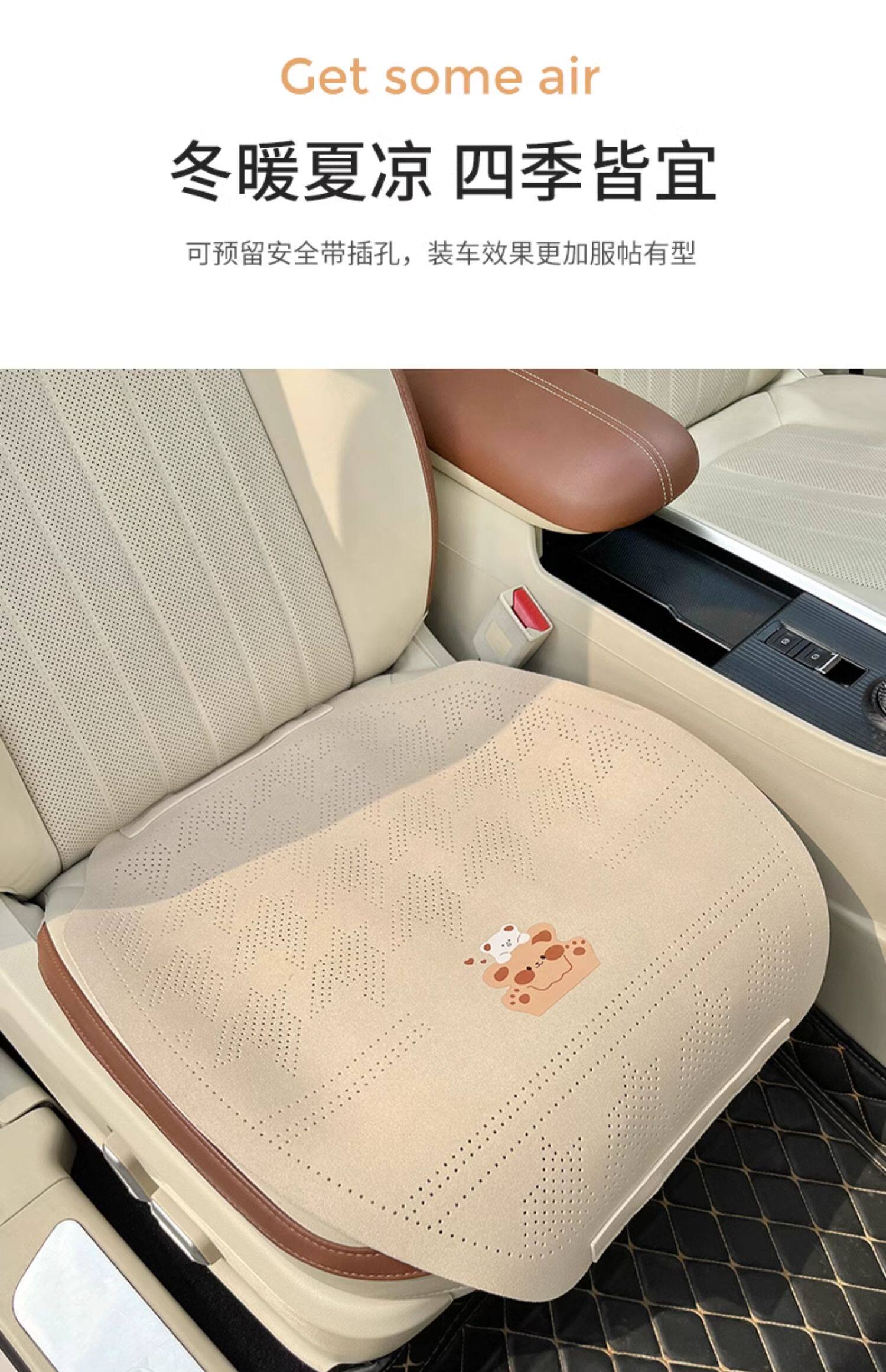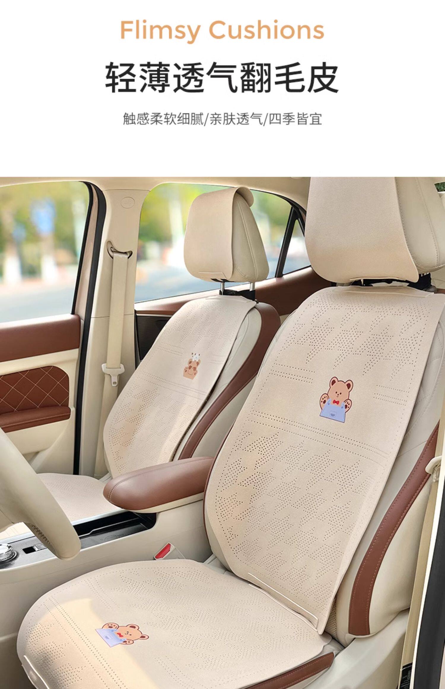 Car seat cushion, summer suede seat cover, universal, all-season skin-friendly, breathable cushion, simple cartoon cute female seat cushion