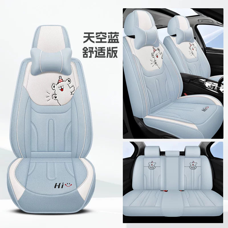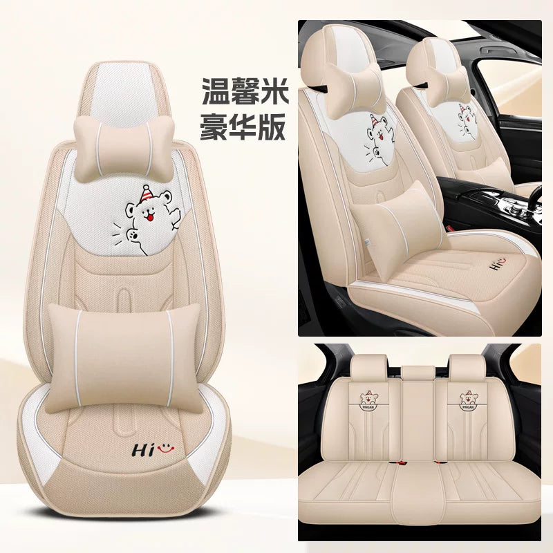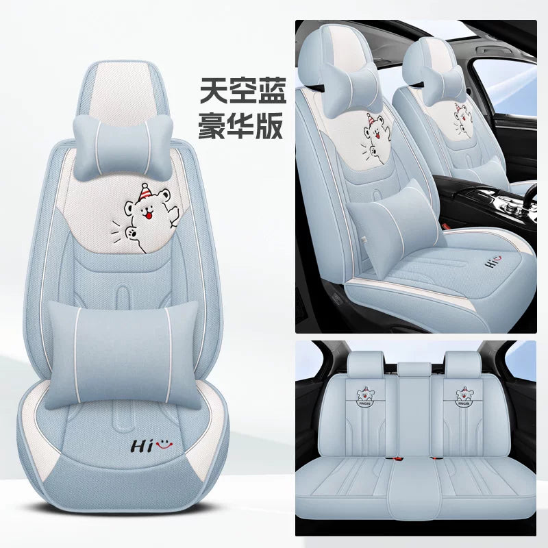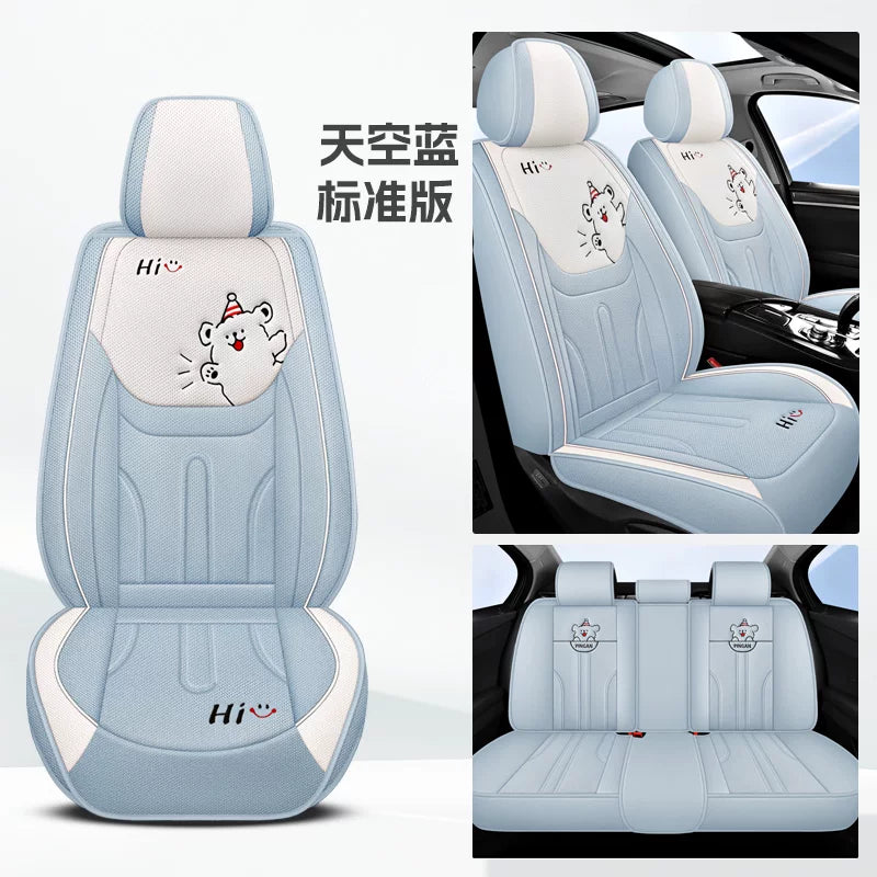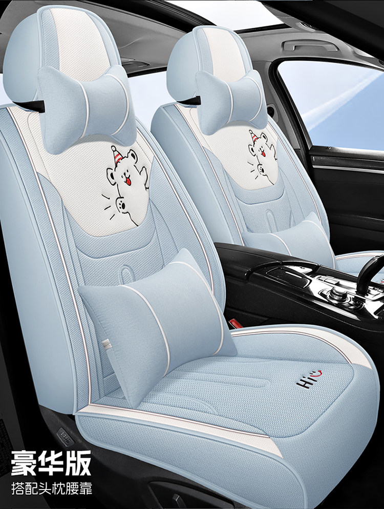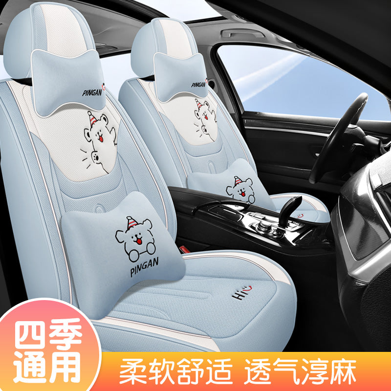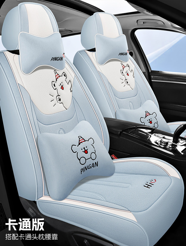 Avtomobil oturacağı yastıqları, qış kətan oturacaq üzləri, bütün mövsümlər üçün, tam örtüklü pambıq və kətan parça oturacaq yastıqları, cizgi filmi mövzulu oturacaq üzləri.
