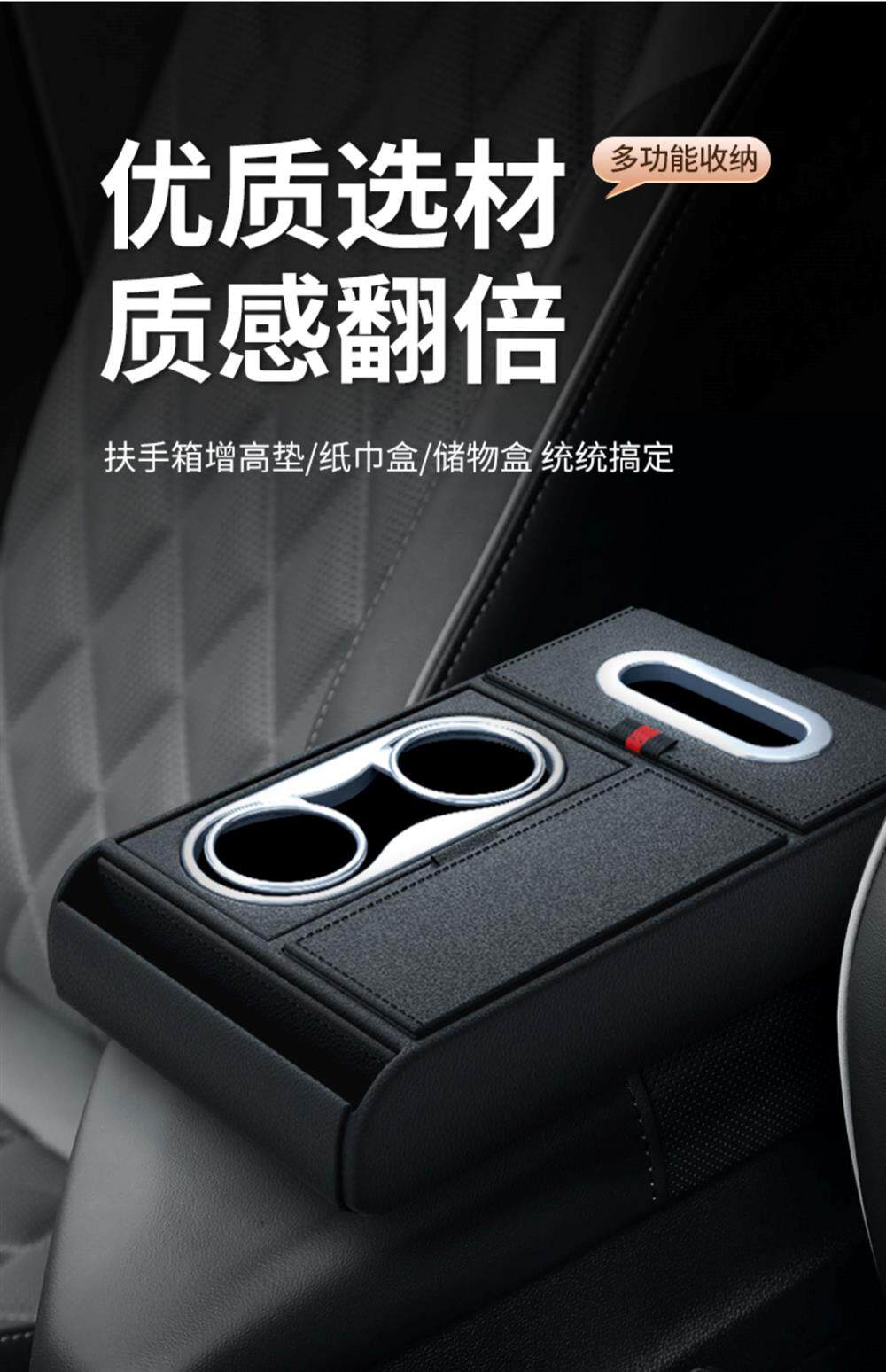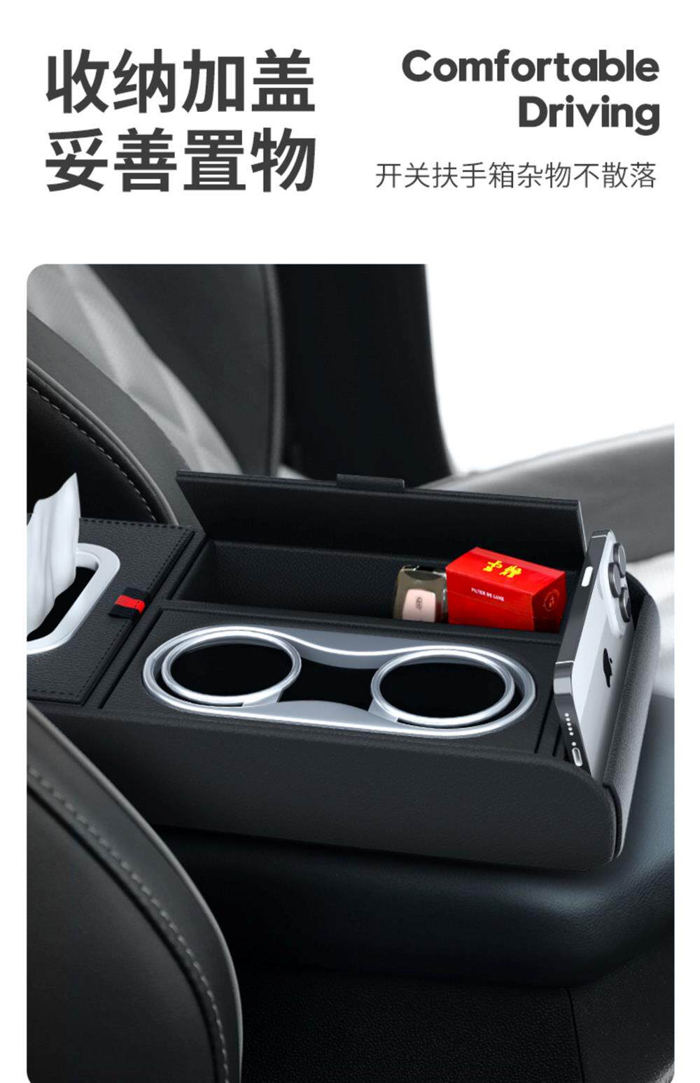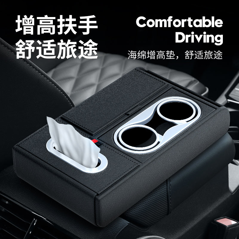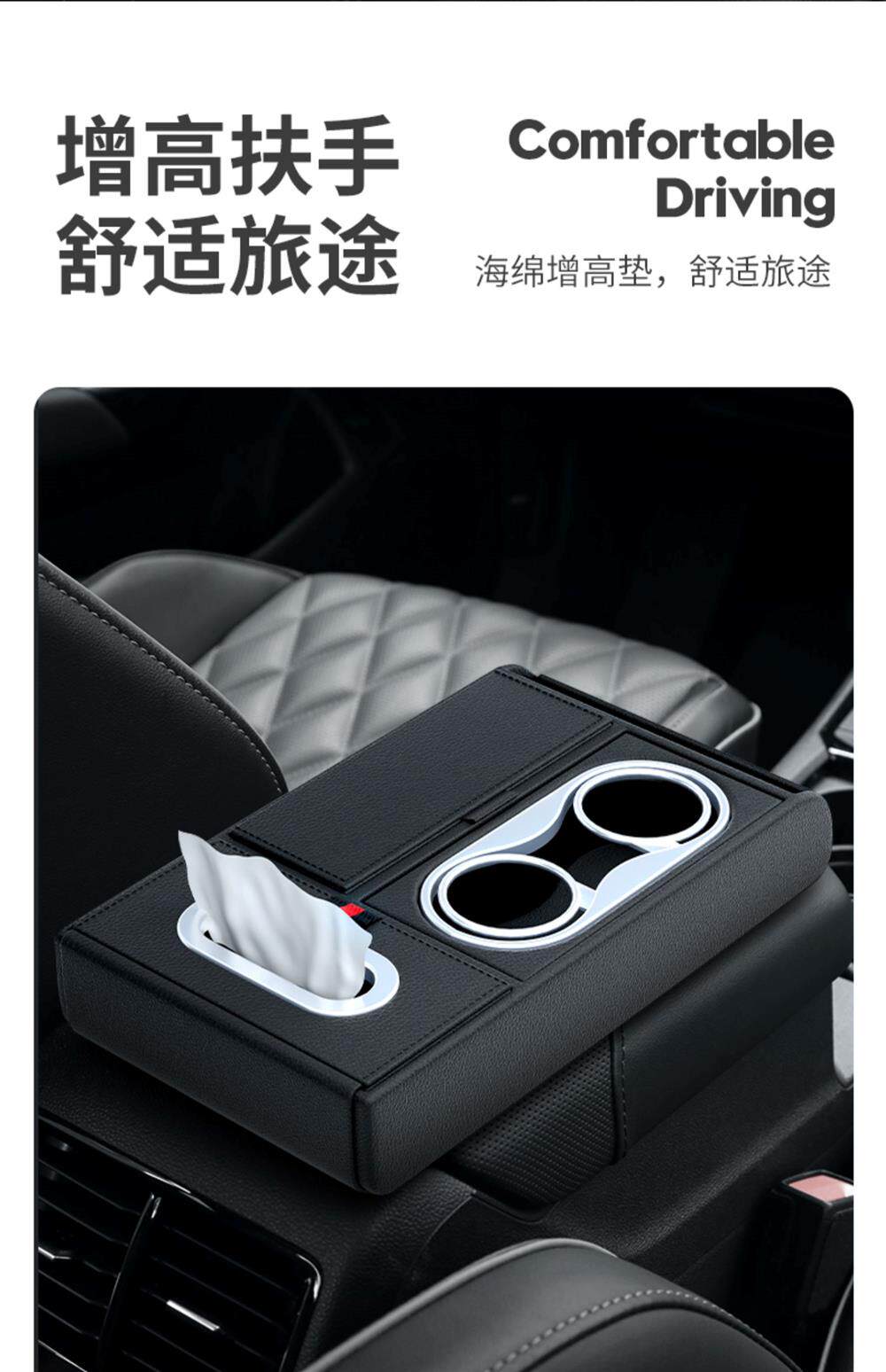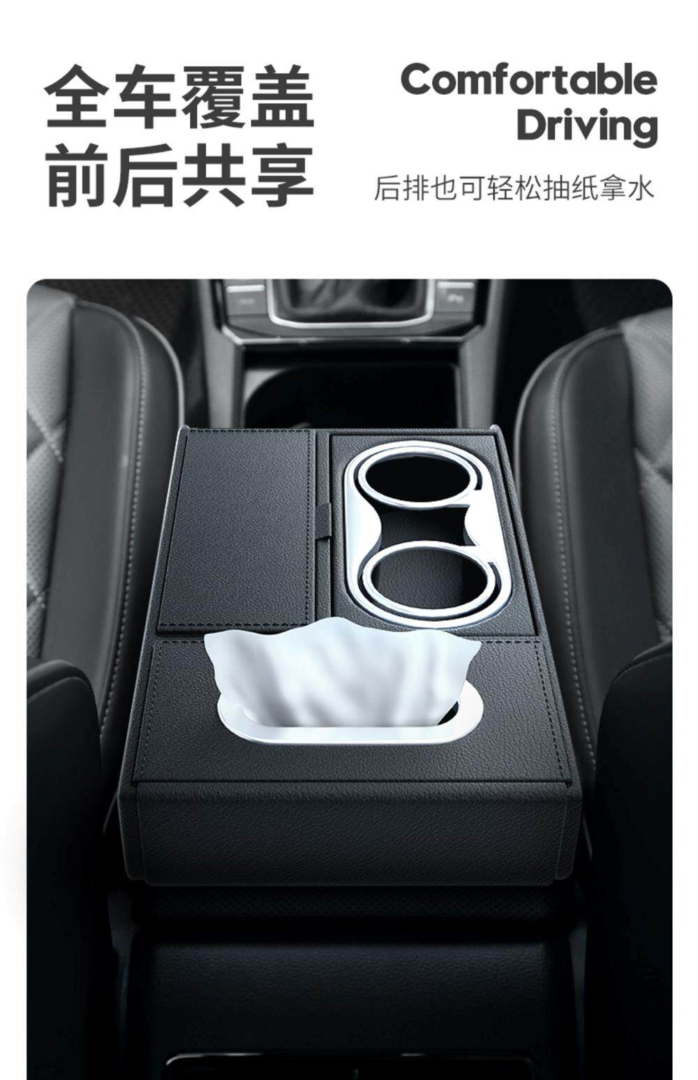 Car armrest storage box, car tissue box, double cup holder, large capacity, high-end car essentials.