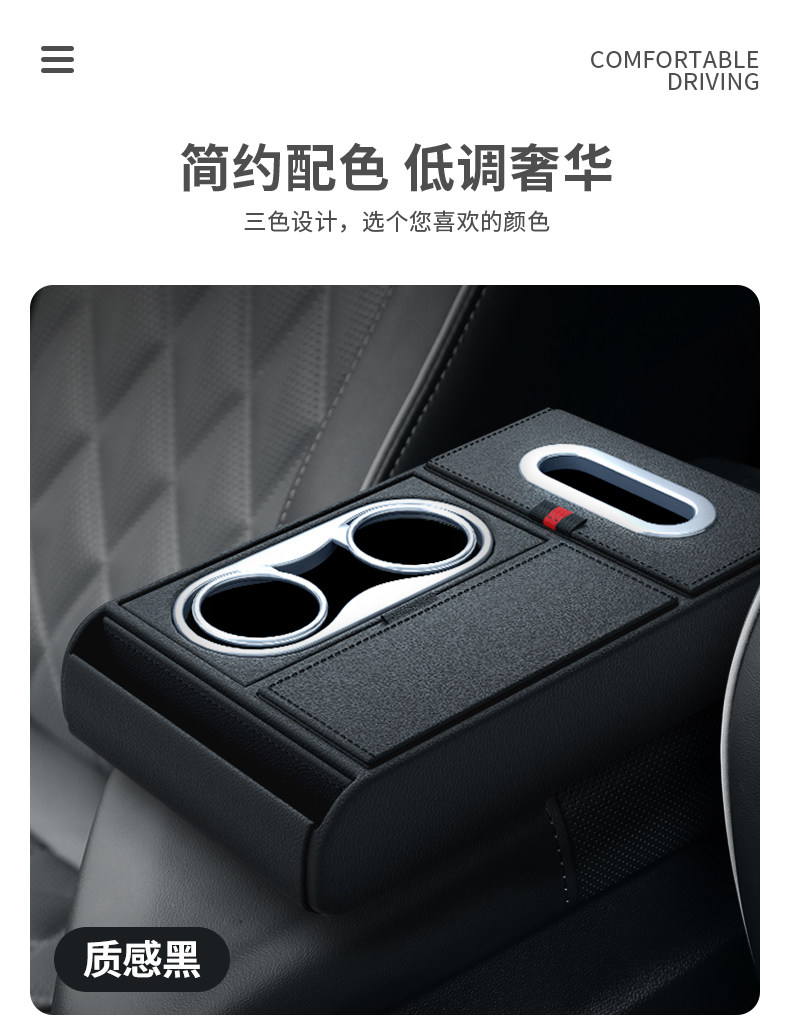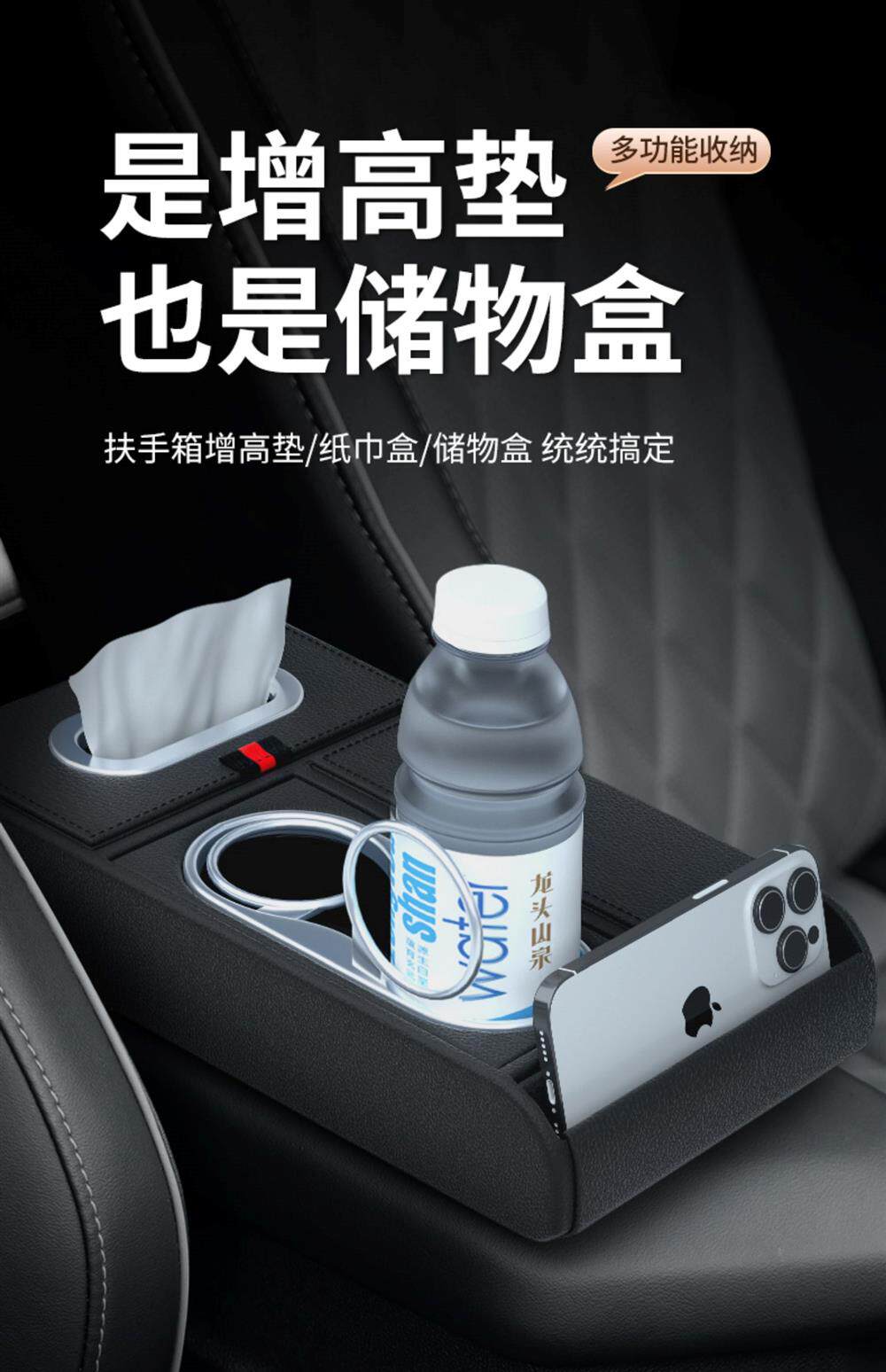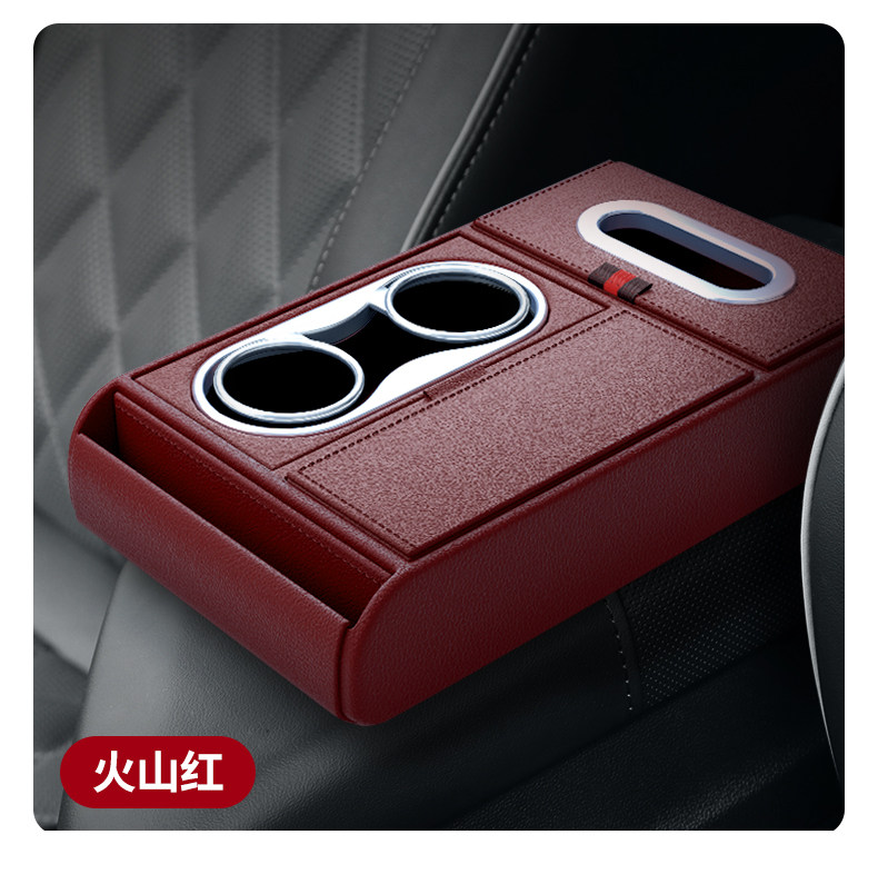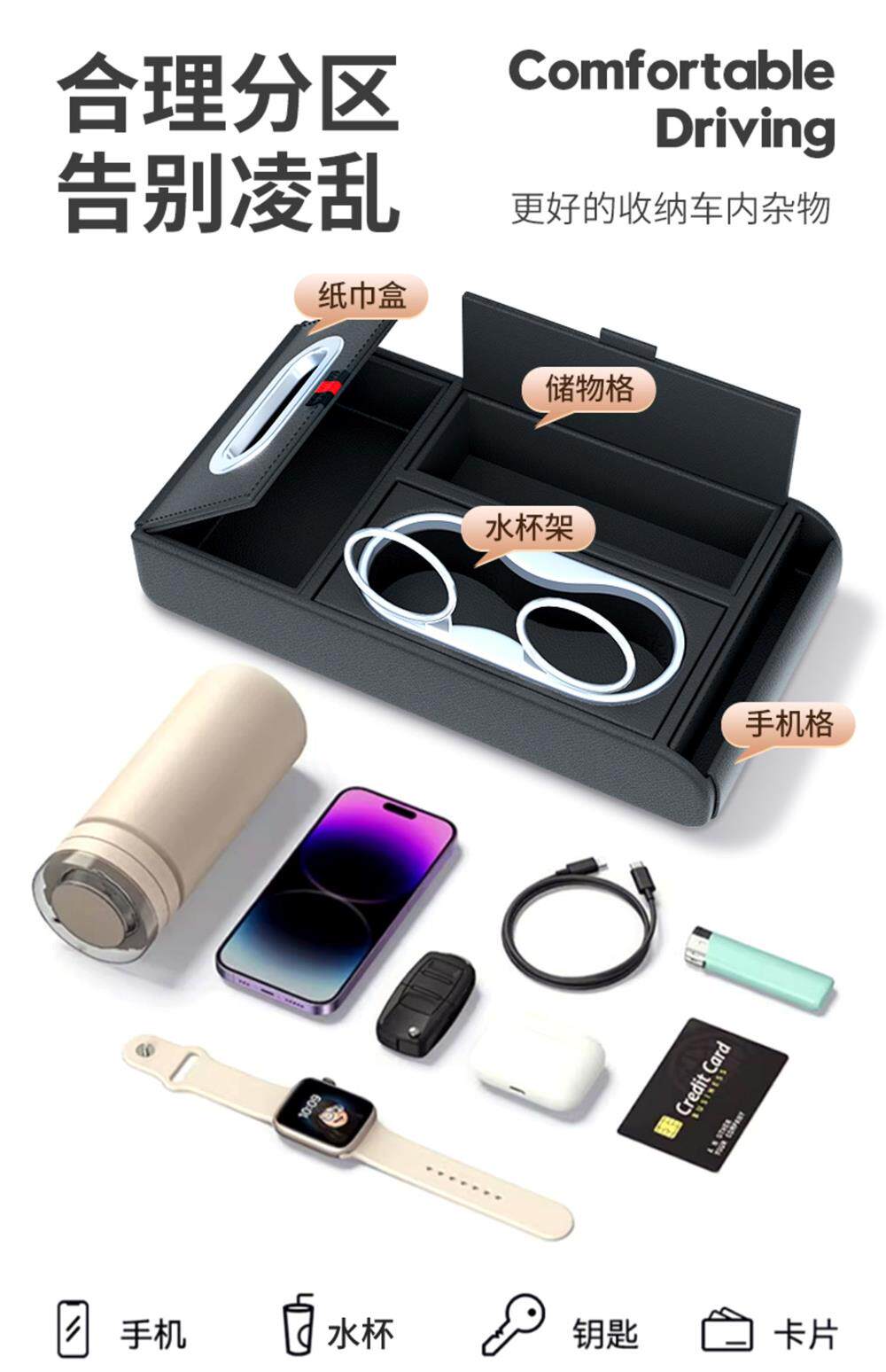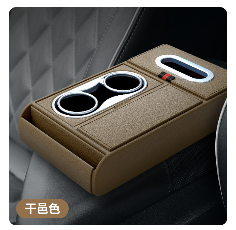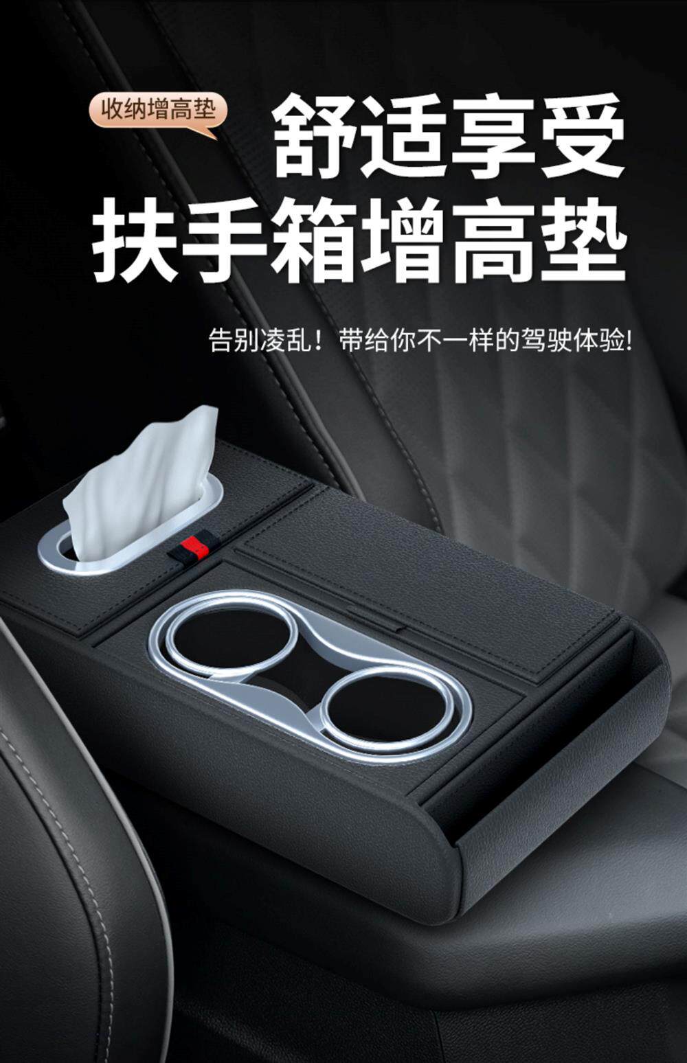 Car armrest storage box, car tissue box, double cup holder, large capacity, high-end car essentials.
