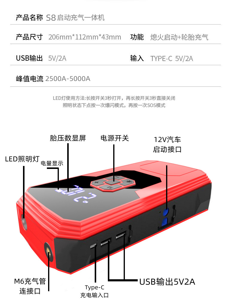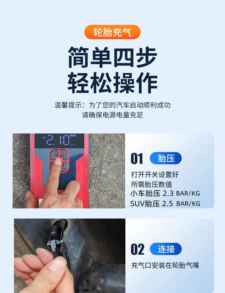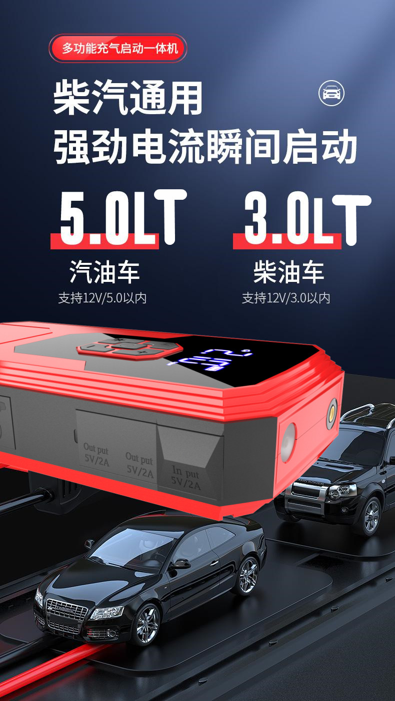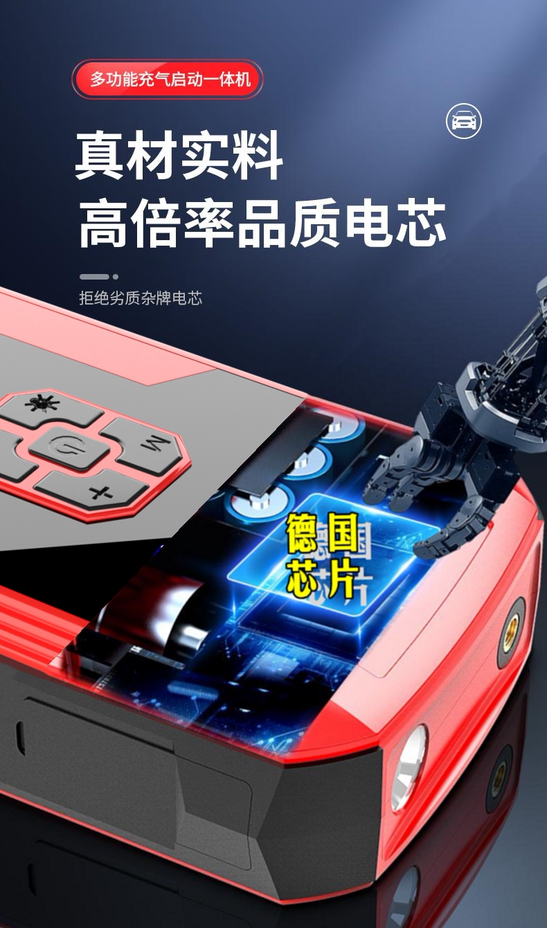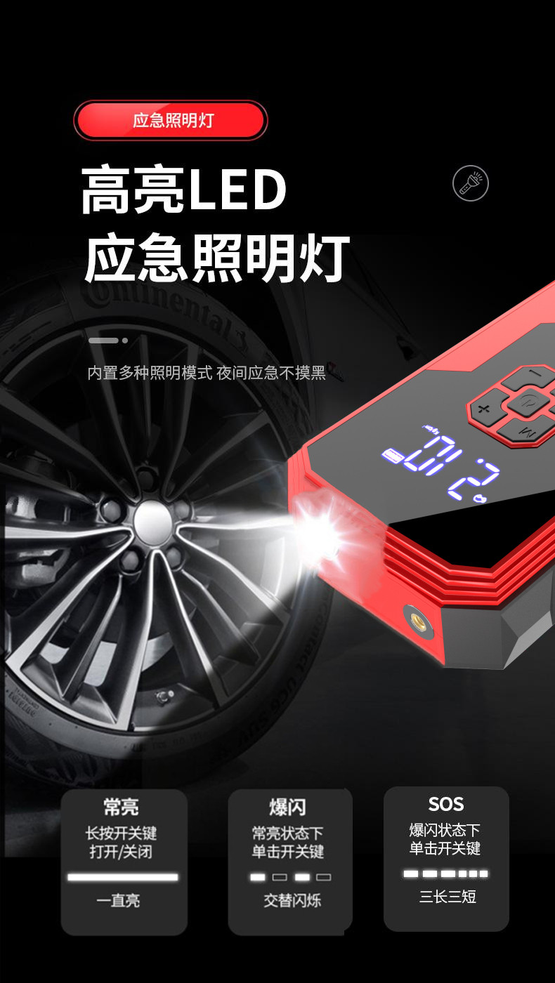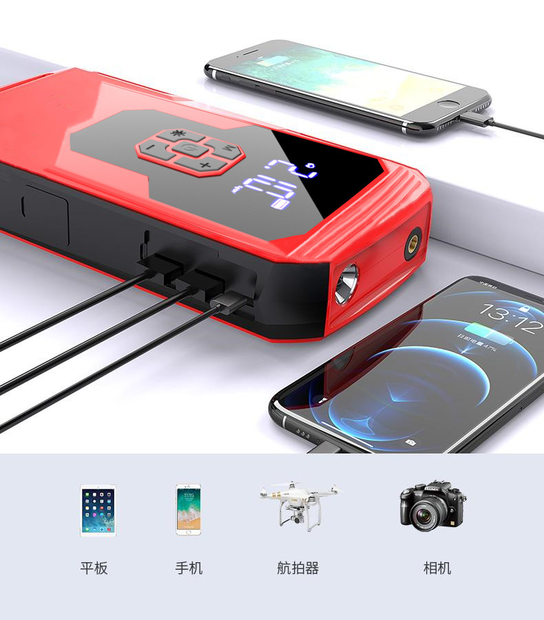 Car emergency starter, wireless air pump, high capacity powerful starter device