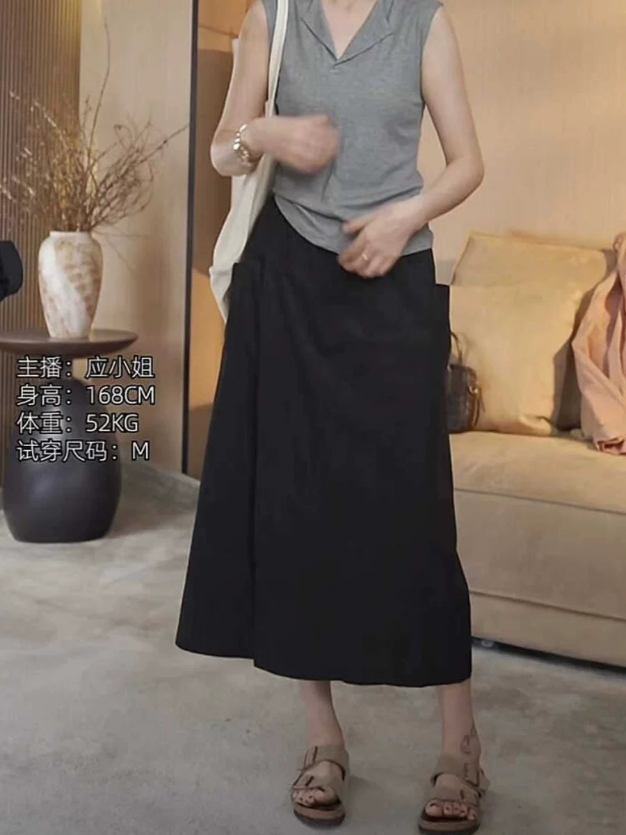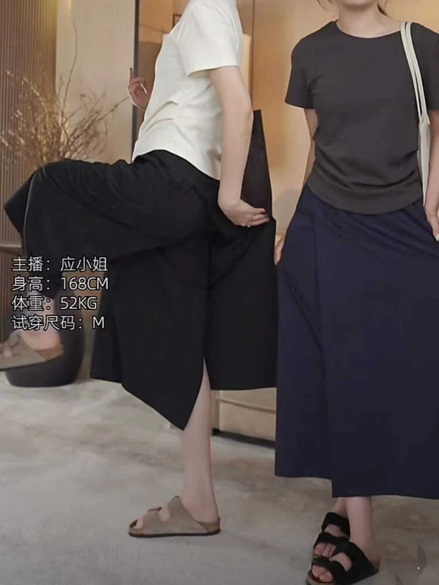 Bir az dolğun qızlar üçün böyük ölçülü yay geyimləri, geniş, düz ayaqlı şalvar/ətək, yüksək belli A-xəttli gündəlik ətək/şalvar
