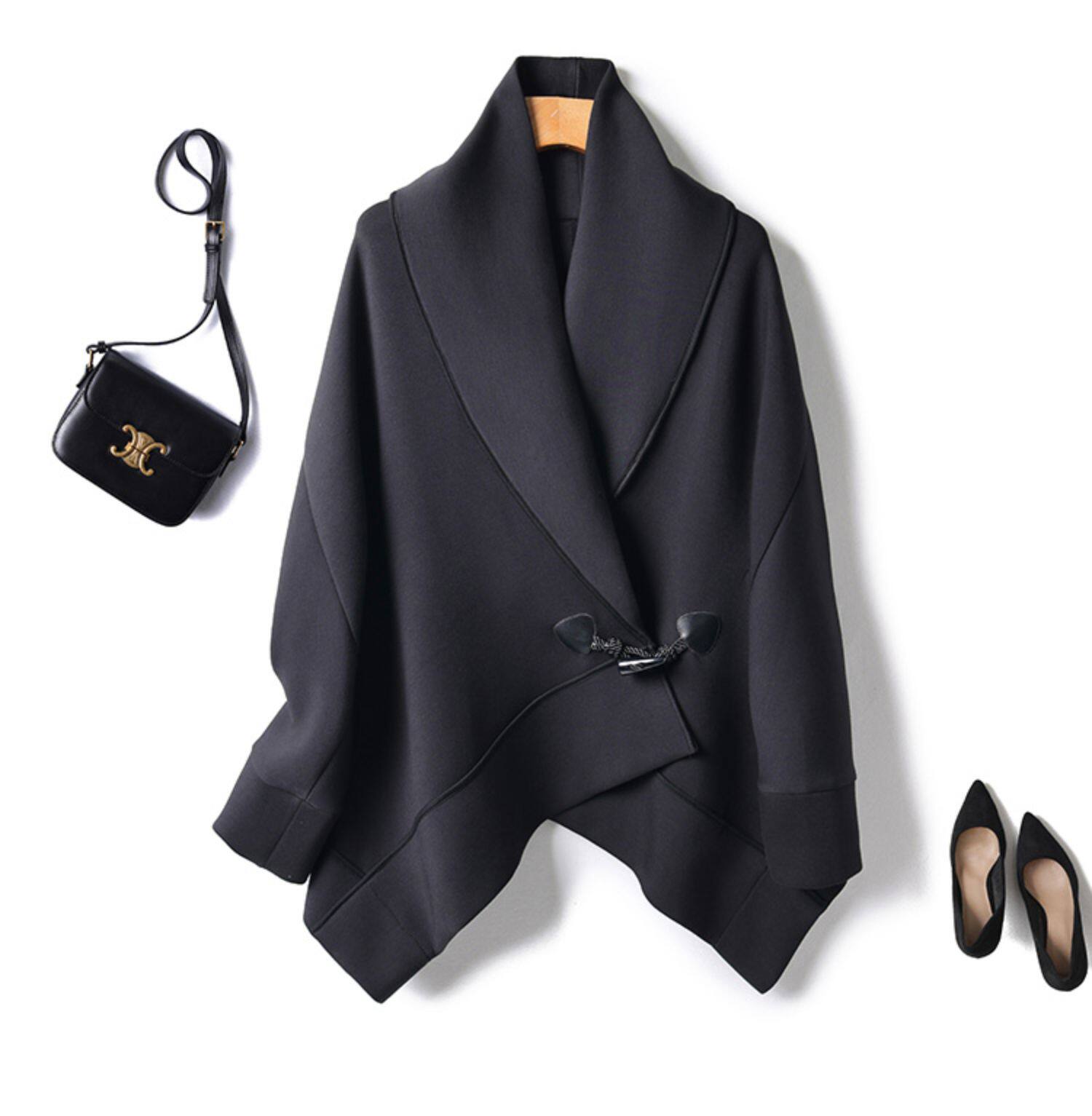 Loose fit, slimming, collared, batwing, long sleeve, duffle coat, cotton cardigan top, trench coat, short jacket, fashionable autumn new women's clothing