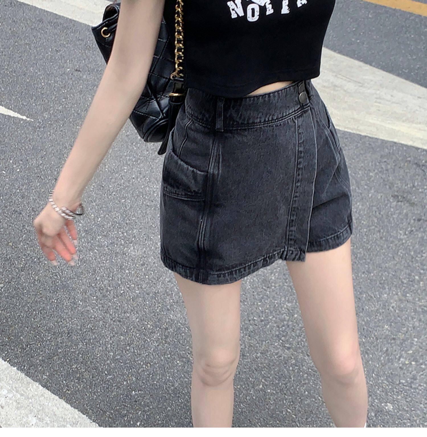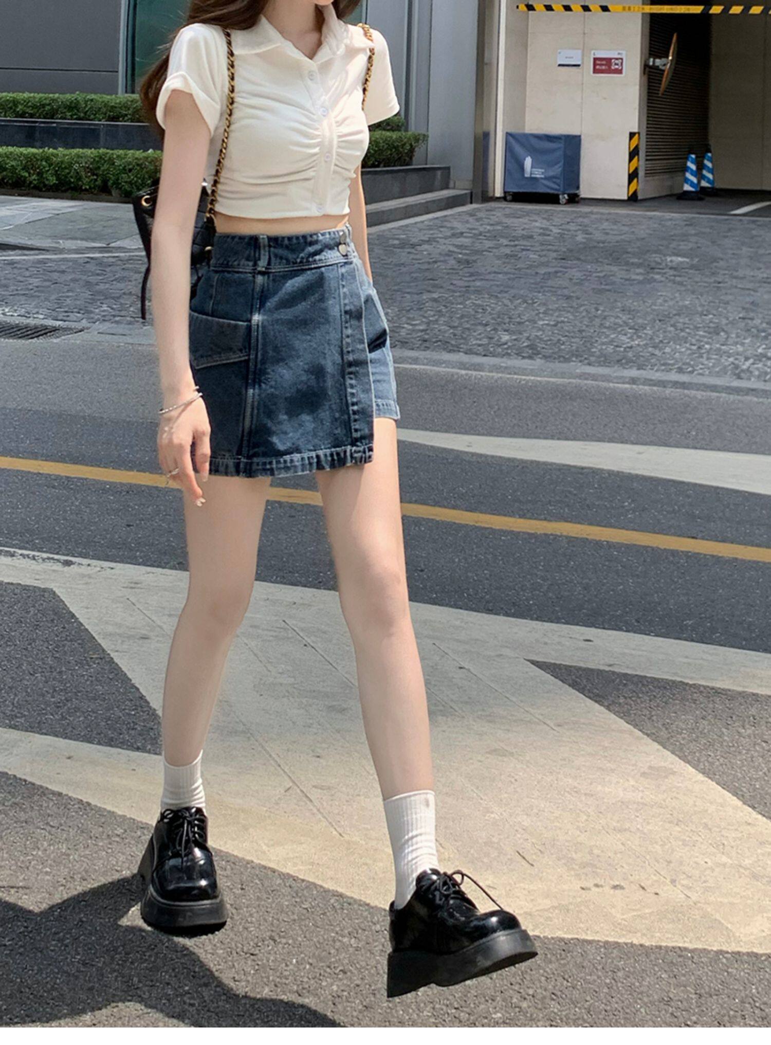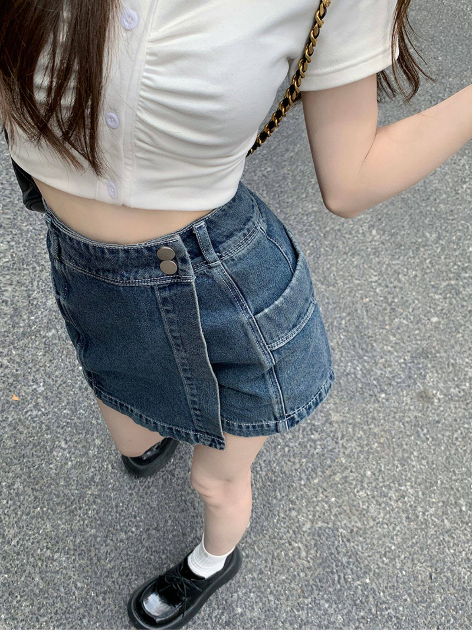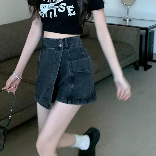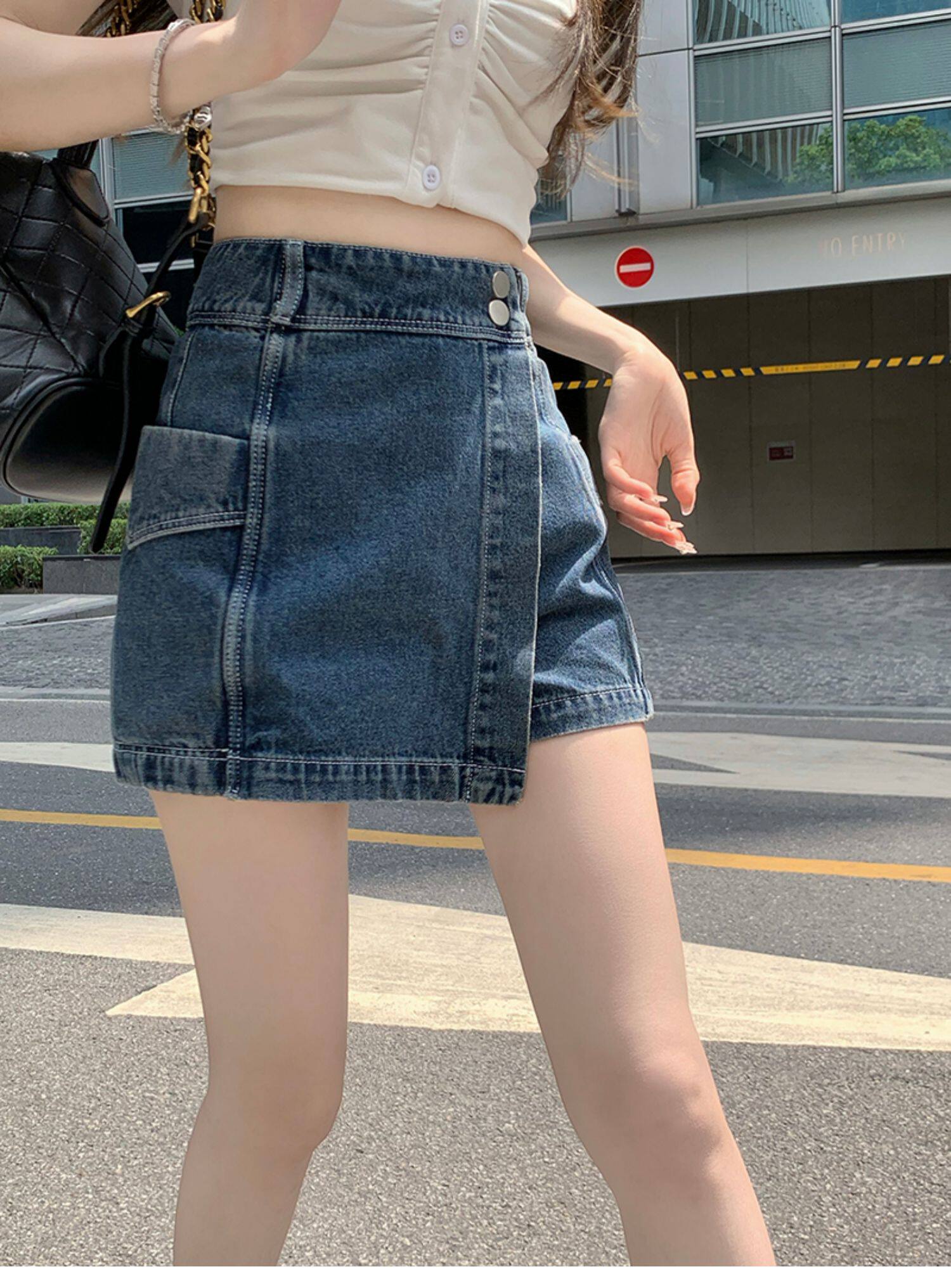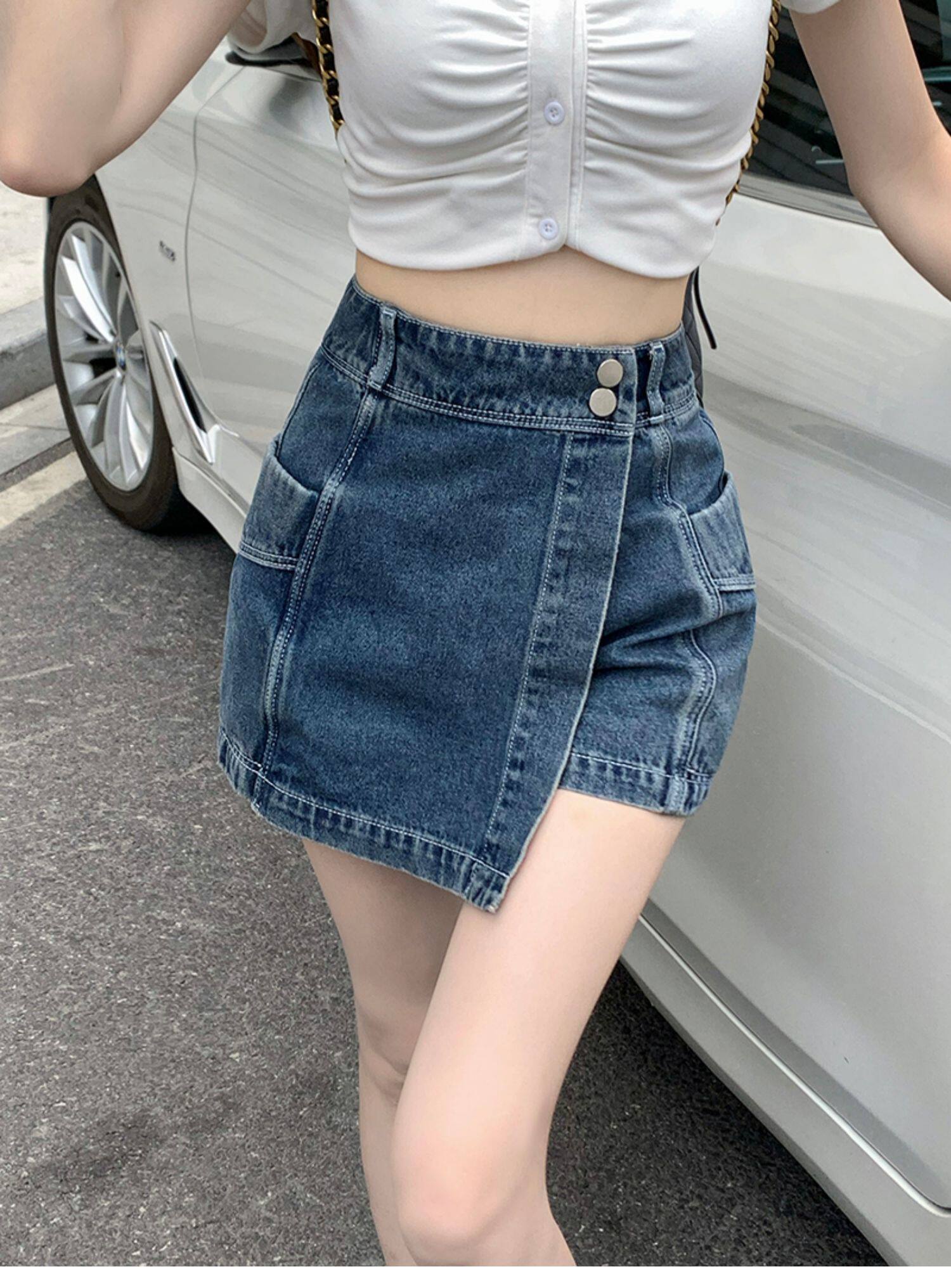 Böyük ölçülü, açıq havaya davamlı, qadınlar üçün yüksək belli denim ətək, yay üçün arıqlama, ombaya yapışan, bədənə uyğun A-xəttli mini ətək.