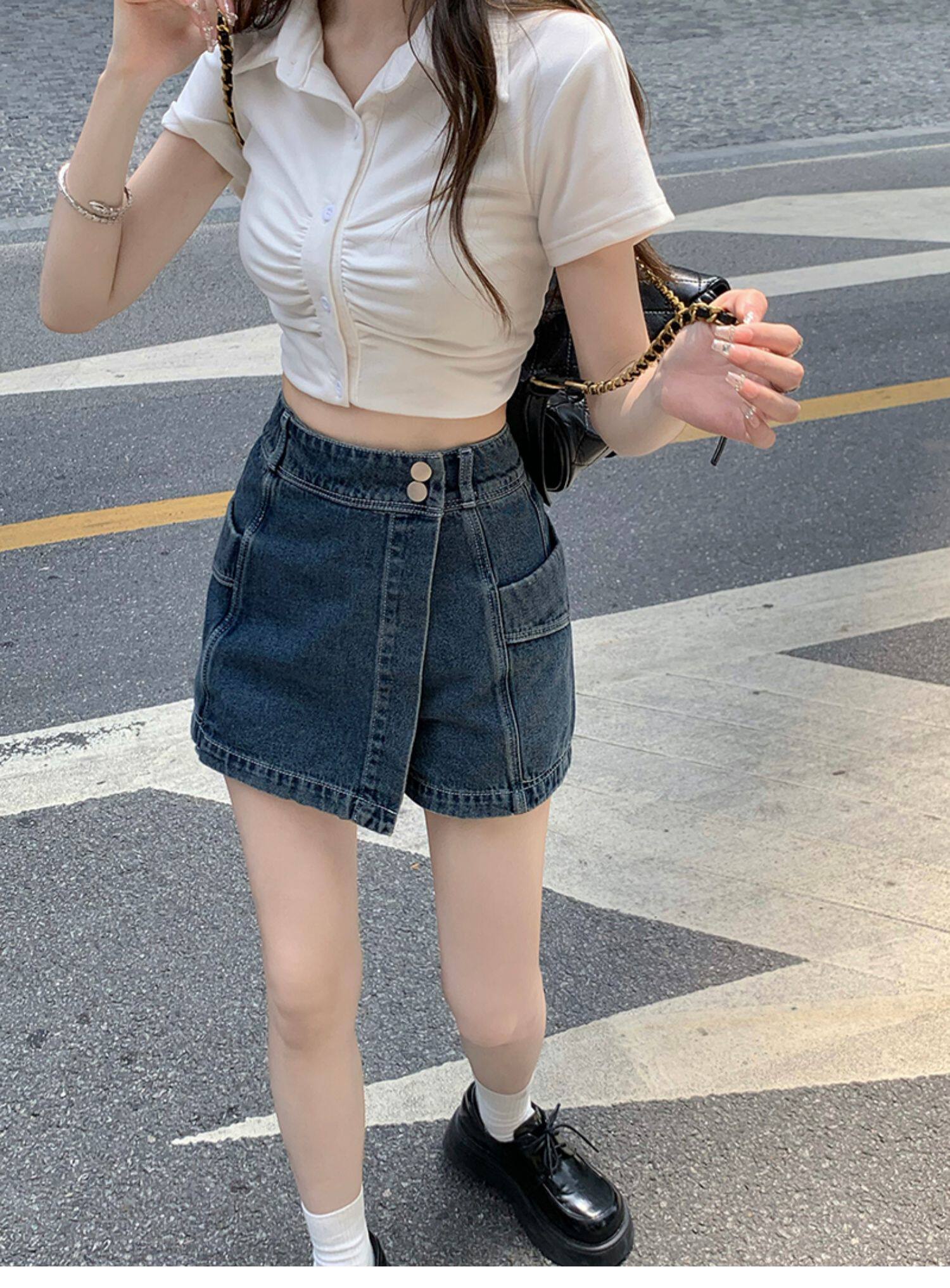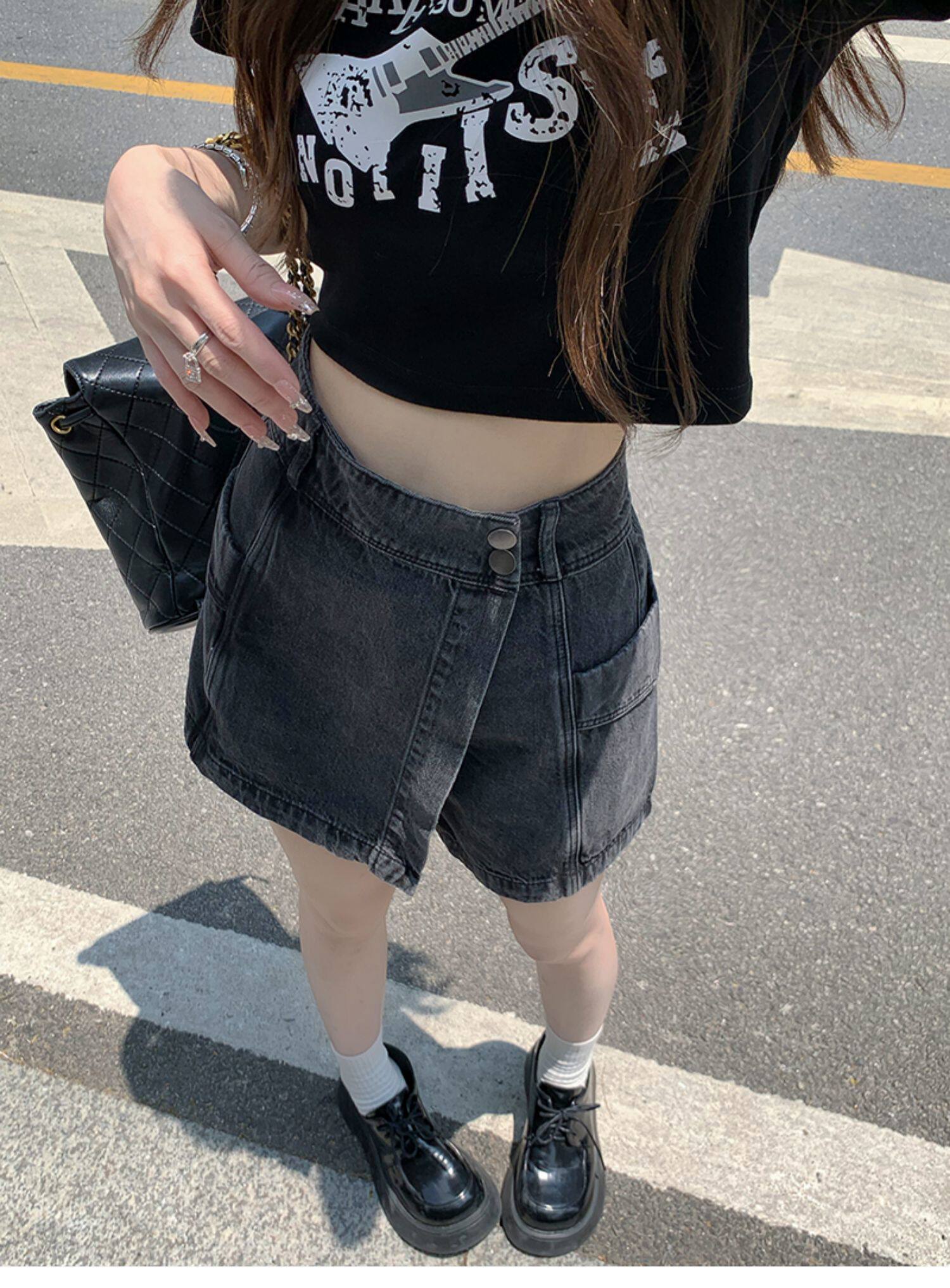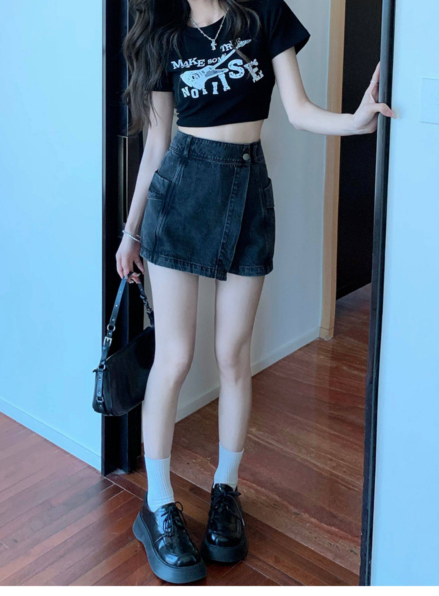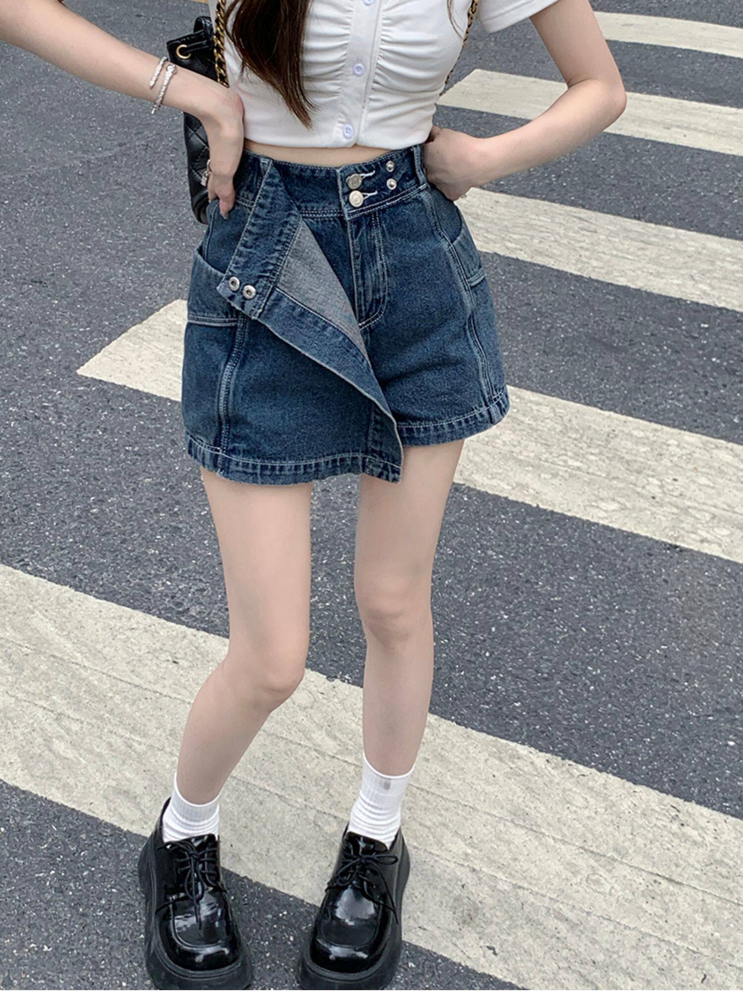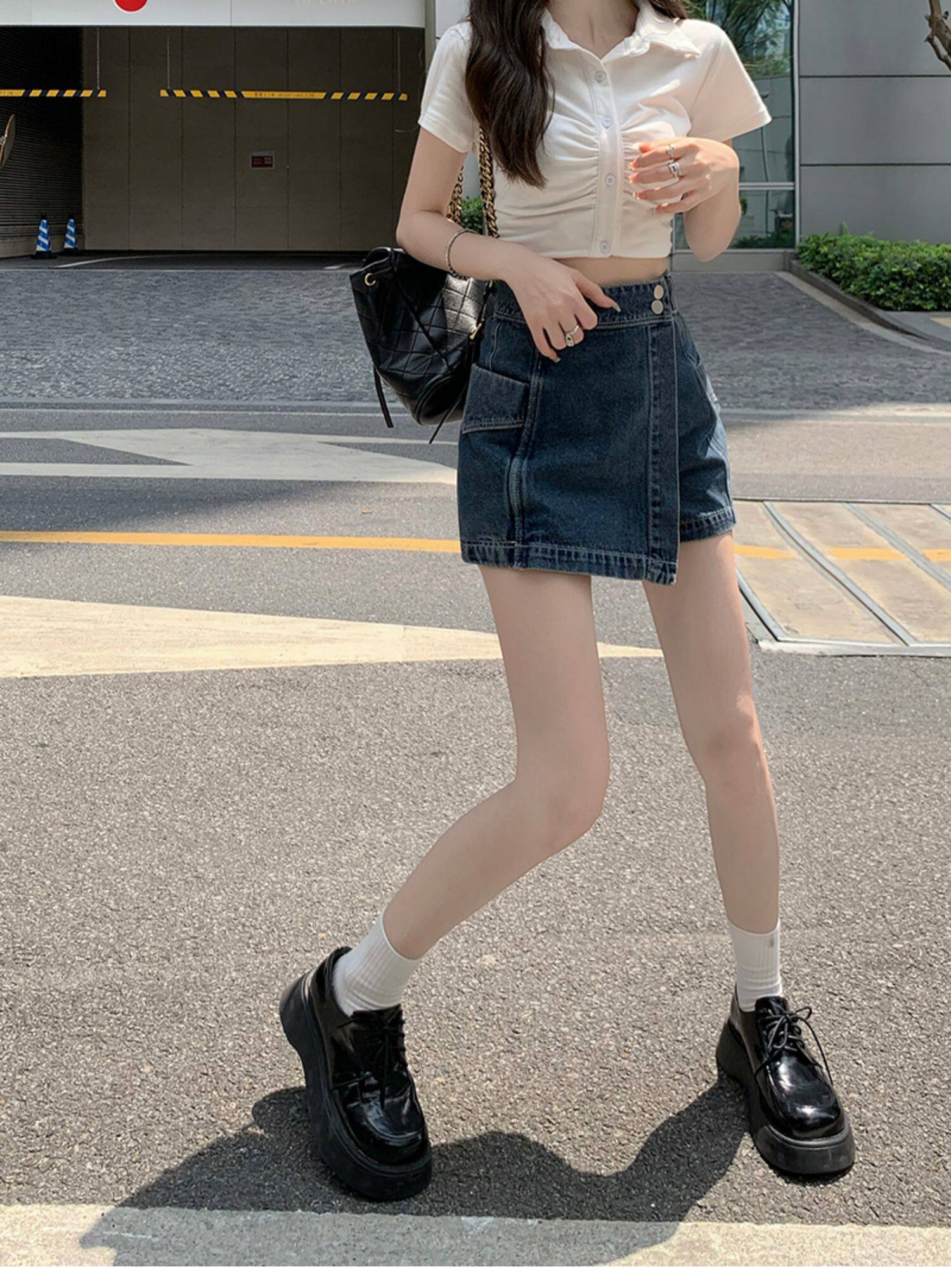 Böyük ölçülü, açıq havaya davamlı, qadınlar üçün yüksək belli denim ətək, yay üçün arıqlama, ombaya yapışan, bədənə uyğun A-xəttli mini ətək.