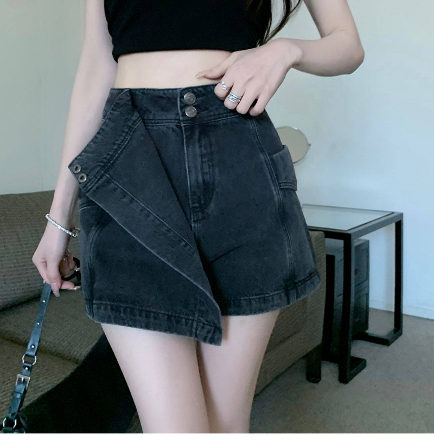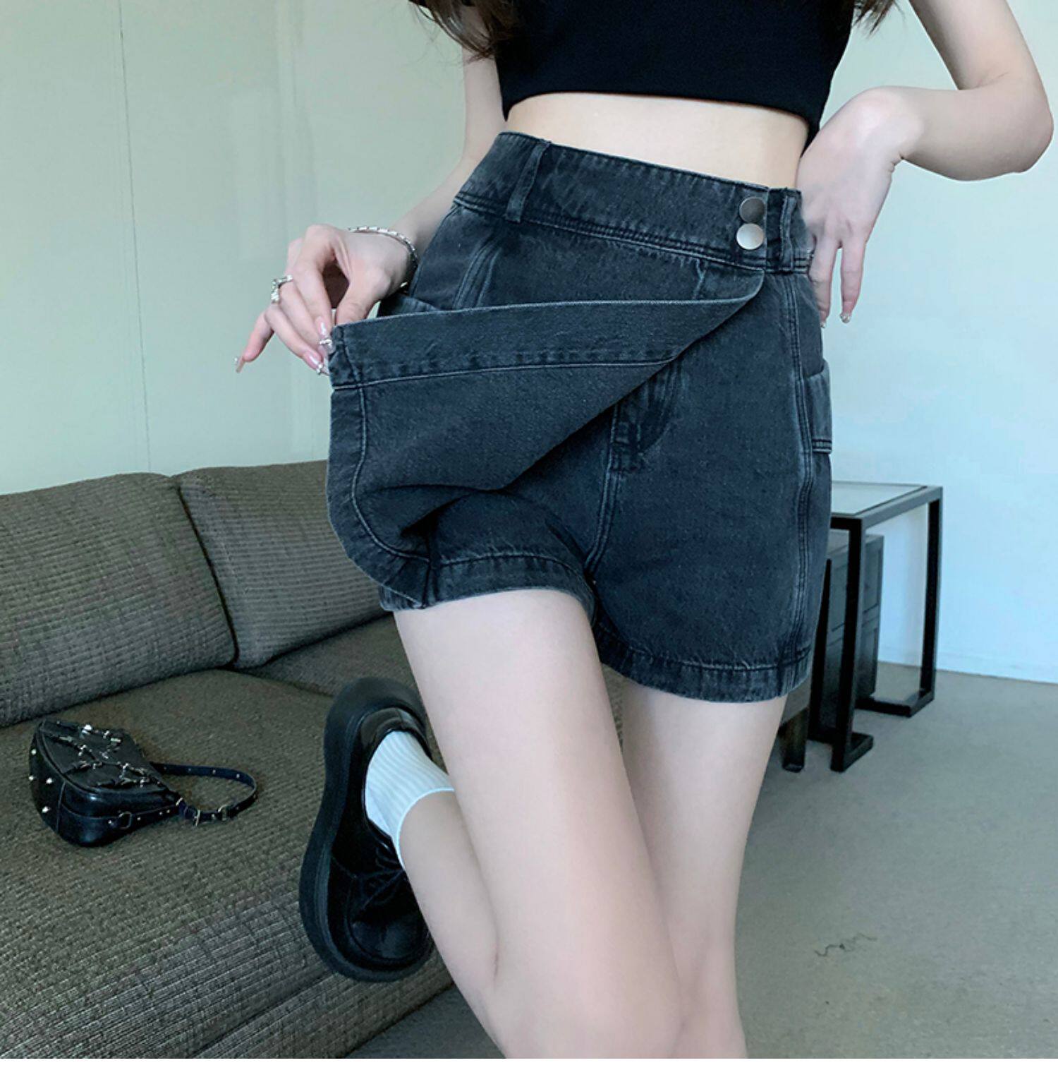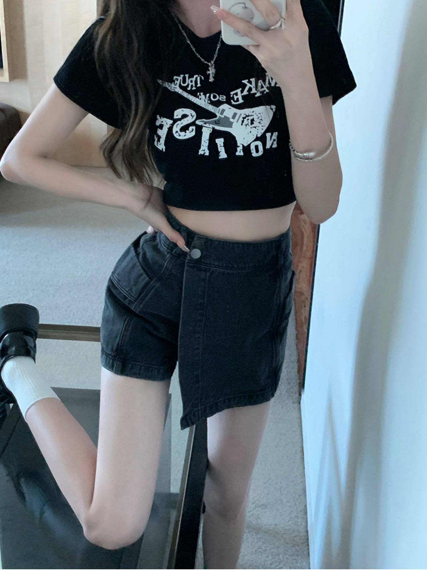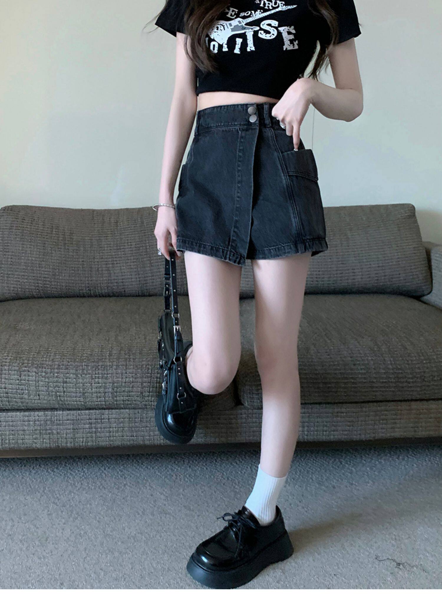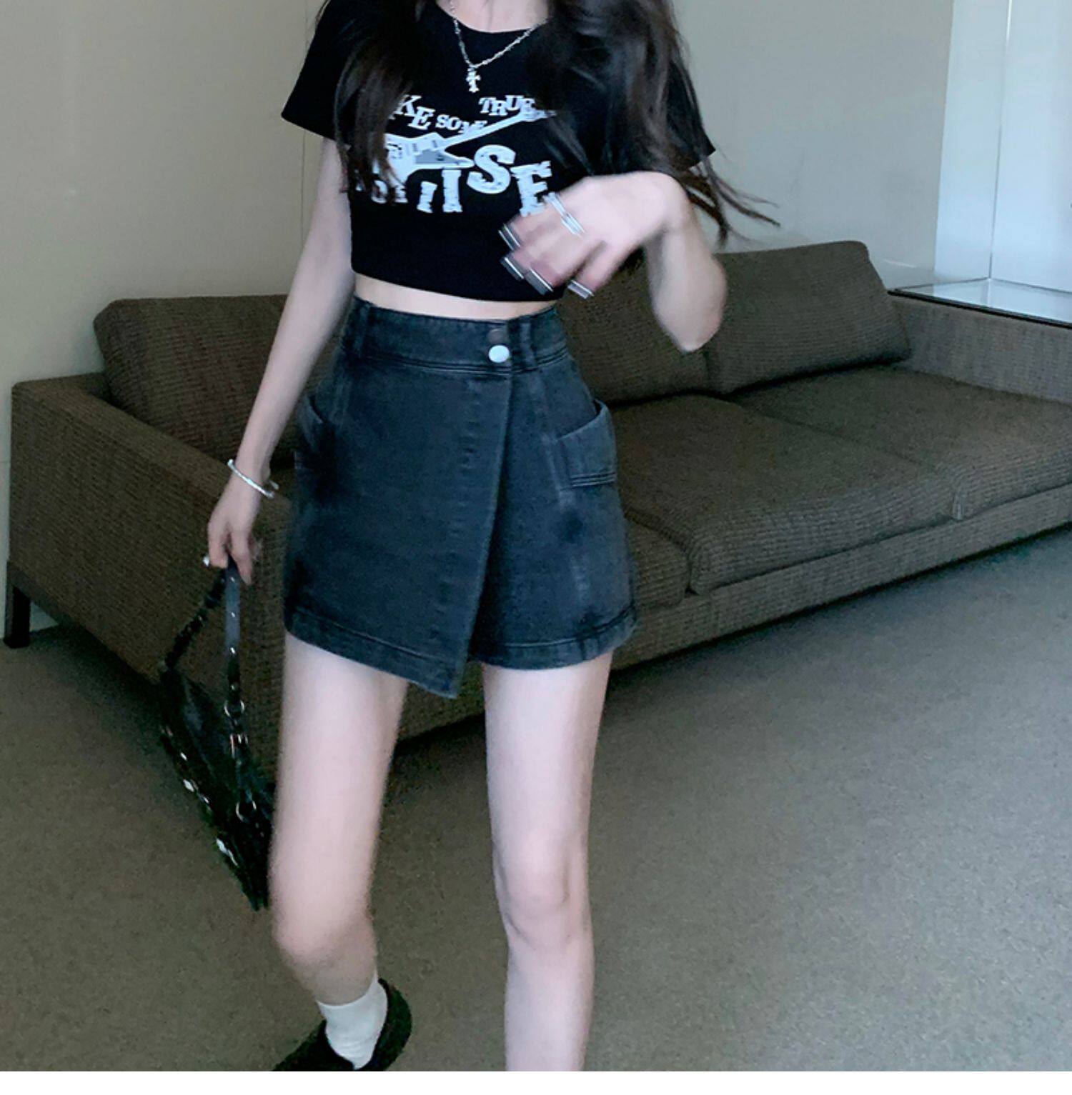 Böyük ölçülü, açıq havaya davamlı, qadınlar üçün yüksək belli denim ətək, yay üçün arıqlama, ombaya yapışan, bədənə uyğun A-xəttli mini ətək.