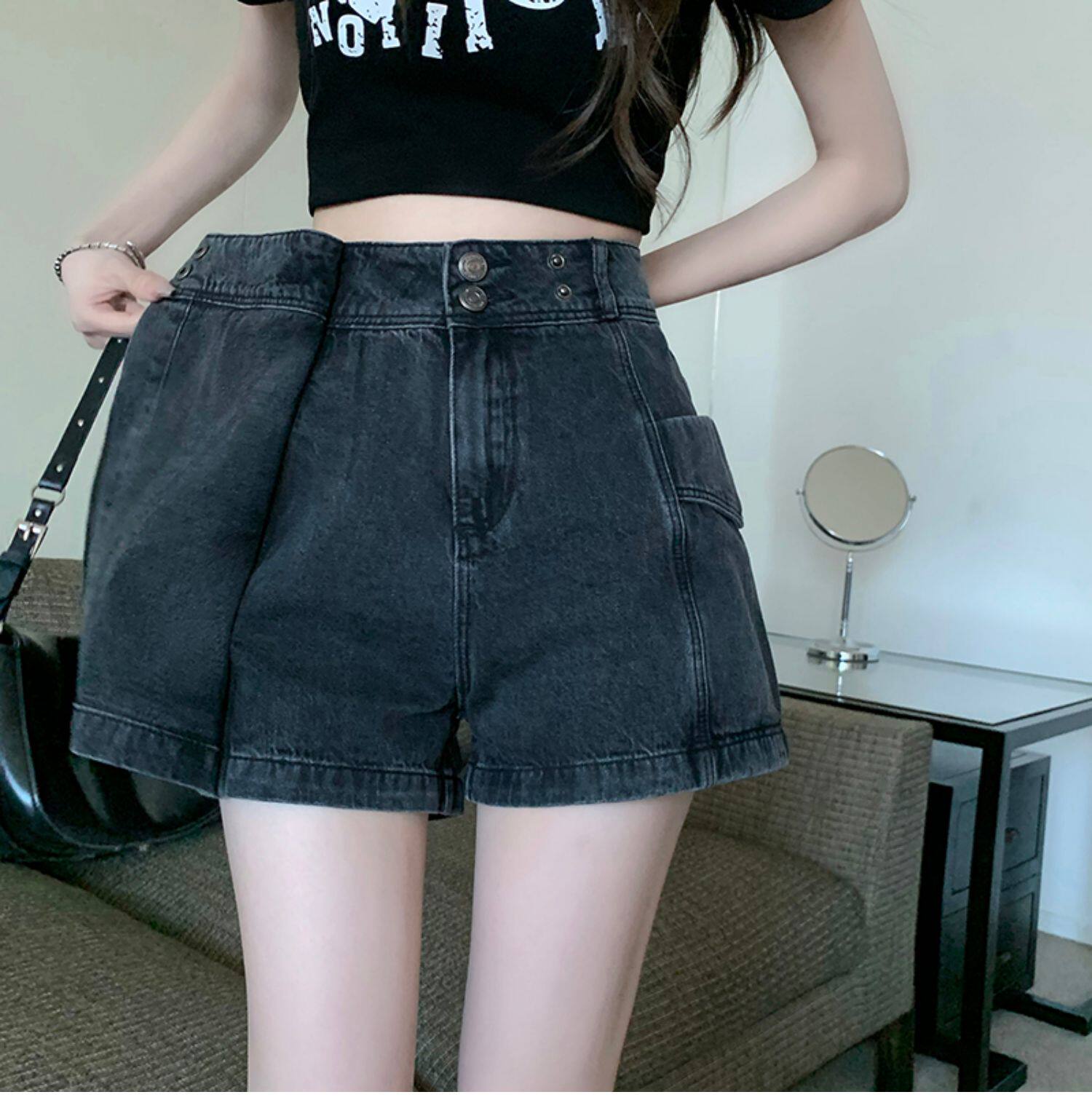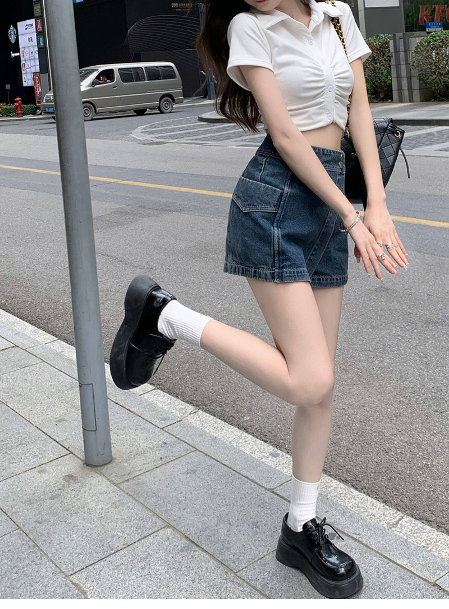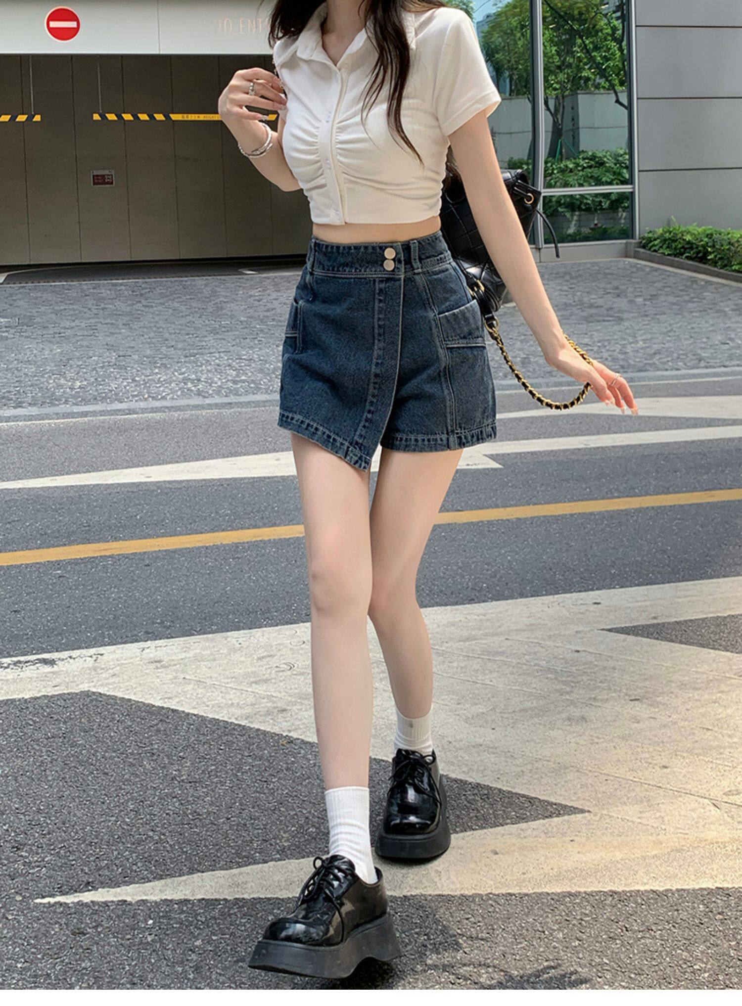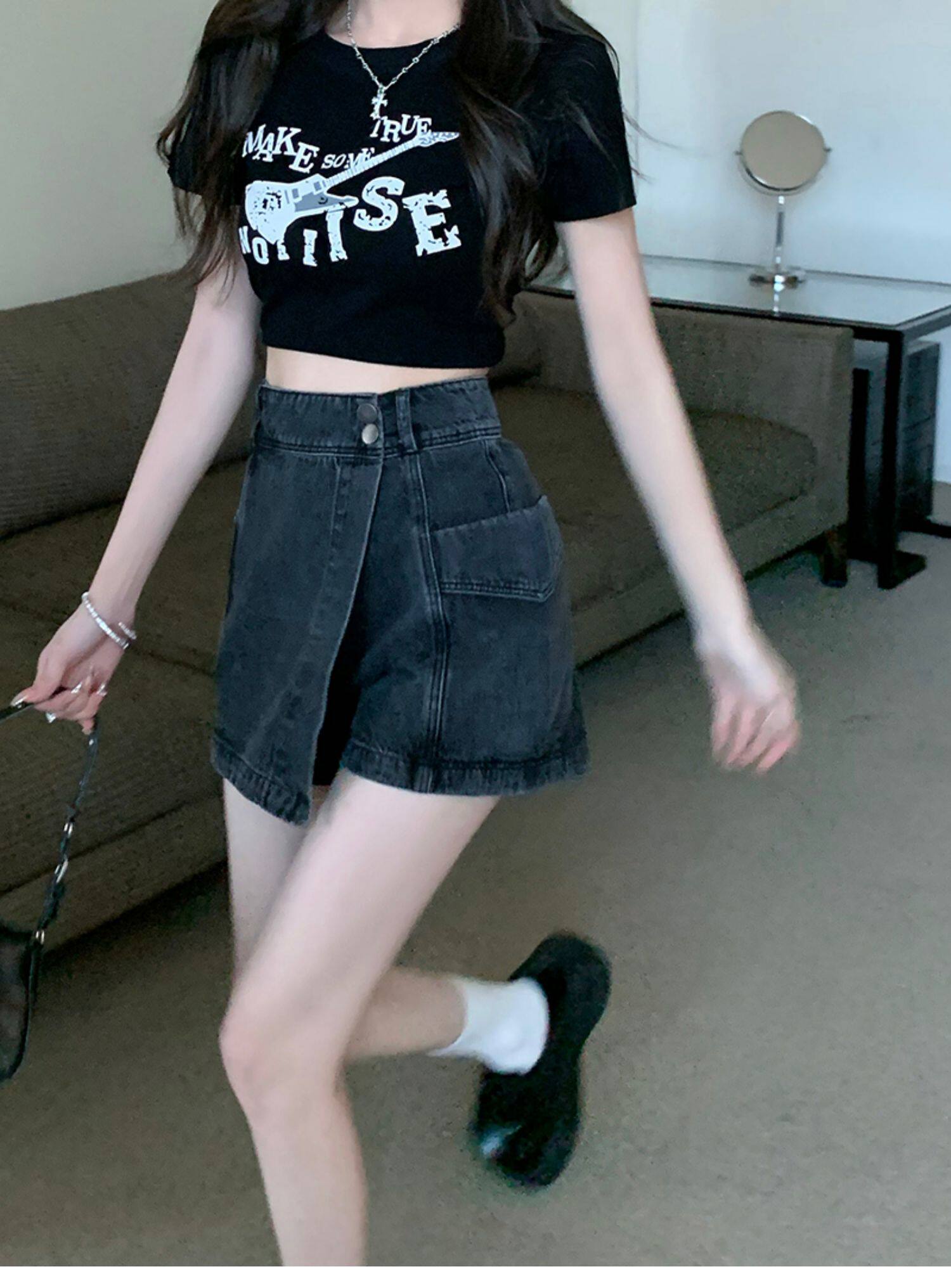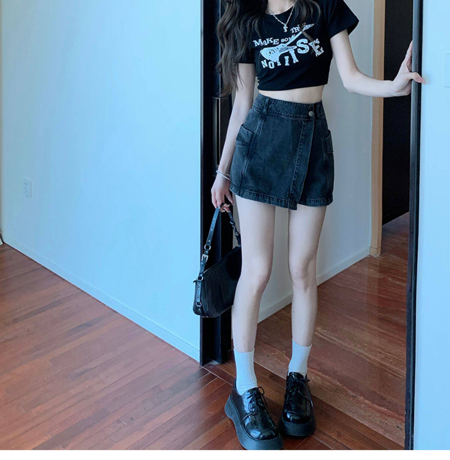 Böyük ölçülü, açıq havaya davamlı, qadınlar üçün yüksək belli denim ətək, yay üçün arıqlama, ombaya yapışan, bədənə uyğun A-xəttli mini ətək.