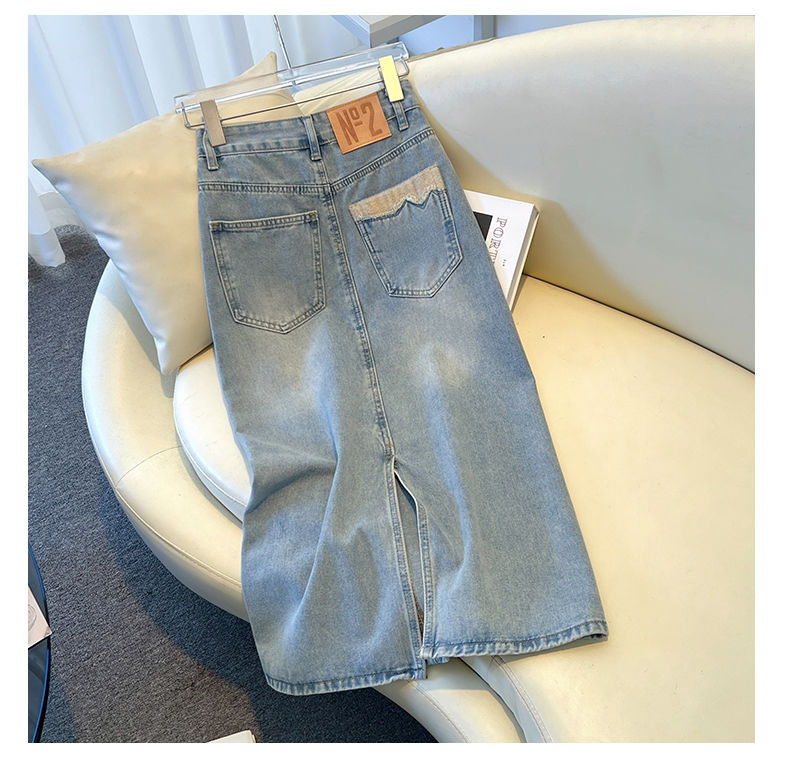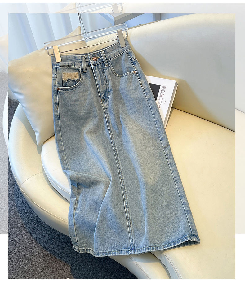 Böyük Ölçülü Açıq Rəngli Denim Midi Ətək Qadınlar üçün 2026-cı il Yayı Yeni Stil Orta Uzunluqlu Yüksək Belli Kəsik A-xəttli Bodycon Ətək