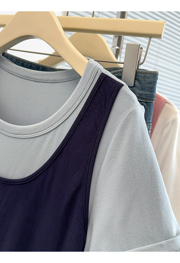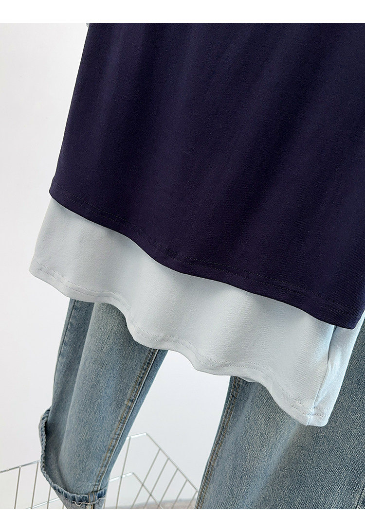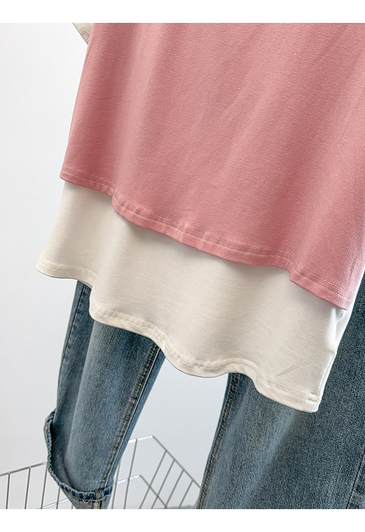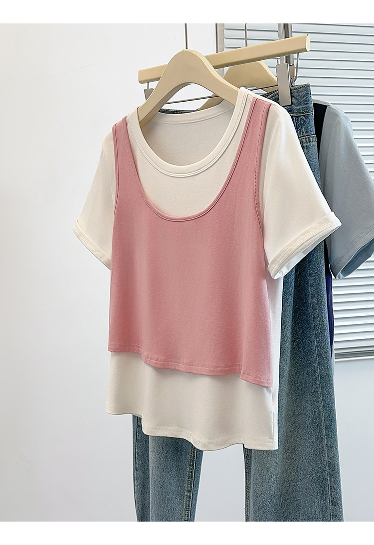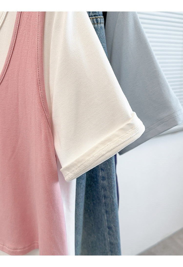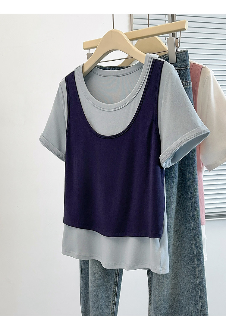 Böyük Ölçülü Koreya Üslublu Rəngli Bloklu Süni İki Parçalı Qısa Qollu Qadın Futbolkası, Yeni Yay Modeli, Boş Formalı, Arıqladıcı və Qarın Gizlədən Top