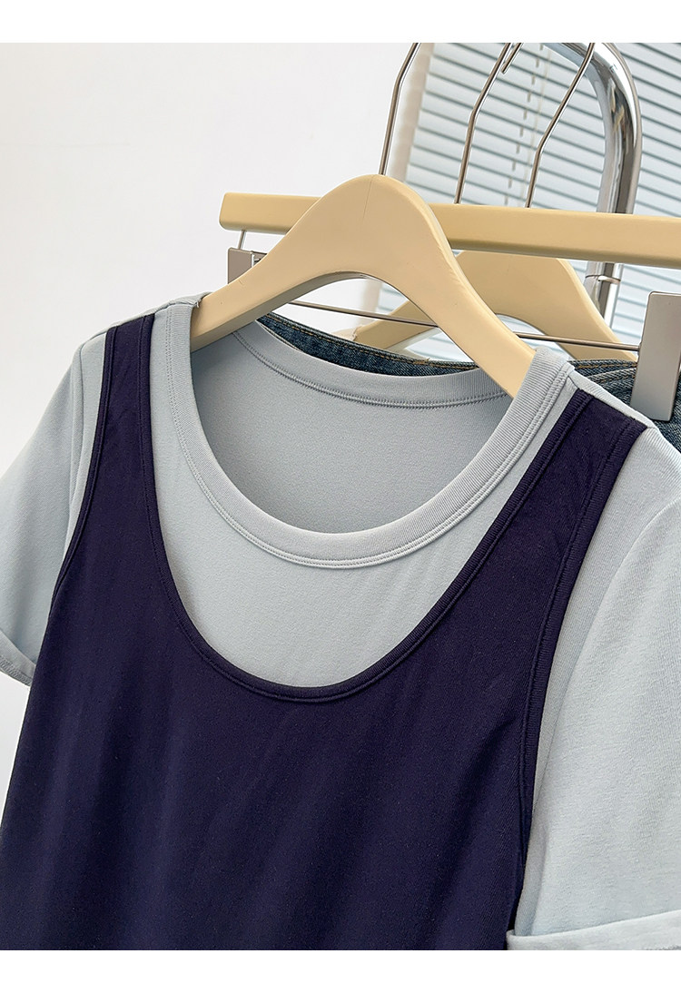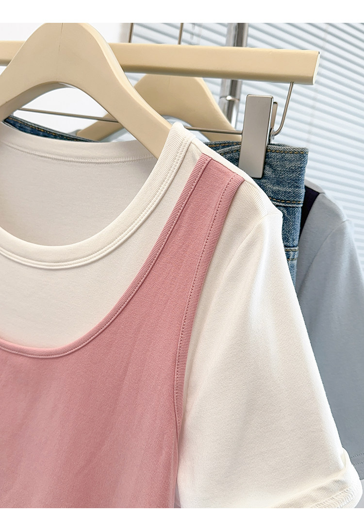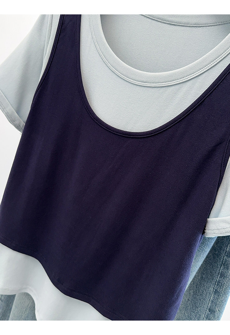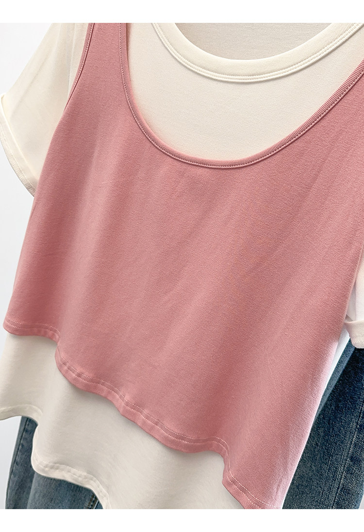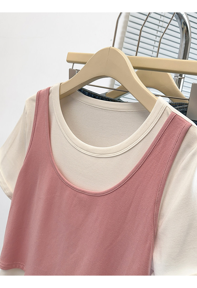 Böyük Ölçülü Koreya Üslublu Rəngli Bloklu Süni İki Parçalı Qısa Qollu Qadın Futbolkası, Yeni Yay Modeli, Boş Formalı, Arıqladıcı və Qarın Gizlədən Top