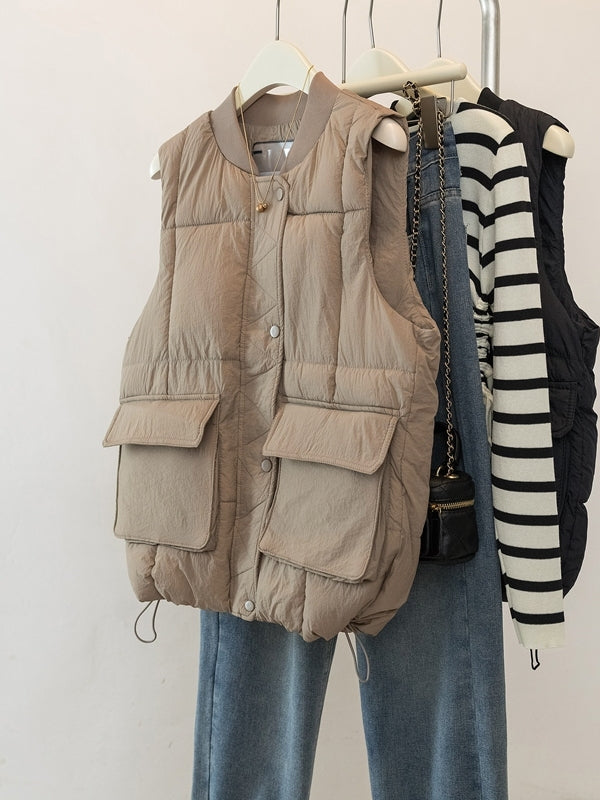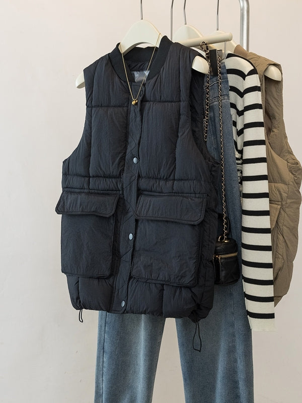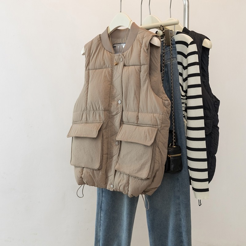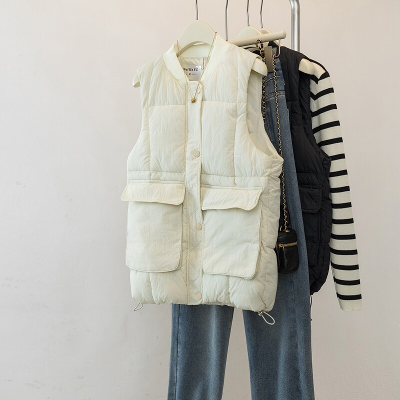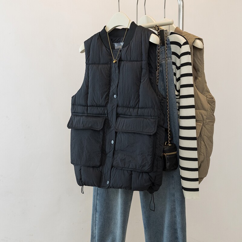 Böyük Ölçülü Koreya Üslubunda Qadınlar üçün Gündəlik Pambıq Jilet, 2026 Payız/Qış Yeni Gəlişi, Böyük Ölçülü Qadınlar üçün Populyar Boş Qolsuz Jilet