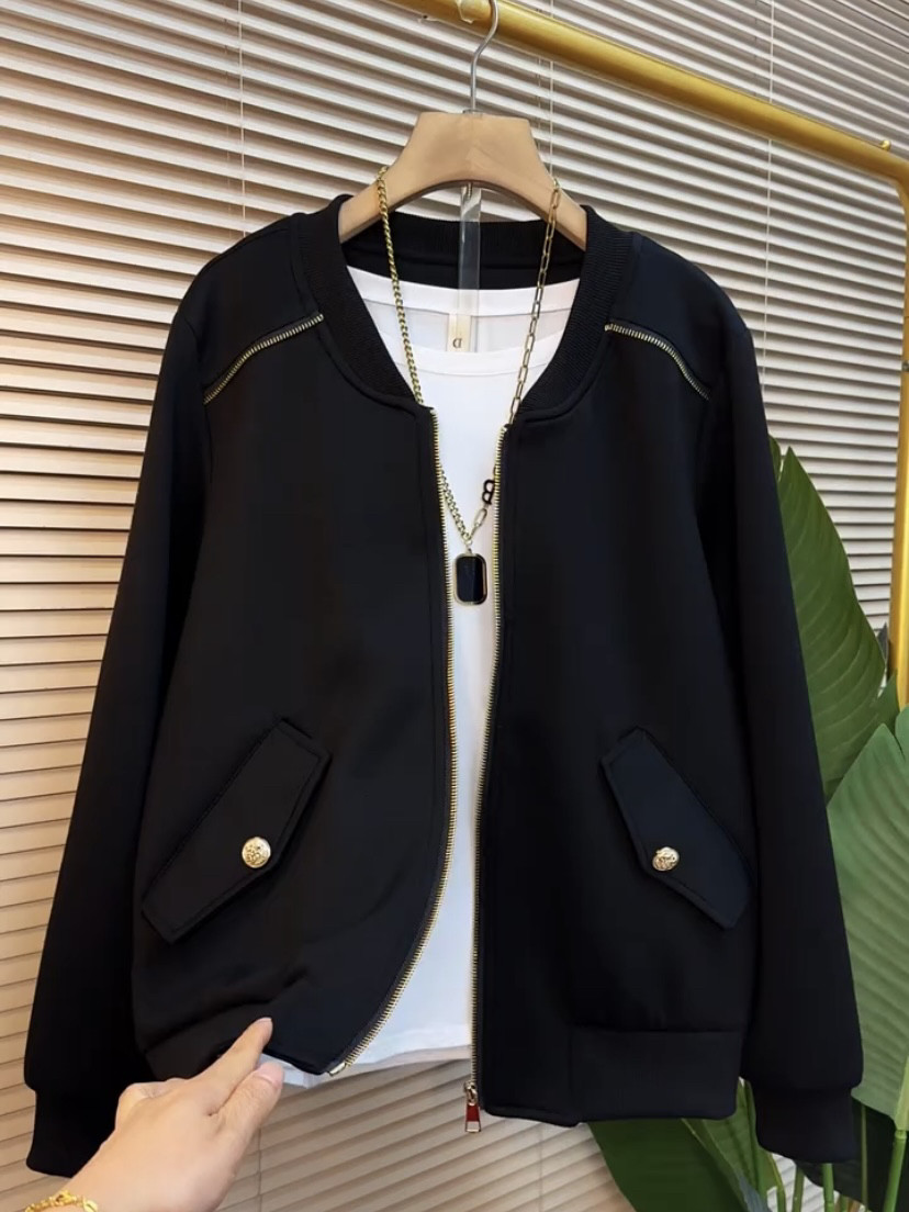 Plus Size Women's Clothing 2025 Autumn New Style Women's Jacket, Slimming for Curvy Girls and Plus Size Women, Black Daily Multifunctional Clothing