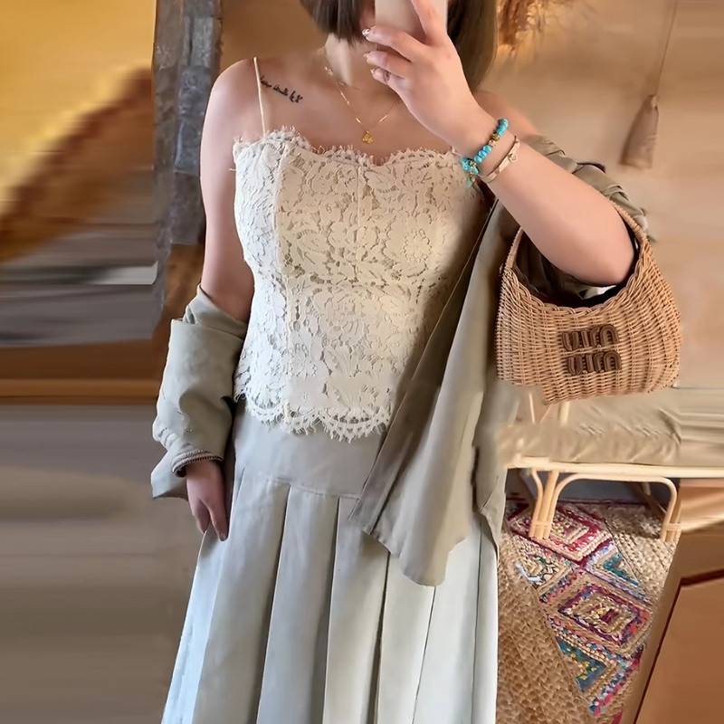 Böyük ölçülü qadın geyimləri, şık ağ krujeva kamzol, yeni yay modası, böyük ölçülü qadınlar üçün gözəl və arıqladıcı, qoltuqaltı piyləri gizlədir.