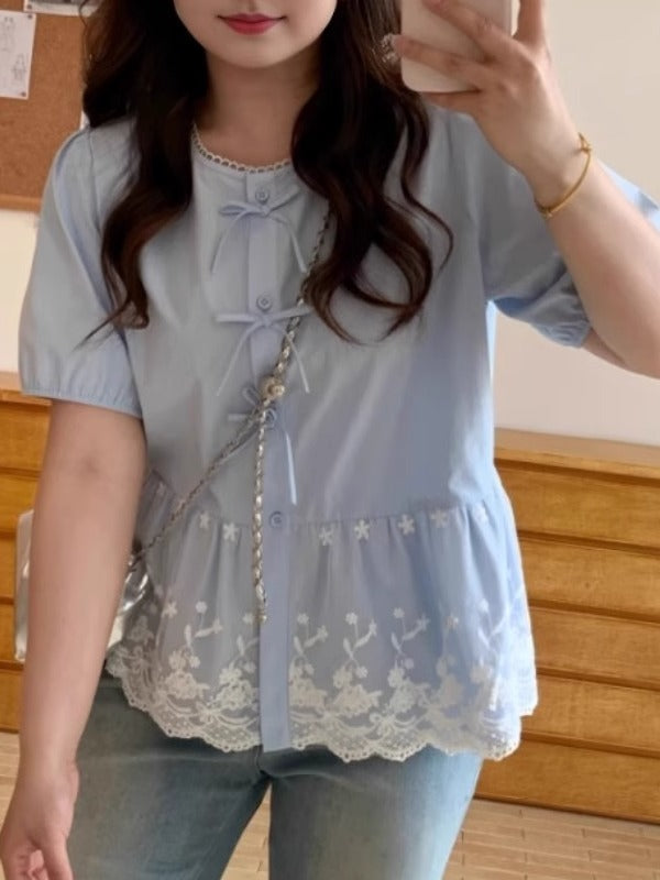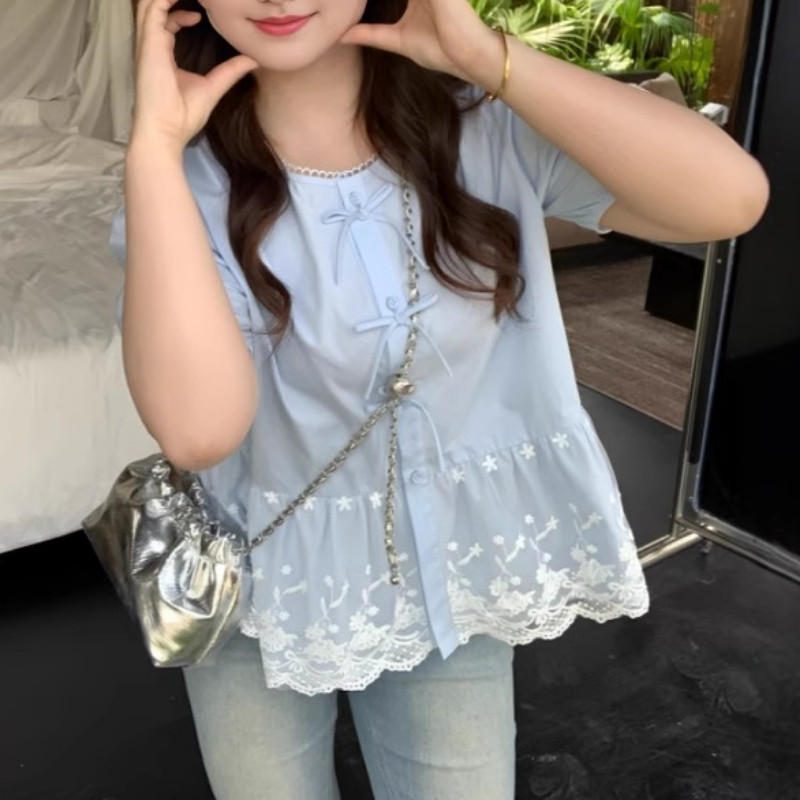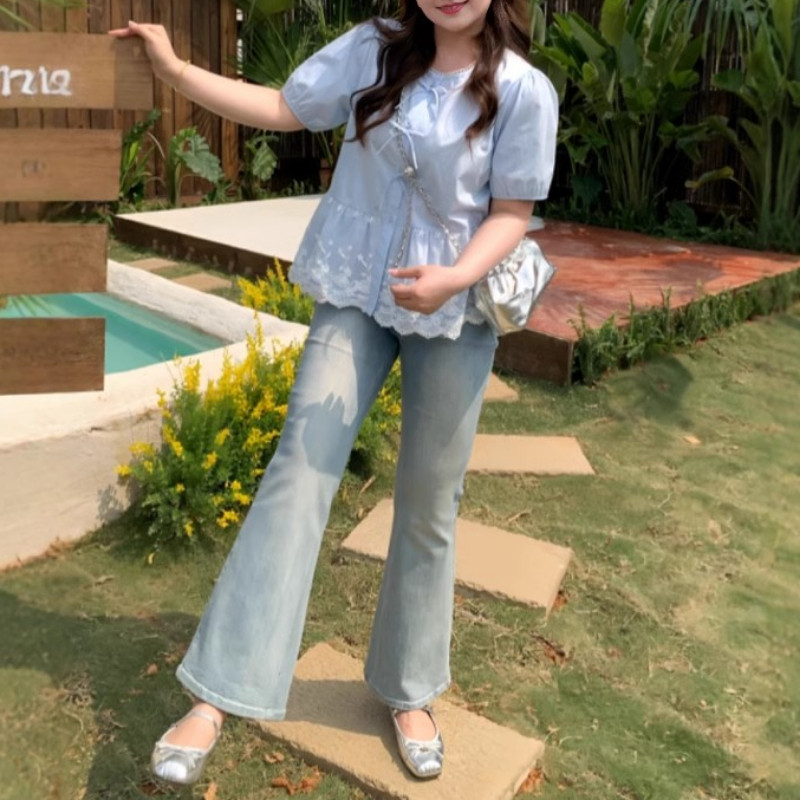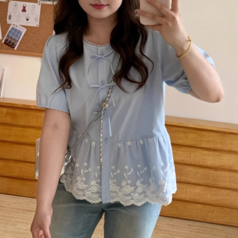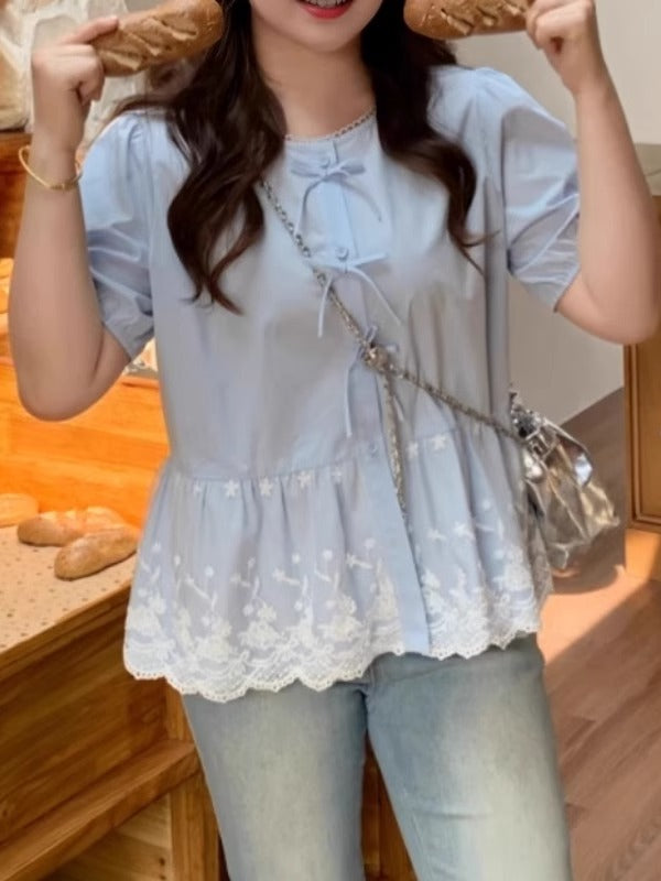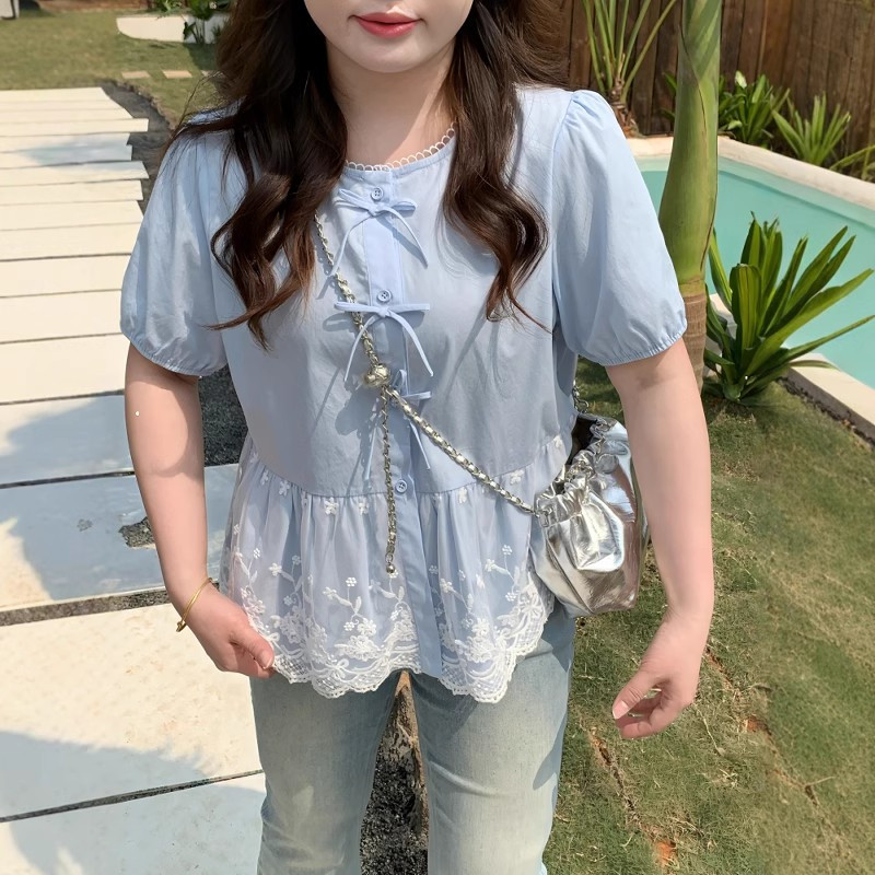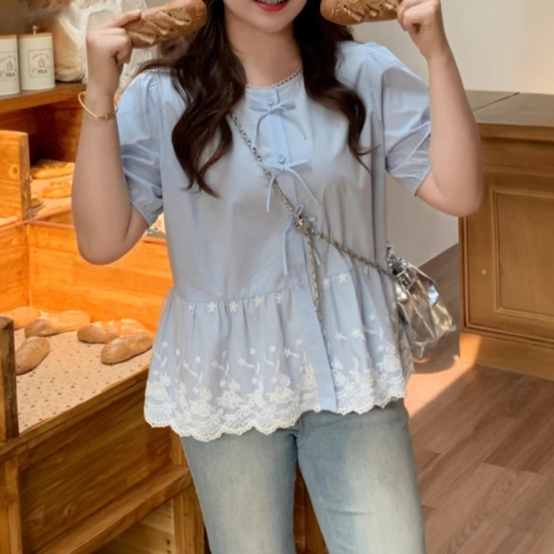 Böyük ölçülü qadın qısaqollu, bantlı və krujeva ətəkli köynək, yay üçün idealdır, əyri bədən quruluşlu qadınlar üçün isə arıqladan və belini sıxan.