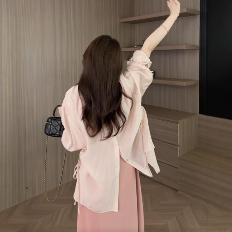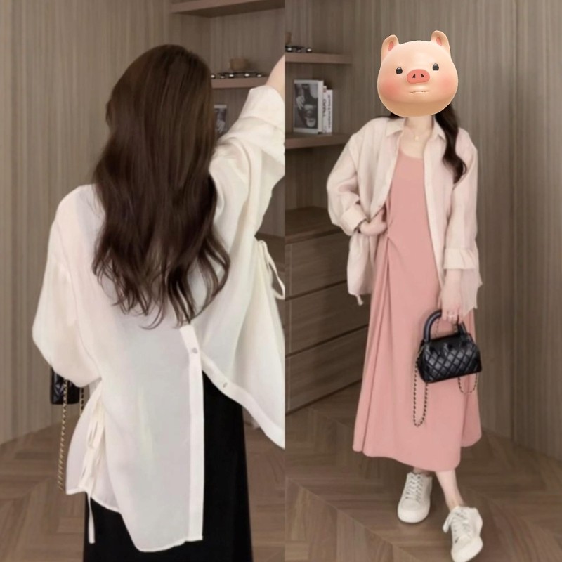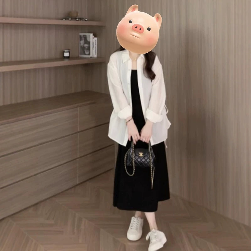 Böyük ölçülü qadınlar üçün gündəlik, ətəkləri bölünmüş nazik günəşdən qoruyucu köynək, uzunqol, yeni yay üslubunda, geniş formalı, böyük ölçülü qadınlar üçün arıqladıcı gödəkçə/top.