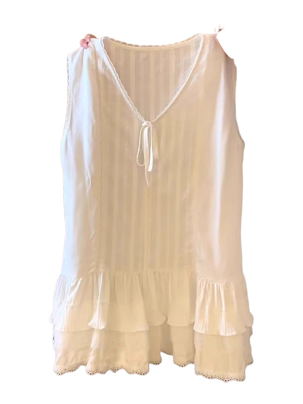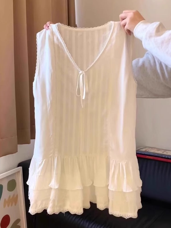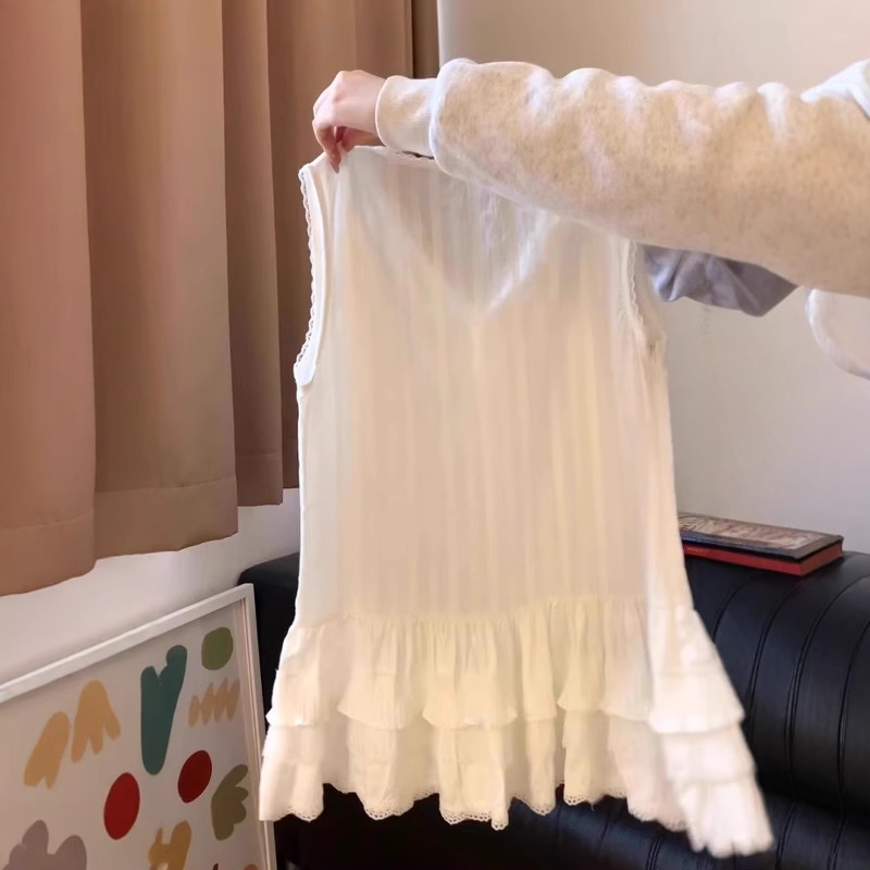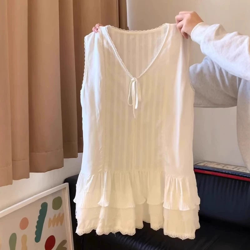 Böyük ölçülü qadınlar üçün krujeva ilə işlənmiş tort ətəyi, geniş formalı, çoxfunksiyalı qat-qat geyimli, yay üçün qolsuz köynək.