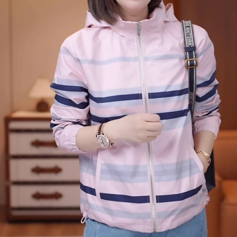 Böyük Ölçülü Qadınlar üçün Yaz Rəngli Bloklu Moda Küləkdən Qoruyucu Gödəkçə 2026 Yeni Stil, Arıqladıcı və Boş Uyğunluqlu, Yüksək Səviyyəli Top